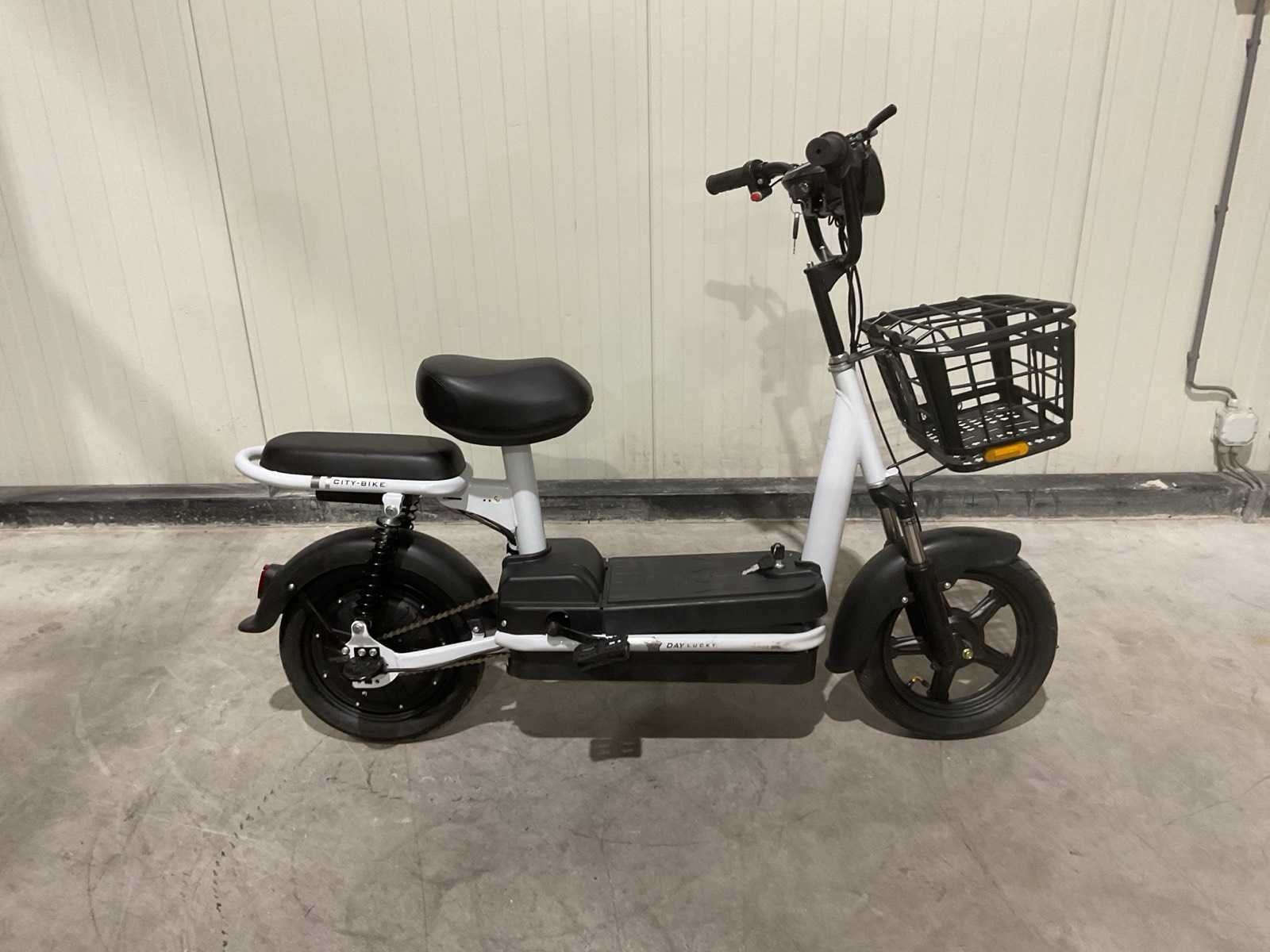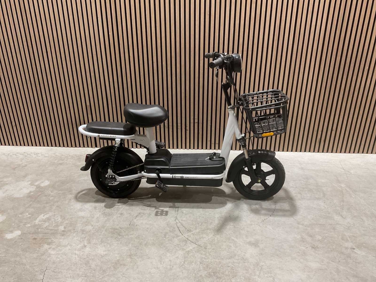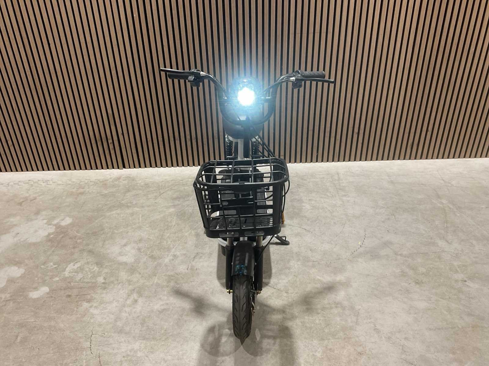 Voorzien van 48V e-bike; Borstelloze achternaafmotor; 14" wielen met 14×2.5 band; Rear hub motor; 350W; Spanning: 48V; Accu: 48V 12Ah; Actieradius: 60 km; Max. snelheid: ±35 km/h; Remsysteem: voor schijf + achter trommel; Max. belasting: 150 kg; Gewicht: ca. 36 kg; Laadtijd: 8–10 uur; Ongebruikt Merk: SKLP Model: City-bike Product type: Happy