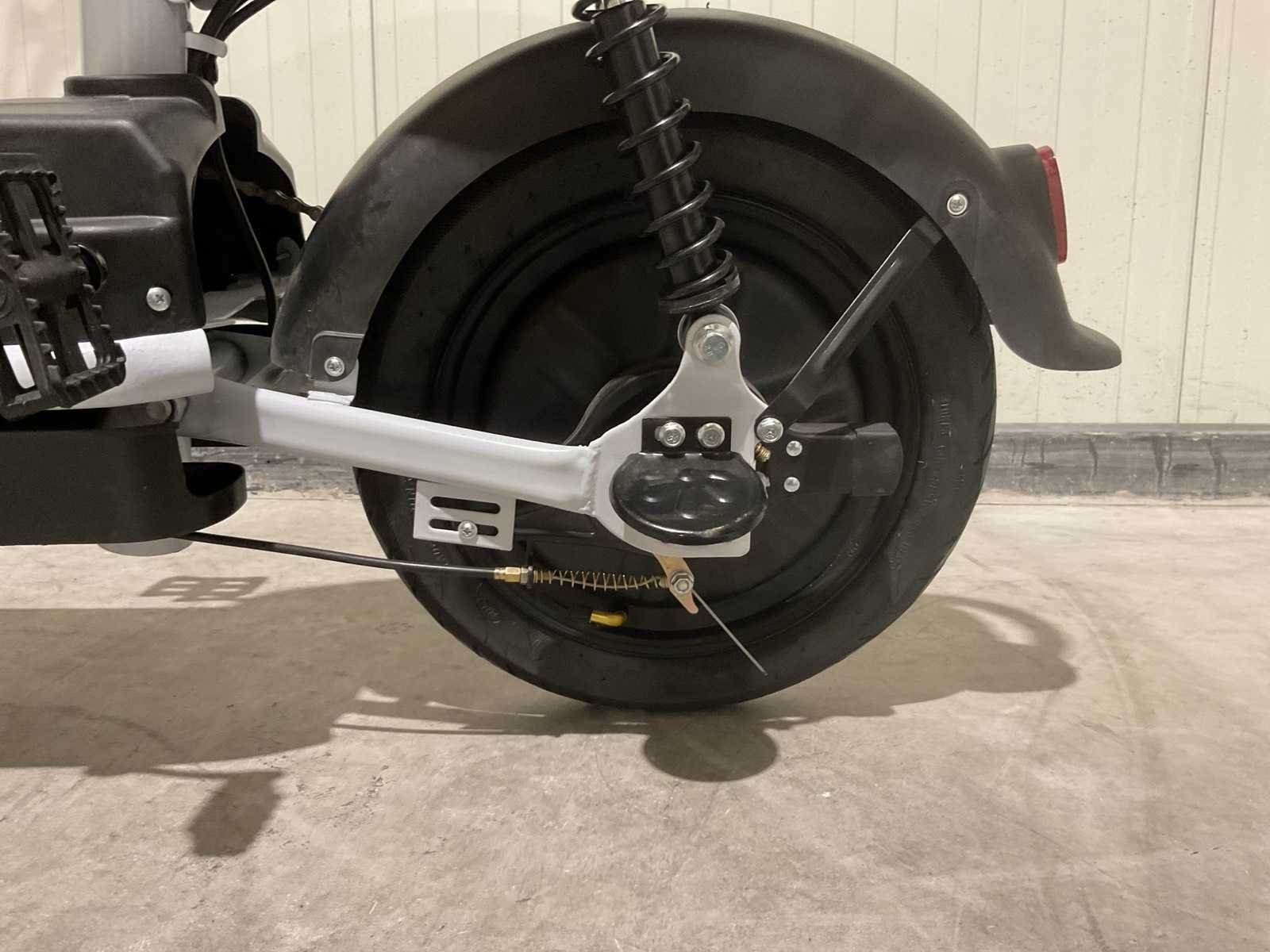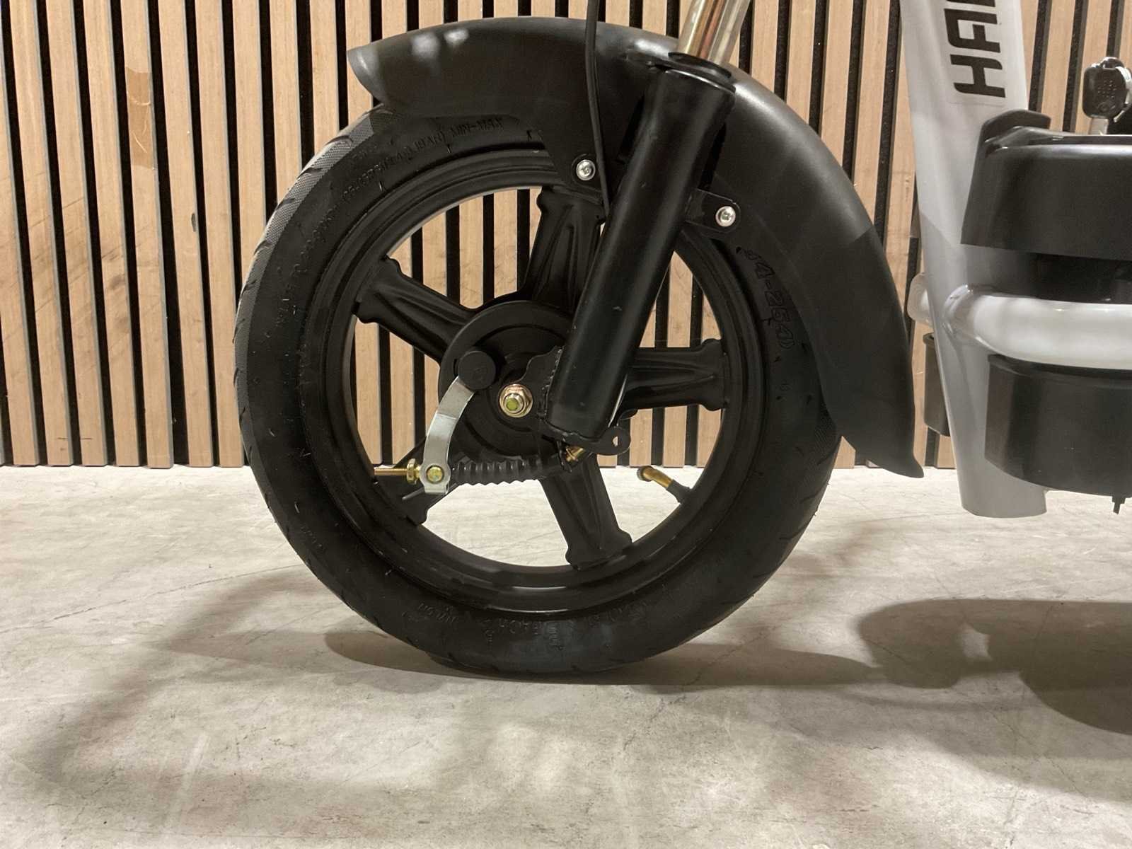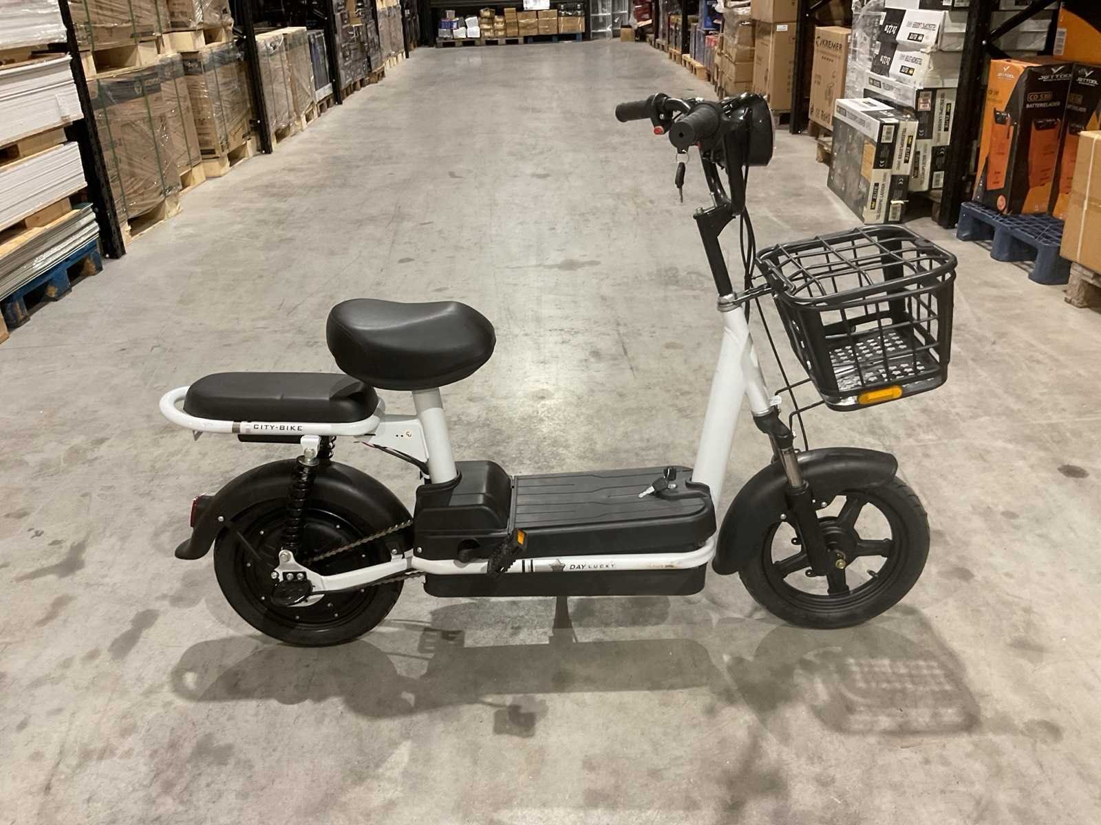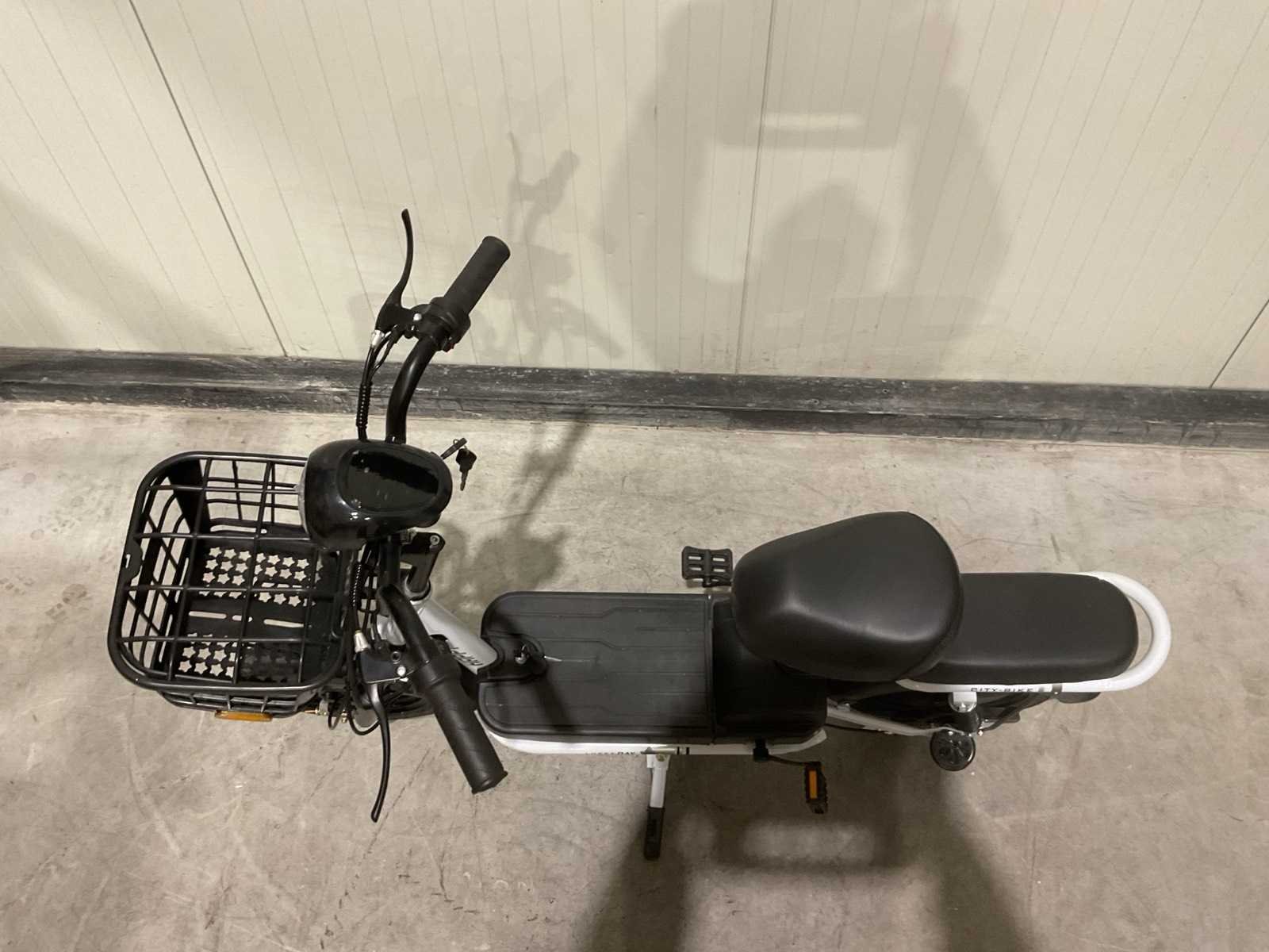 Voorzien van 48V e-bike; Borstelloze achternaafmotor; 14" wielen met 14×2.5 band; Rear hub motor; 350W; Spanning: 48V; Accu: 48V 12Ah; Actieradius: 60 km; Max. snelheid: ±35 km/h; Remsysteem: voor schijf + achter trommel; Max. belasting: 150 kg; Gewicht: ca. 36 kg; Laadtijd: 8–10 uur; Ongebruikt Merk: SKLP Model: City-bike Product type: Happy