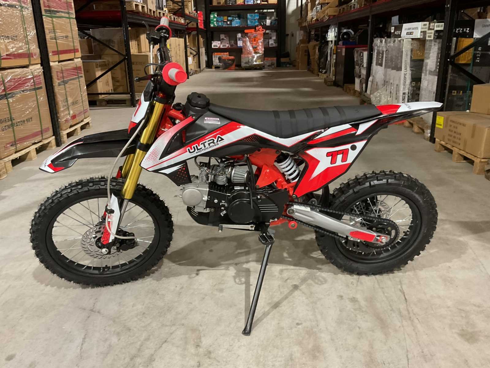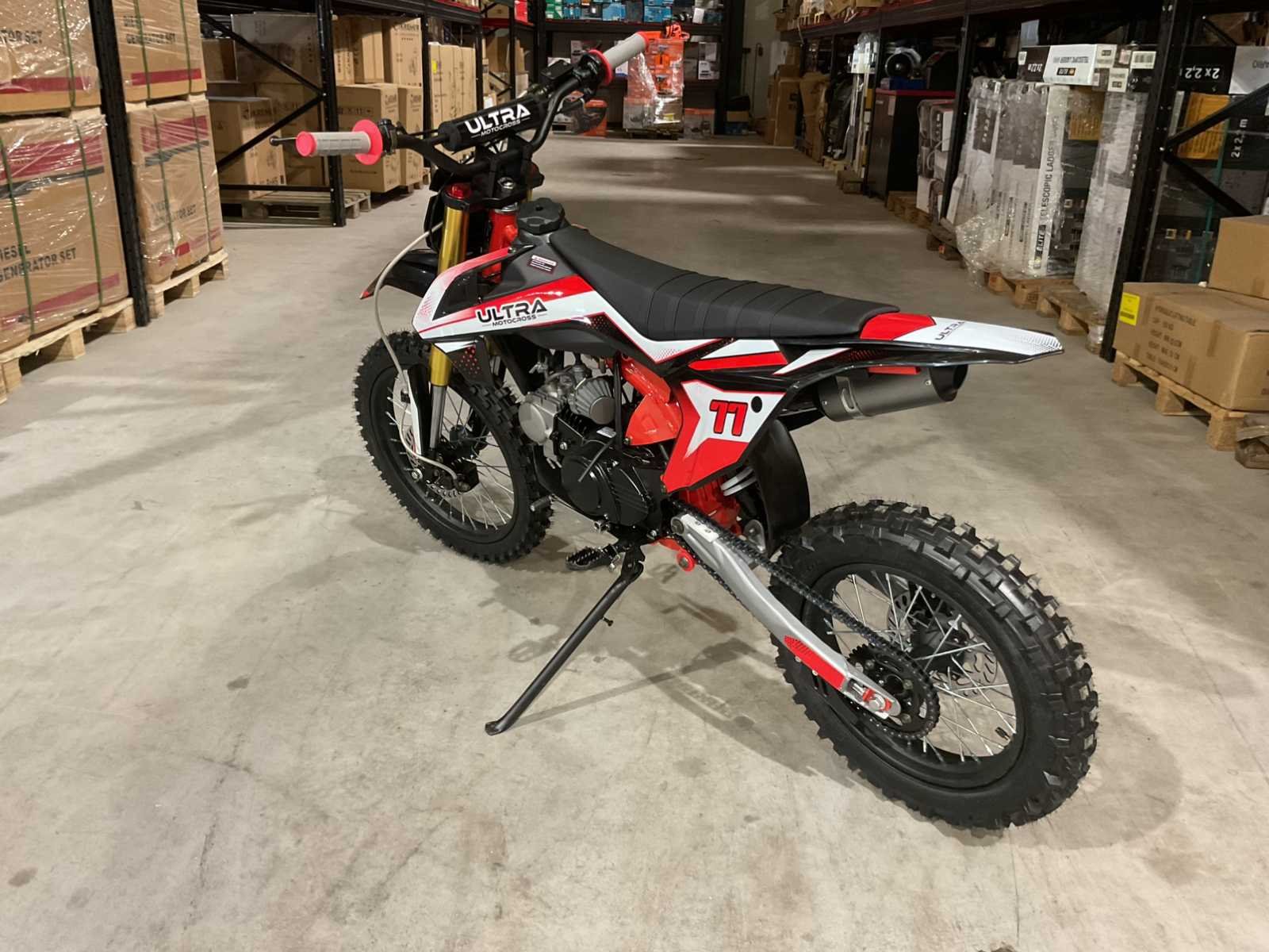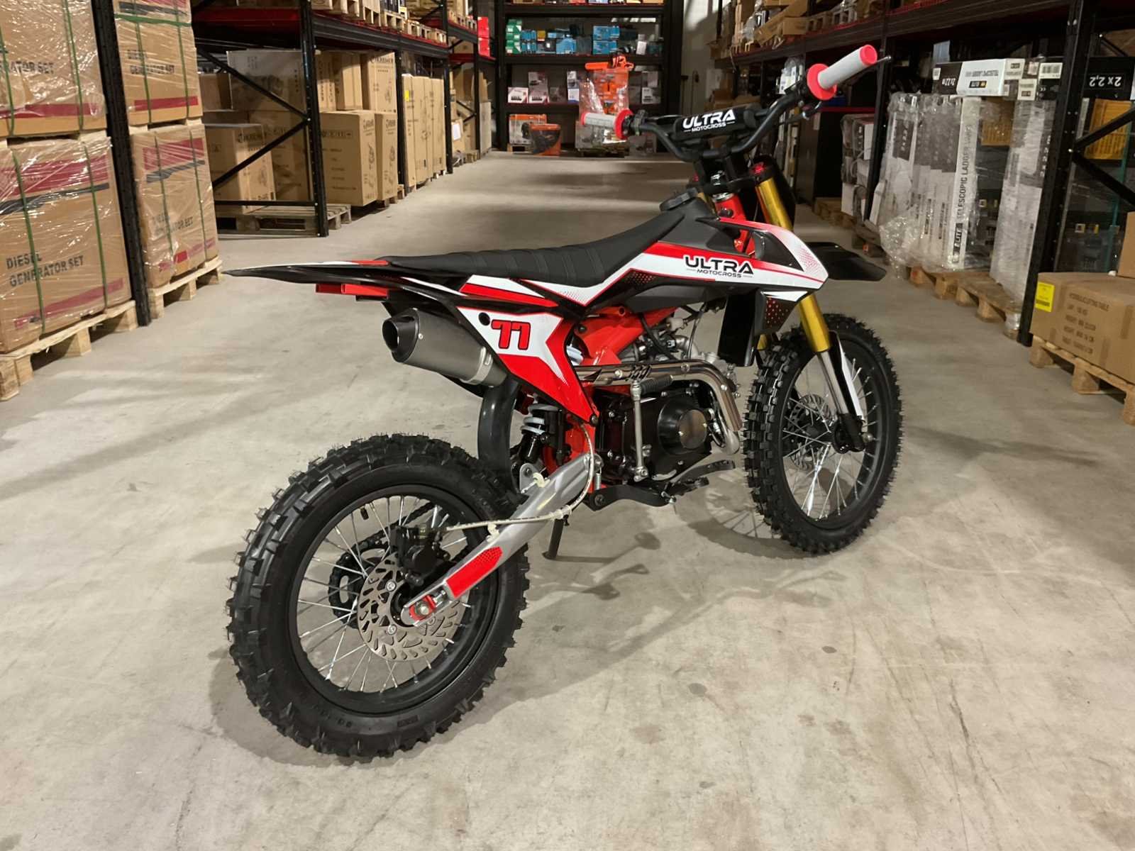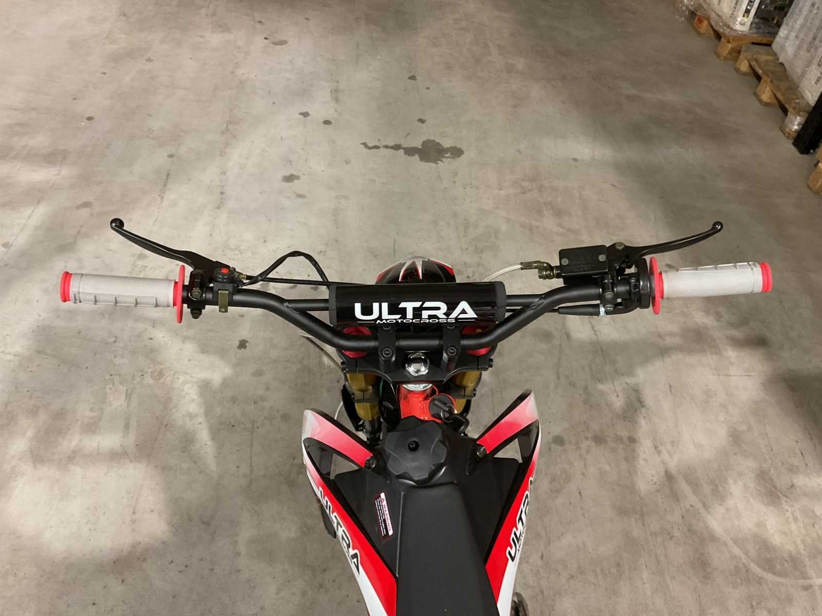 Voorzien van 125cc motor; 4 takt; 11 HP; hydraulische schijfremmen; bandenmaat voor 17” inch achter 14” inch; ongebruikt in doos (transport afmetingen 135x45x65 cm Gewicht 78kg) Merk: Ultra Motocross Model: DB003 Type: ILX 125cc RD Cilinderinhoud: 125cc Gewicht: 71kg Kleur: Rood Transmissie: Schakel Aantal sleutels: 2 Bouwjaar: 2025