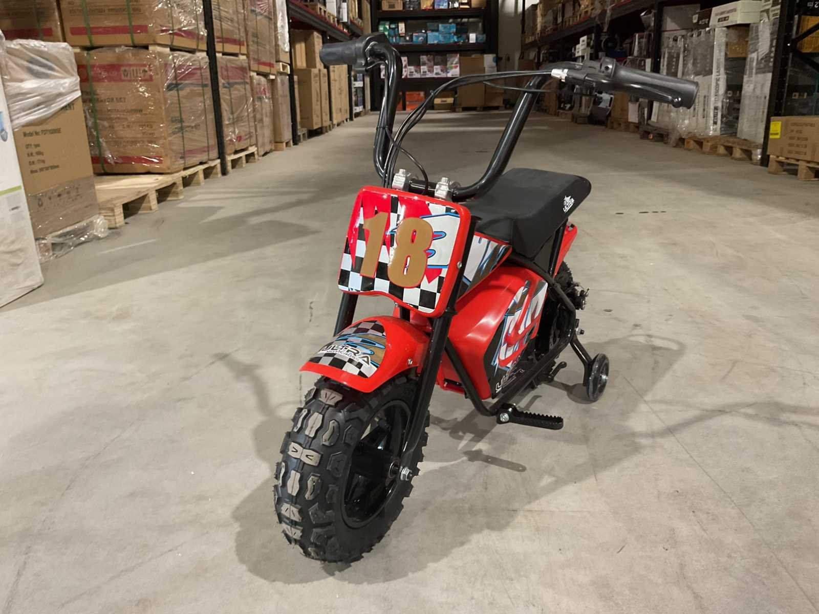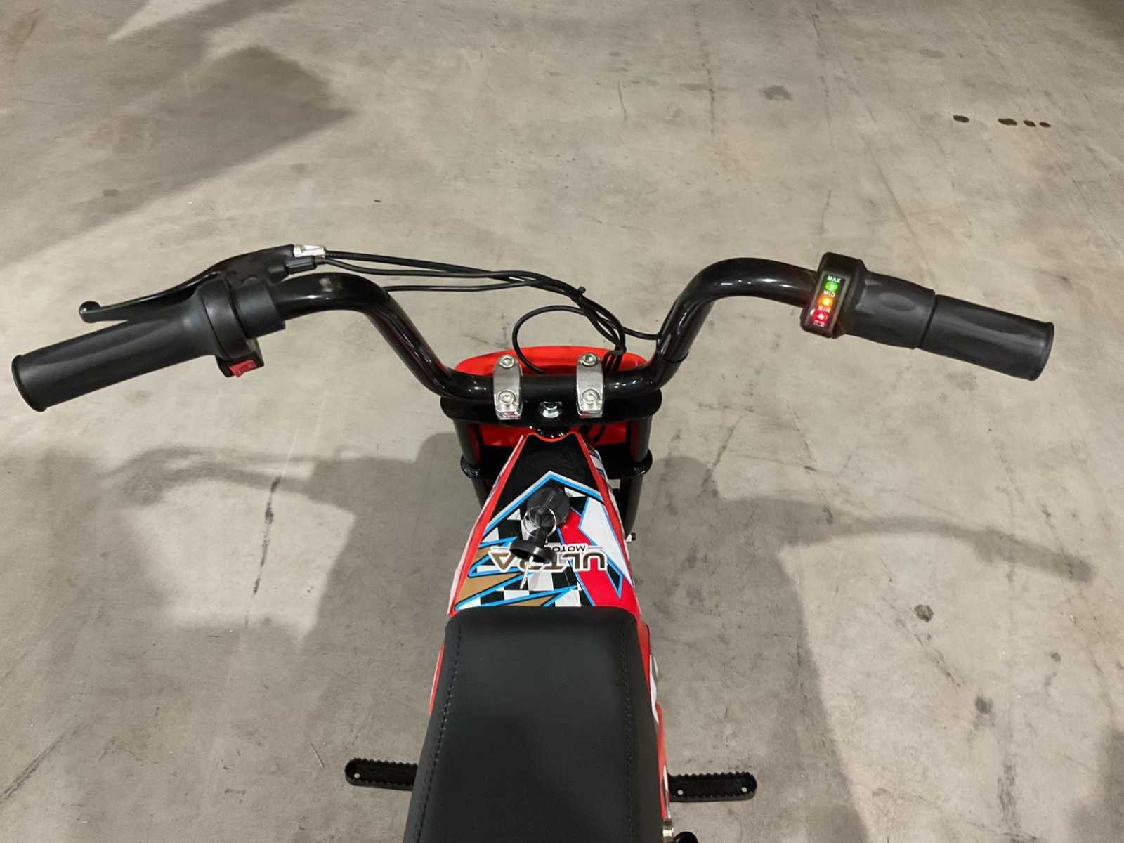 Voorzien van 250W elektrische motor; bandenmaat 7,5” inch; ongebruikt in doos (transport afmetingen 95x25x50 cm) Merk: Ultra Motocross Type: Monkey bike RD Gewicht: 23kg Kleur: Rood Transmissie: Automaat Aantal sleutels: 2 Bouwjaar: 2025