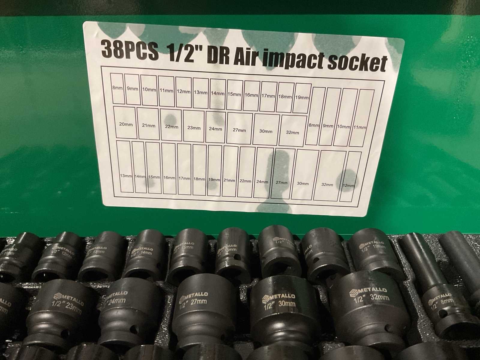 Voorzien van 20delig korte maten 8, 9, 10, 11, 12, 13, 14, 15, 16, 17, 18, 19, 20, 21, 22, 23, 24, 27, 30, 32; 18 delige lange doppen maten lange krachtdop 8 , 9 , 10, 11 , 12, 13, 14, 15, 16, 17, 18, 19, 21, 22, 24, 27, 30, 32; Ongebruikt in doos Merk: Metallo Type: 38 ST Krachtdoppen Bouwjaar: 2025 Lengte: 50cm Breedte: 22cm Hoogte: 6cm