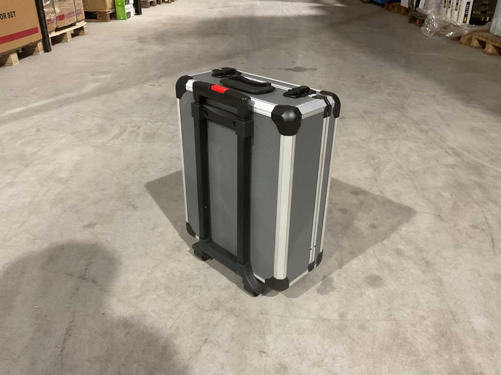 Voorzien van Schroevendraaierset; Lijmpistool; Waterpas; Hamer; Bitset; Inbussleutels; Spanningsmeter; Handgereedschap; Spijkers; pluggen; Aluminium Koffer; Telescoop handgreep; wielen; ongebruikt in doos Merk: Wurzburg Type: 396PCS W-800 Aluminium: true Metaal: true Met inhoud: true Afmeting l: 38.5mm Afmeting b: 20.5mm Afmeting h: 52mm Eigen gewicht: 13kg