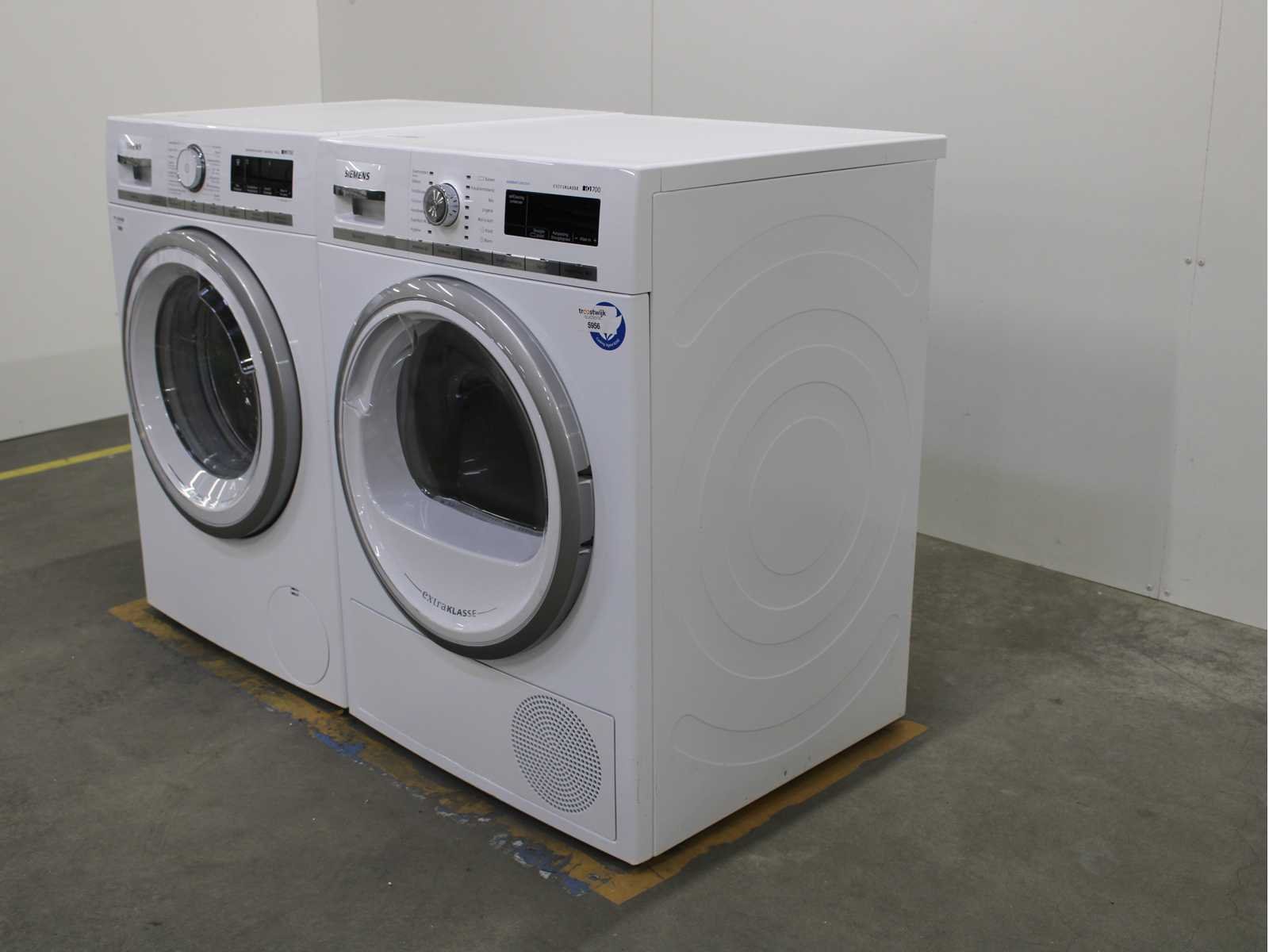 Deze wasmachine en wasdroger komen uit een partij jong gebruikt A-Merk witgoed. De machines zijn volledig getest, gereinigd en indien nodig gerepareerd. Houdt er rekening mee dat de machines lichte gebruikssporen kunnen hebben. Wasmachines en wasdrogers hebben vaak standaard afmetingen. Hoogte 85cm, Breedte 60cm en Diepte 60 tot 70cm, incl. uitstekende slangen e.d. aan de achterzijde. Als de machine vrij komt te staan is de afmeting minder relevant. Wil je de machine in een nis plaatsen of inbouwen? Controleer dan de exacte afmetingen op basis van het aangeboden merk en model/type. Within 7 days Merk: Siemens Serienummer: WM16XM91FG/06 en WT4705C9NL