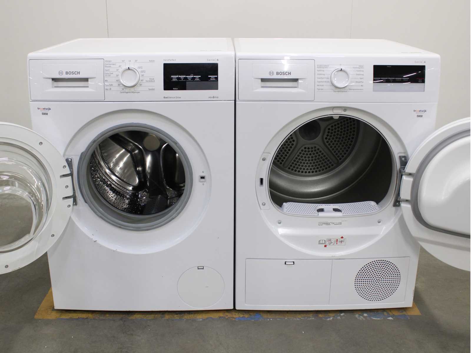 Deze wasmachine en wasdroger komen uit een partij jong gebruikt A-Merk witgoed. De machines zijn volledig getest, gereinigd en indien nodig gerepareerd. Houdt er rekening mee dat de machines lichte gebruikssporen kunnen hebben. Wasmachines en wasdrogers hebben vaak standaard afmetingen. Hoogte 85cm, Breedte 60cm en Diepte 60 tot 70cm, incl. uitstekende slangen e.d. aan de achterzijde. Als de machine vrij komt te staan is de afmeting minder relevant. Wil je de machine in een nis plaatsen of inbouwen? Controleer dan de exacte afmetingen op basis van het aangeboden merk en model/type. Within 7 days Merk: Bosch Serienummer: WNAT323471/14 en WTN83202NL