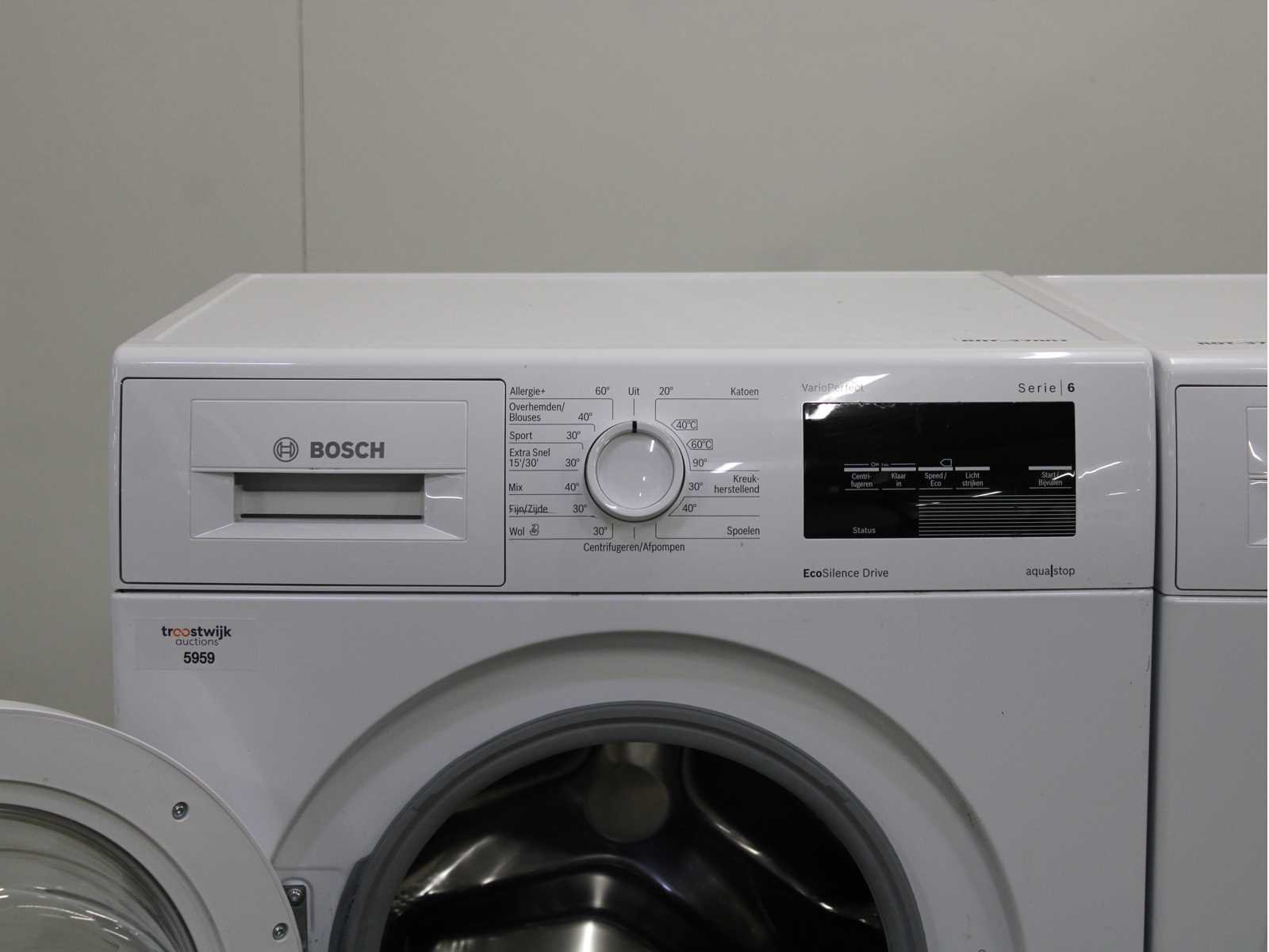 Deze wasmachine en wasdroger komen uit een partij jong gebruikt A-Merk witgoed. De machines zijn volledig getest, gereinigd en indien nodig gerepareerd. Houdt er rekening mee dat de machines lichte gebruikssporen kunnen hebben. Wasmachines en wasdrogers hebben vaak standaard afmetingen. Hoogte 85cm, Breedte 60cm en Diepte 60 tot 70cm, incl. uitstekende slangen e.d. aan de achterzijde. Als de machine vrij komt te staan is de afmeting minder relevant. Wil je de machine in een nis plaatsen of inbouwen? Controleer dan de exacte afmetingen op basis van het aangeboden merk en model/type. Within 7 days Merk: Bosch Serienummer: WNAT323471/14 en WTN83202NL/03 FD 0012 200281