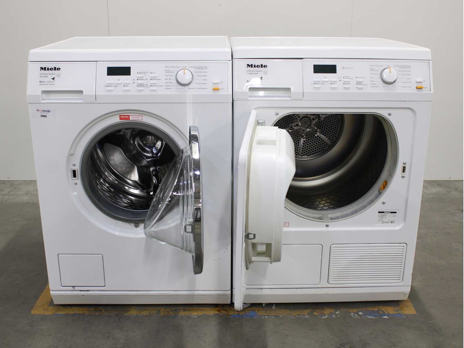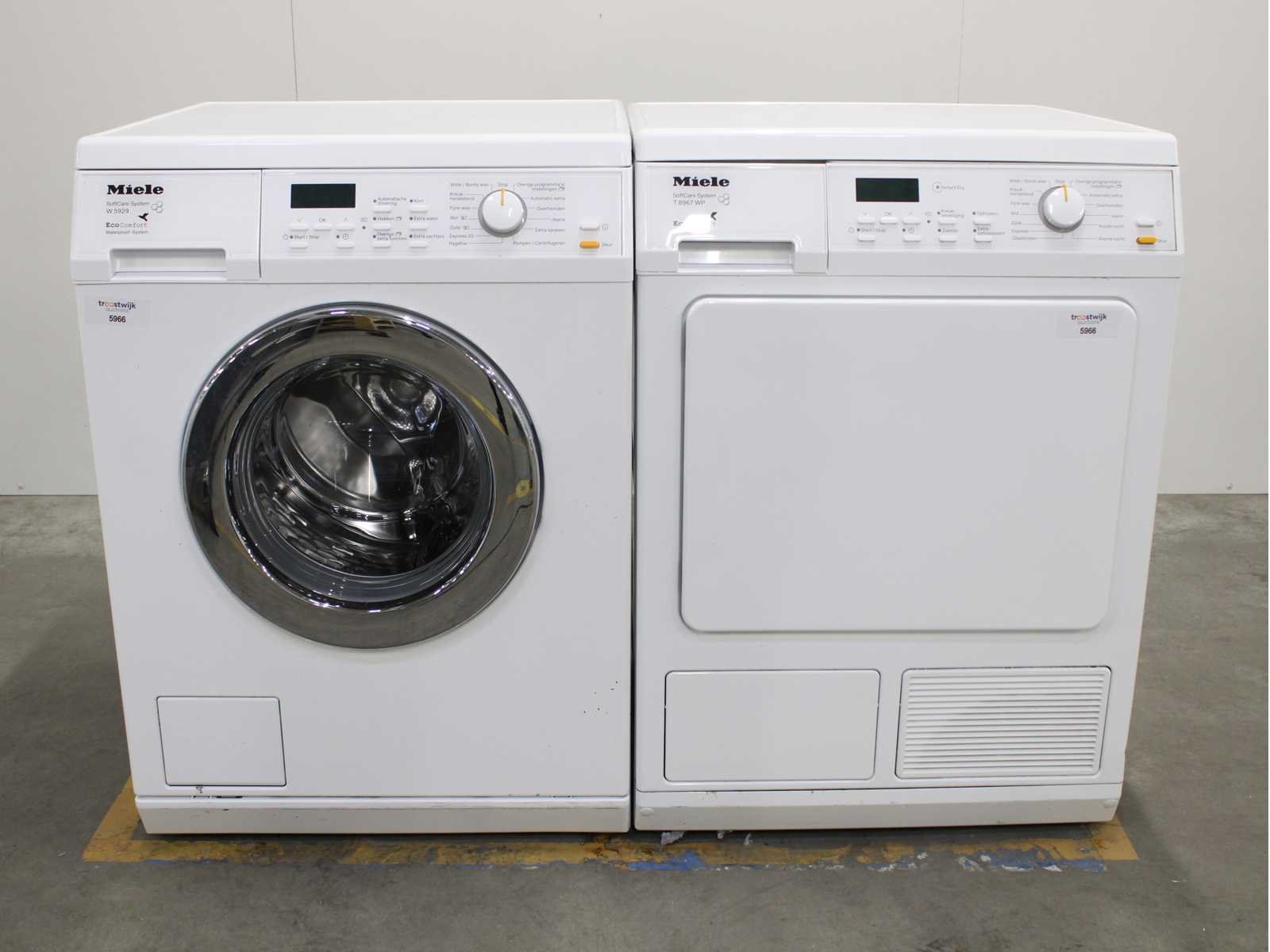 Deze wasmachine en wasdroger komen uit een partij jong gebruikt A-Merk witgoed. De machines zijn volledig getest, gereinigd en indien nodig gerepareerd. Houdt er rekening mee dat de machines lichte gebruikssporen kunnen hebben. Wasmachines en wasdrogers hebben vaak standaard afmetingen. Hoogte 85cm, Breedte 60cm en Diepte 60 tot 70cm, incl. uitstekende slangen e.d. aan de achterzijde. Als de machine vrij komt te staan is de afmeting minder relevant. Wil je de machine in een nis plaatsen of inbouwen? Controleer dan de exacte afmetingen op basis van het aangeboden merk en model/type. Within 7 days Merk: Miele Serienummer: W59292PS en T8967WP