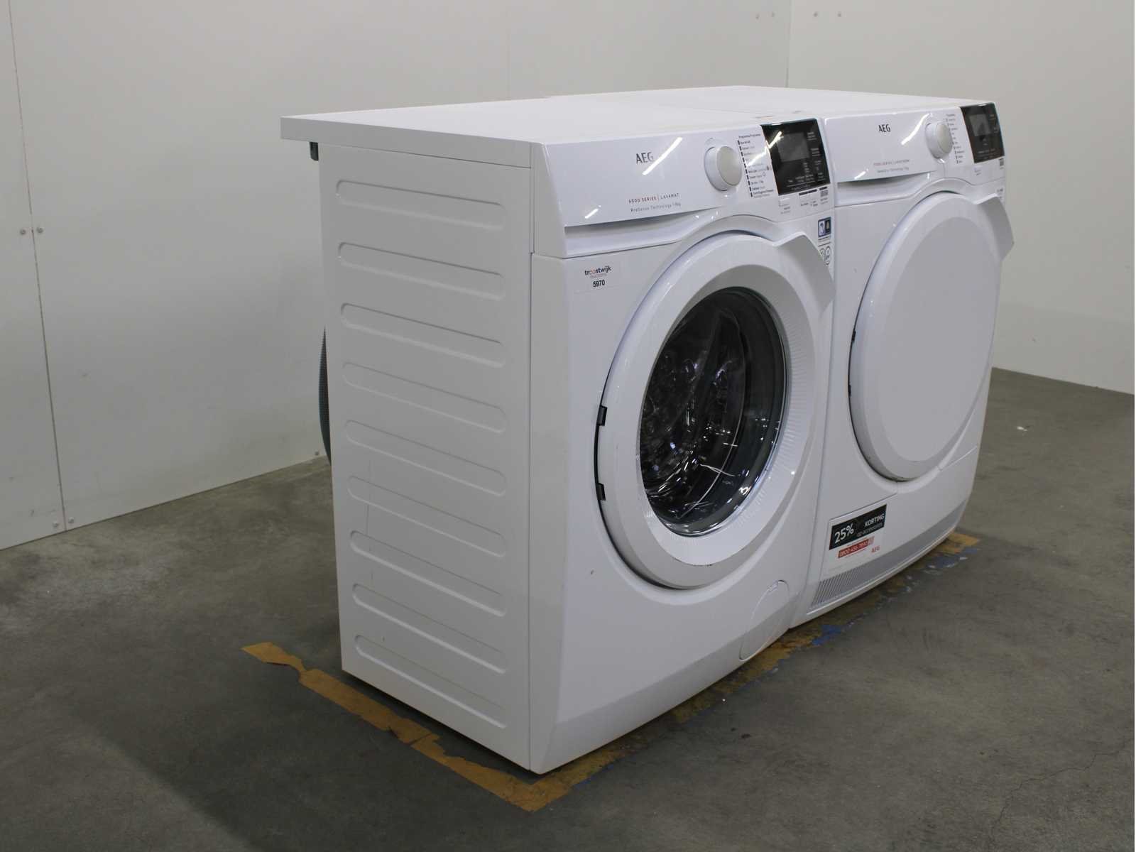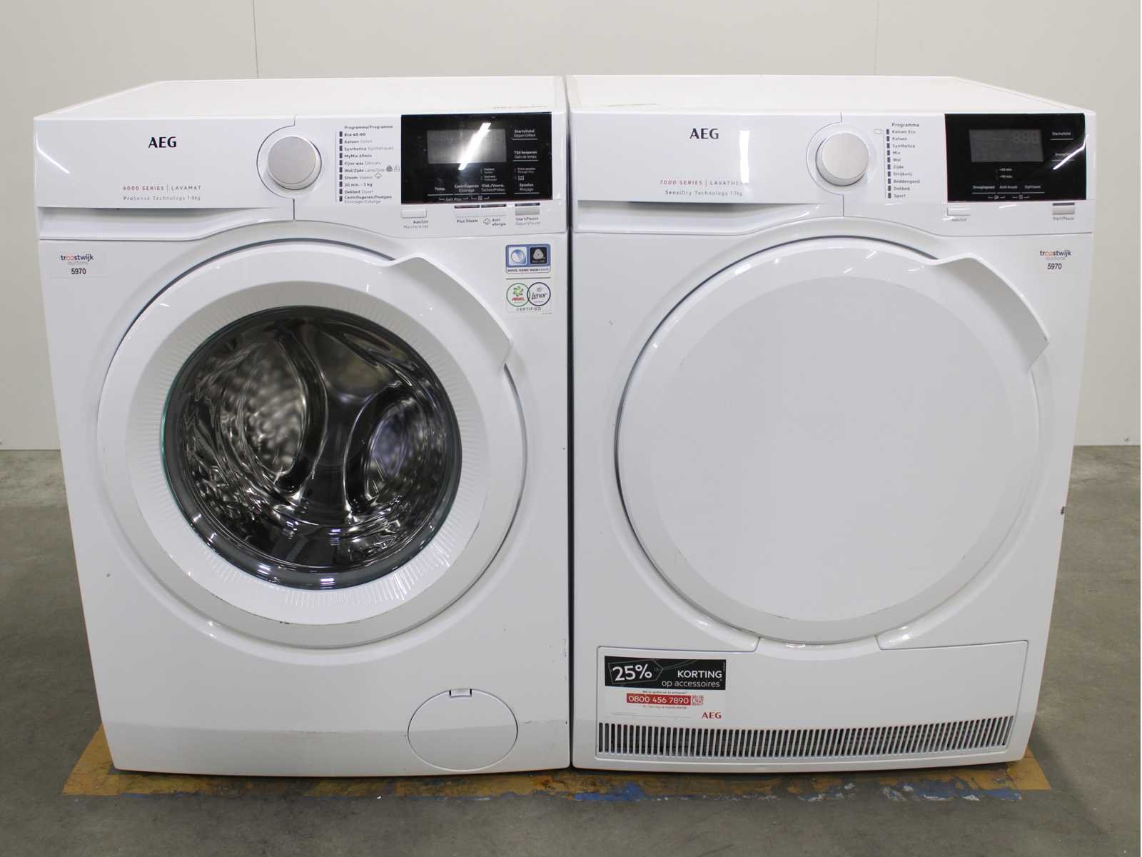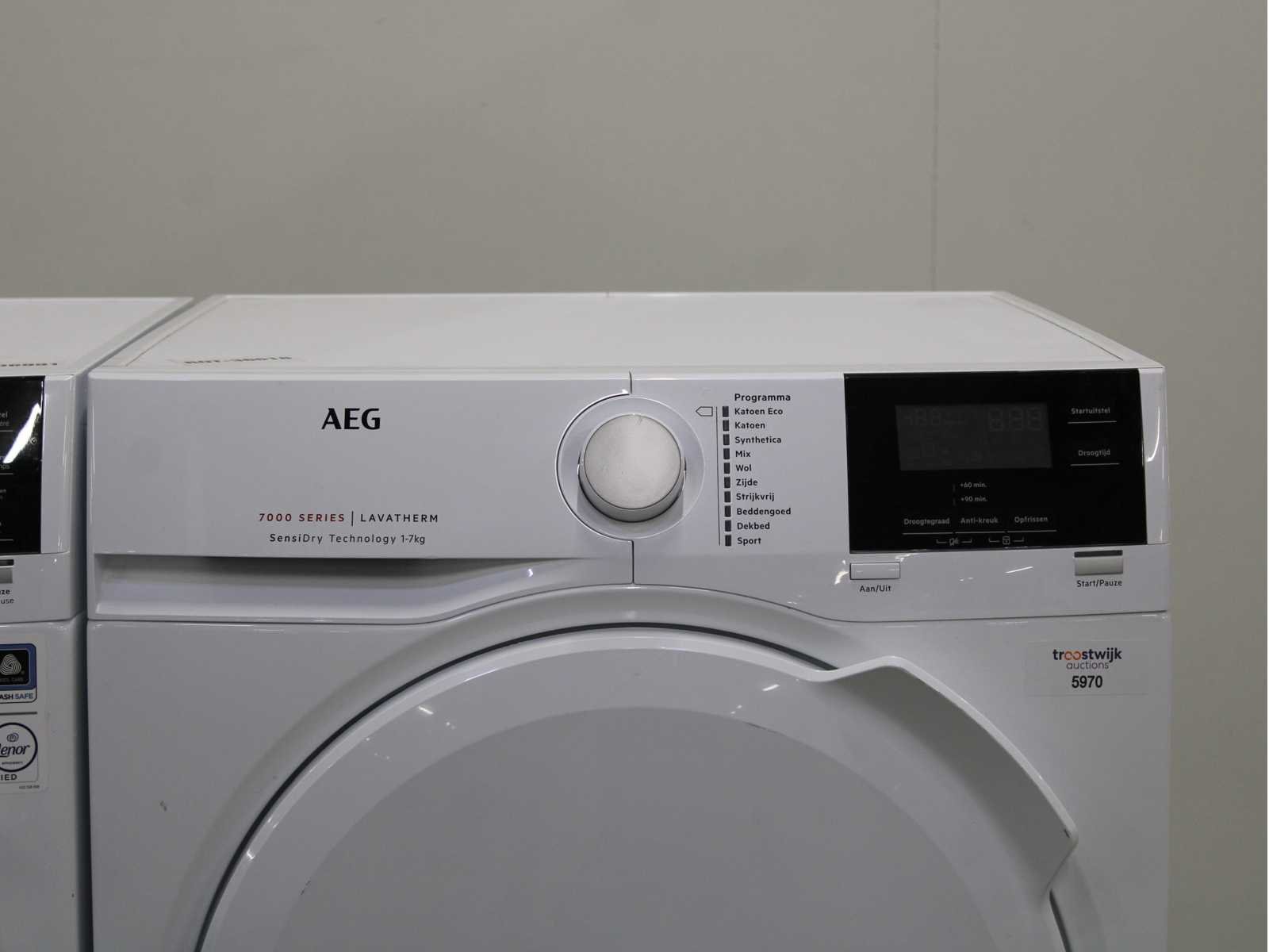Deze wasmachine en wasdroger komen uit een partij jong gebruikt A-Merk witgoed. De machines zijn volledig getest, gereinigd en indien nodig gerepareerd. Houdt er rekening mee dat de machines lichte gebruikssporen kunnen hebben. Wasmachines en wasdrogers hebben vaak standaard afmetingen. Hoogte 85cm, Breedte 60cm en Diepte 60 tot 70cm, incl. uitstekende slangen e.d. aan de achterzijde. Als de machine vrij komt te staan is de afmeting minder relevant. Wil je de machine in een nis plaatsen of inbouwen? Controleer dan de exacte afmetingen op basis van het aangeboden merk en model/type. Within 7 days Merk: AEG Serienummer: L7FBB84 en T7DBNP612