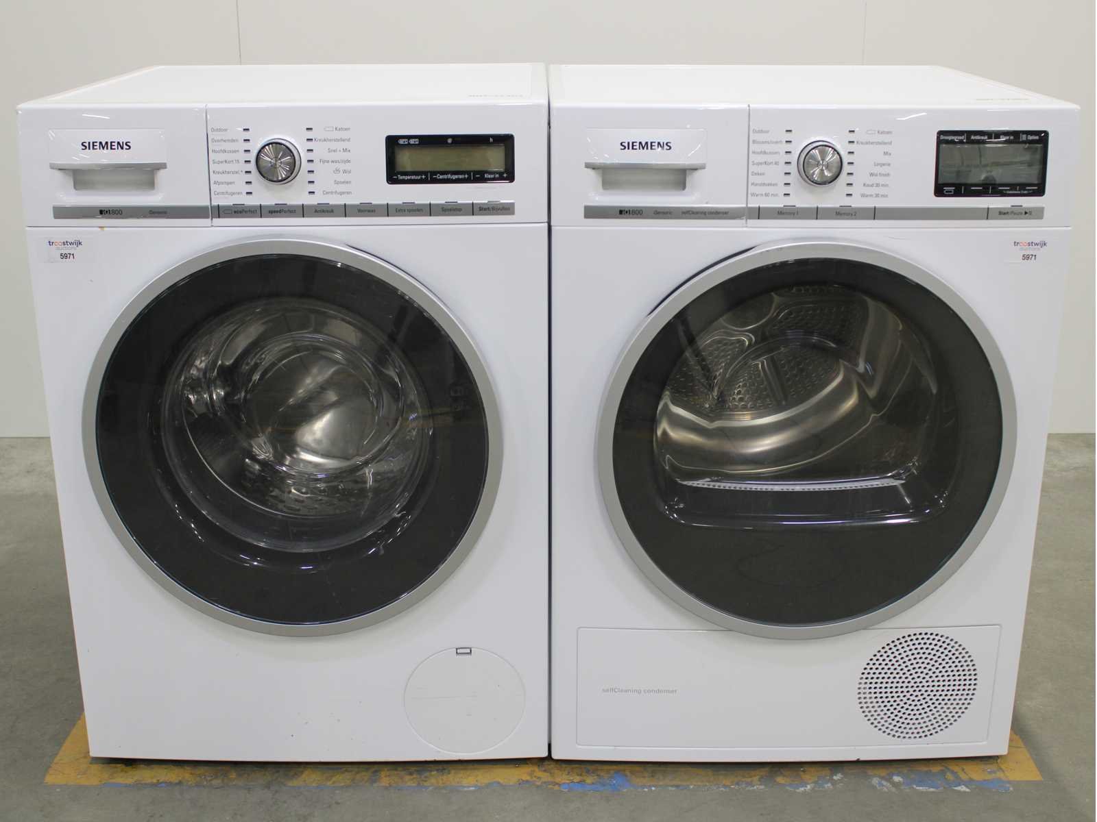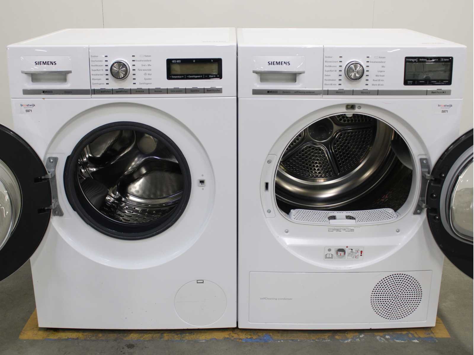 Deze wasmachine en wasdroger komen uit een partij jong gebruikt A-Merk witgoed. De machines zijn volledig getest, gereinigd en indien nodig gerepareerd. Houdt er rekening mee dat de machines lichte gebruikssporen kunnen hebben. Wasmachines en wasdrogers hebben vaak standaard afmetingen. Hoogte 85cm, Breedte 60cm en Diepte 60 tot 70cm, incl. uitstekende slangen e.d. aan de achterzijde. Als de machine vrij komt te staan is de afmeting minder relevant. Wil je de machine in een nis plaatsen of inbouwen? Controleer dan de exacte afmetingen op basis van het aangeboden merk en model/type. Within 7 days Merk: Siemens Serienummer: WM16Y541NL en WT47Y700NL/17