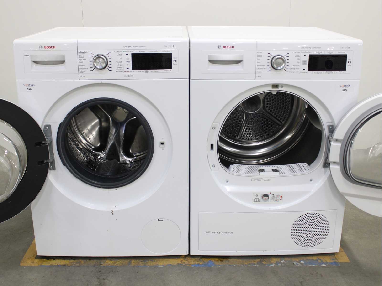 Deze wasmachine en wasdroger komen uit een partij jong gebruikt A-Merk witgoed. De machines zijn volledig getest, gereinigd en indien nodig gerepareerd. Houdt er rekening mee dat de machines lichte gebruikssporen kunnen hebben. Wasmachines en wasdrogers hebben vaak standaard afmetingen. Hoogte 85cm, Breedte 60cm en Diepte 60 tot 70cm, incl. uitstekende slangen e.d. aan de achterzijde. Als de machine vrij komt te staan is de afmeting minder relevant. Wil je de machine in een nis plaatsen of inbouwen? Controleer dan de exacte afmetingen op basis van het aangeboden merk en model/type. Within 7 days Merk: Bosch Serienummer: WAW32642NL/09 en WTW87562NL