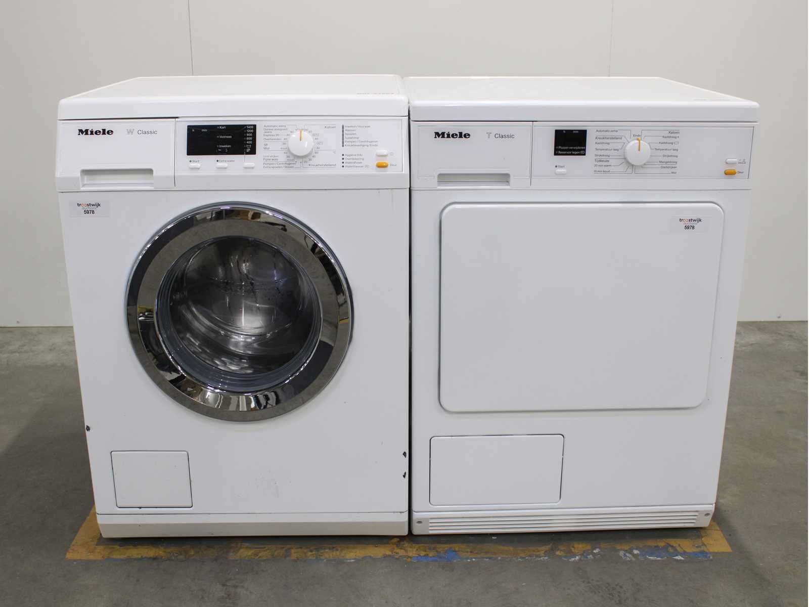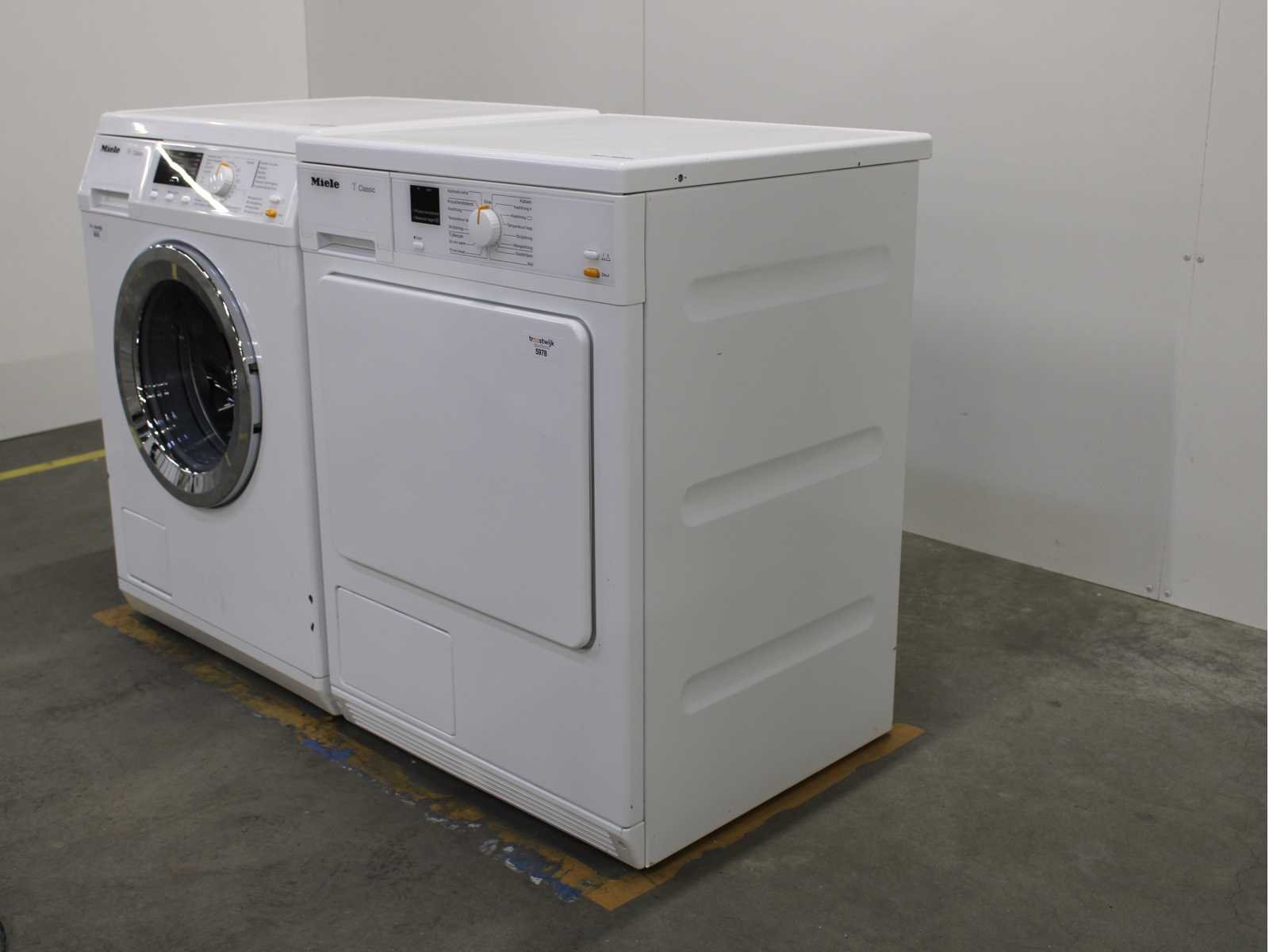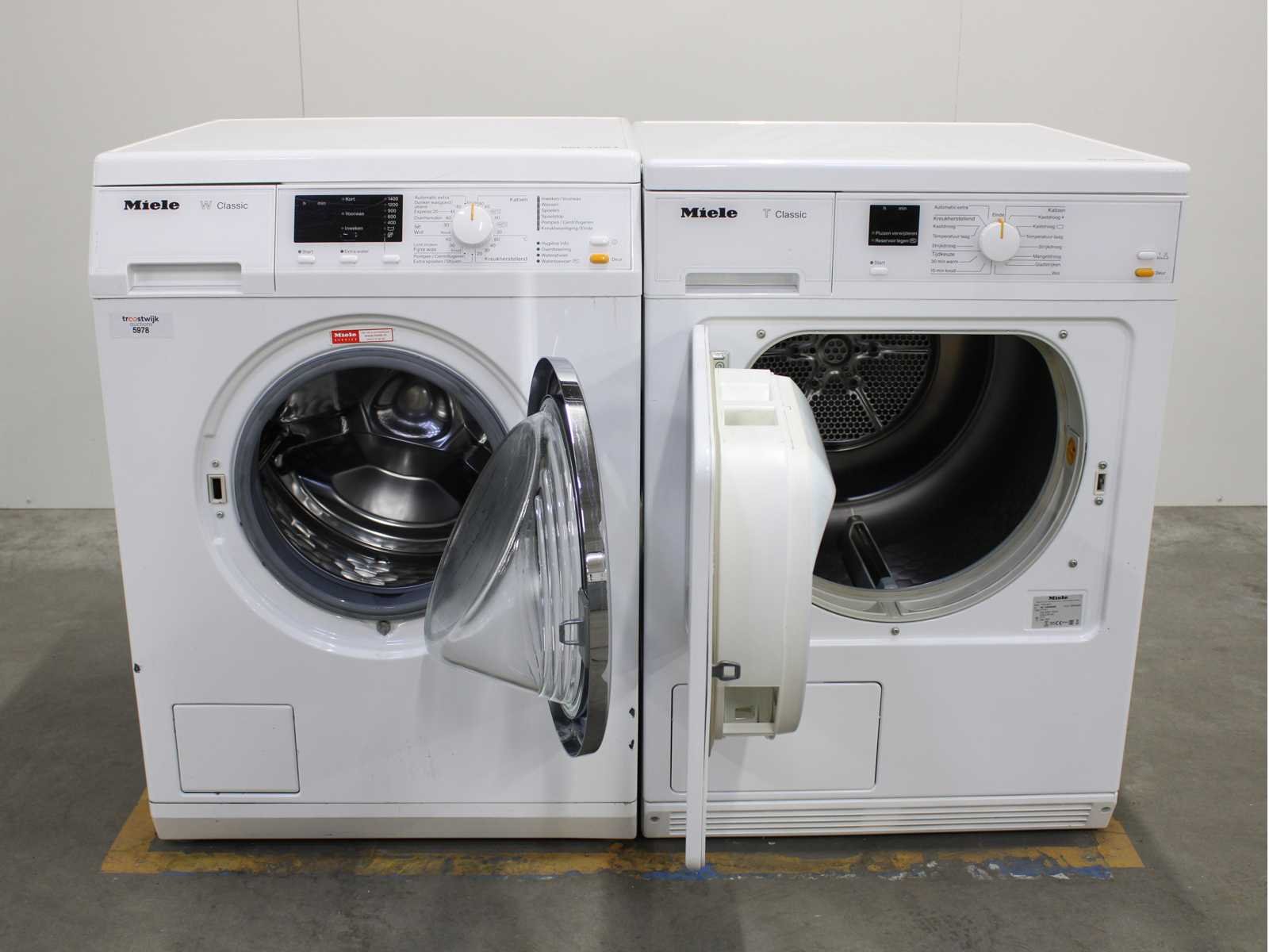 Deze wasmachine en wasdroger komen uit een partij jong gebruikt A-Merk witgoed. De machines zijn volledig getest, gereinigd en indien nodig gerepareerd. Houdt er rekening mee dat de machines lichte gebruikssporen kunnen hebben. Wasmachines en wasdrogers hebben vaak standaard afmetingen. Hoogte 85cm, Breedte 60cm en Diepte 60 tot 70cm, incl. uitstekende slangen e.d. aan de achterzijde. Als de machine vrij komt te staan is de afmeting minder relevant. Wil je de machine in een nis plaatsen of inbouwen? Controleer dan de exacte afmetingen op basis van het aangeboden merk en model/type. Within 7 days Merk: Miele Serienummer: WDA110 en TDA140C