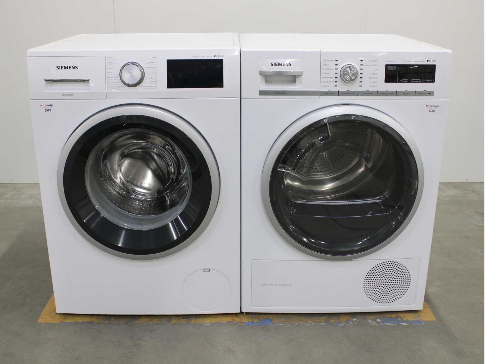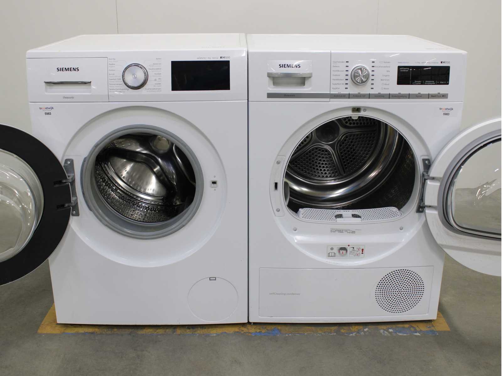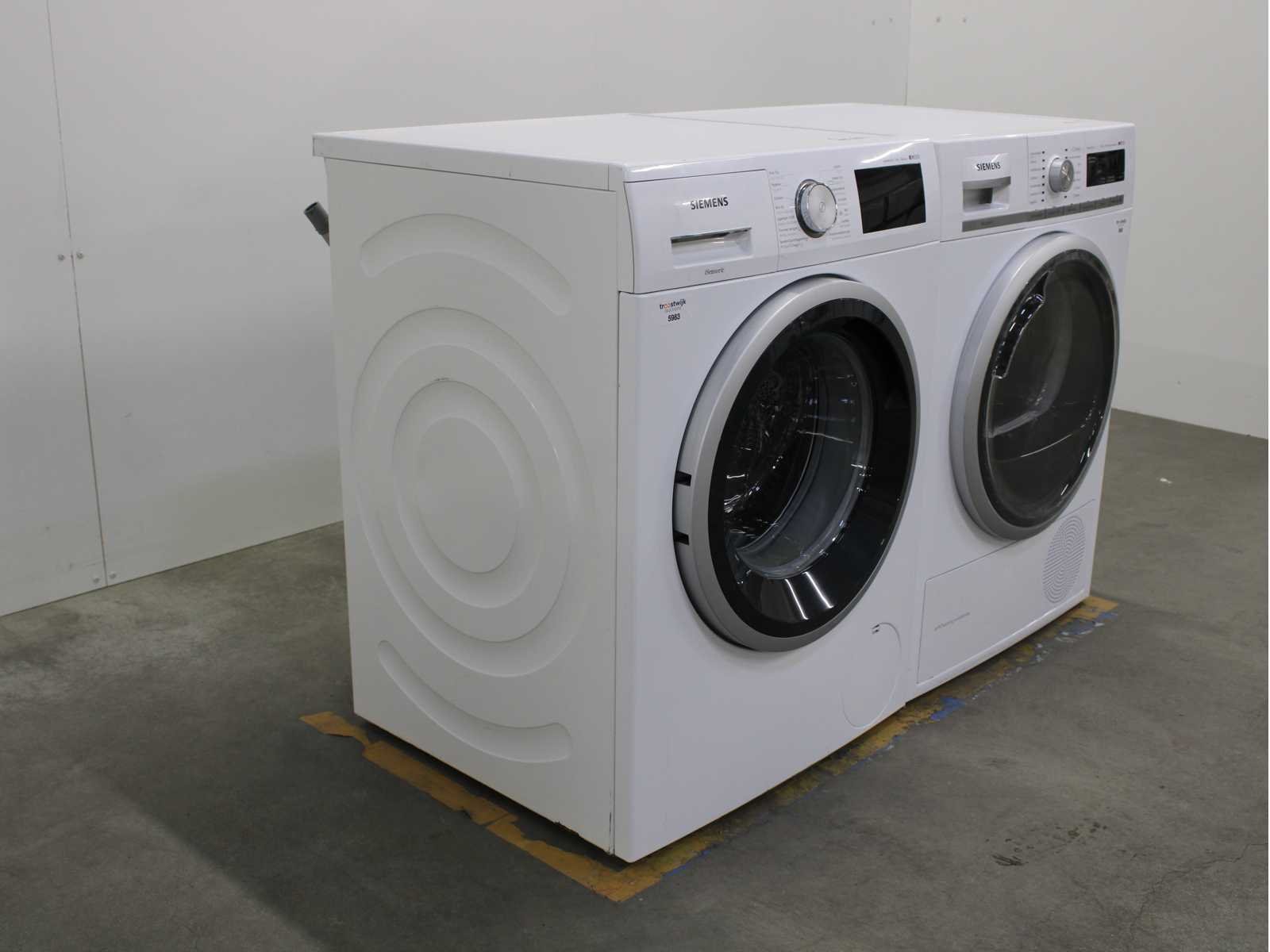 Deze wasmachine en wasdroger komen uit een partij jong gebruikt A-Merk witgoed. De machines zijn volledig getest, gereinigd en indien nodig gerepareerd. Houdt er rekening mee dat de machines lichte gebruikssporen kunnen hebben. Wasmachines en wasdrogers hebben vaak standaard afmetingen. Hoogte 85cm, Breedte 60cm en Diepte 60 tot 70cm, incl. uitstekende slangen e.d. aan de achterzijde. Als de machine vrij komt te staan is de afmeting minder relevant. Wil je de machine in een nis plaatsen of inbouwen? Controleer dan de exacte afmetingen op basis van het aangeboden merk en model/type. Within 7 days Merk: Siemens Serienummer: WM14T660FG en WT47W5G2NL/03