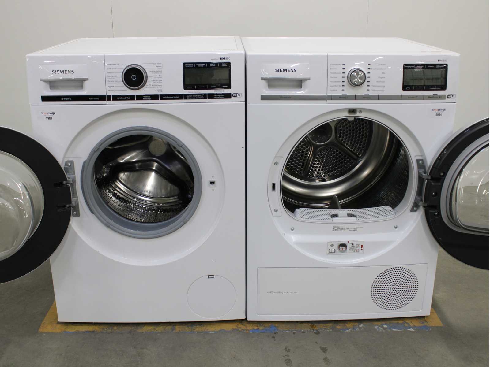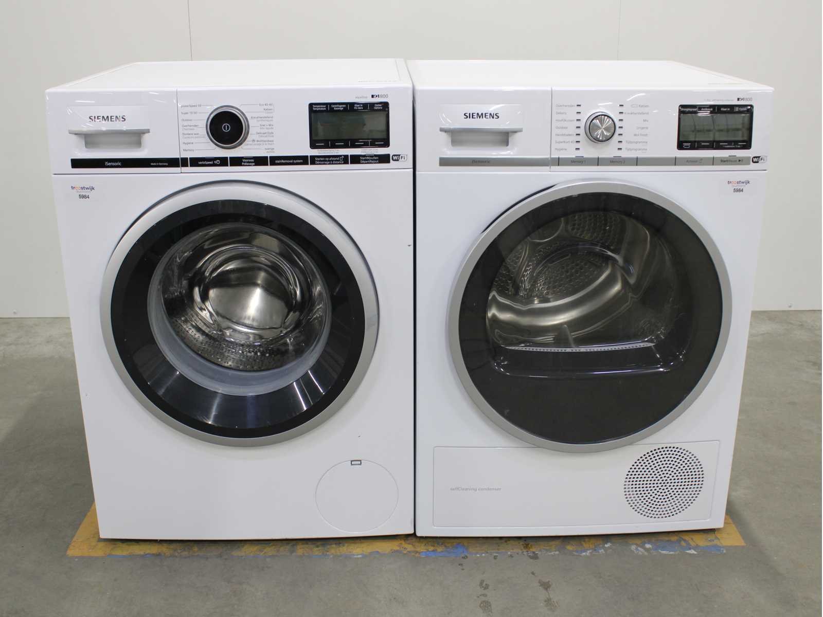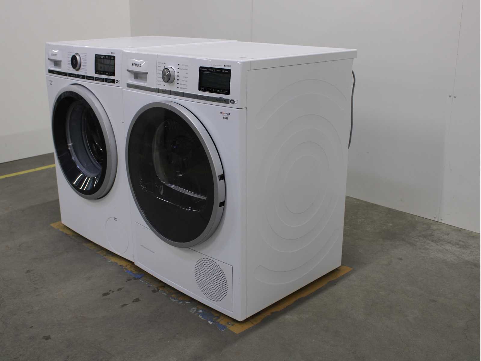 Deze wasmachine en wasdroger komen uit een partij jong gebruikt A-Merk witgoed. De machines zijn volledig getest, gereinigd en indien nodig gerepareerd. Houdt er rekening mee dat de machines lichte gebruikssporen kunnen hebben. Wasmachines en wasdrogers hebben vaak standaard afmetingen. Hoogte 85cm, Breedte 60cm en Diepte 60 tot 70cm, incl. uitstekende slangen e.d. aan de achterzijde. Als de machine vrij komt te staan is de afmeting minder relevant. Wil je de machine in een nis plaatsen of inbouwen? Controleer dan de exacte afmetingen op basis van het aangeboden merk en model/type. Within 7 days Merk: Siemens Serienummer: WM14VGHCFG en WT4H8Y78NL