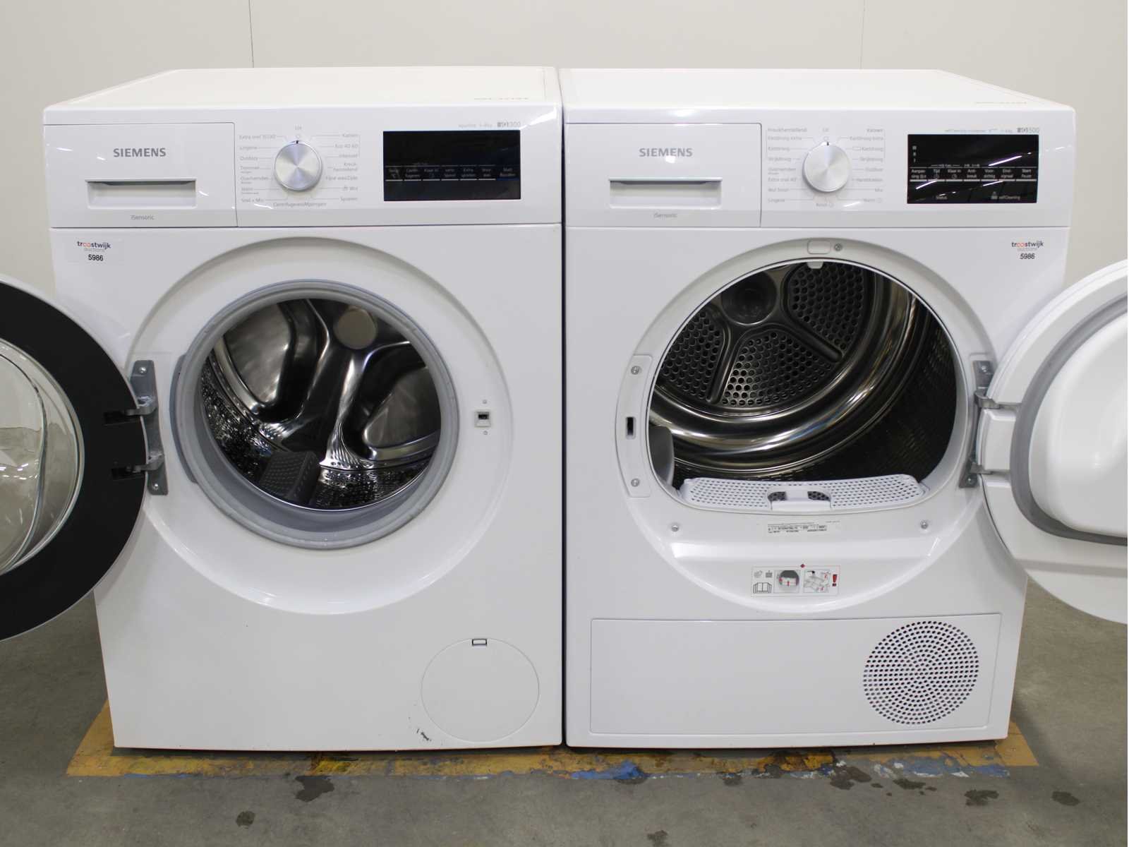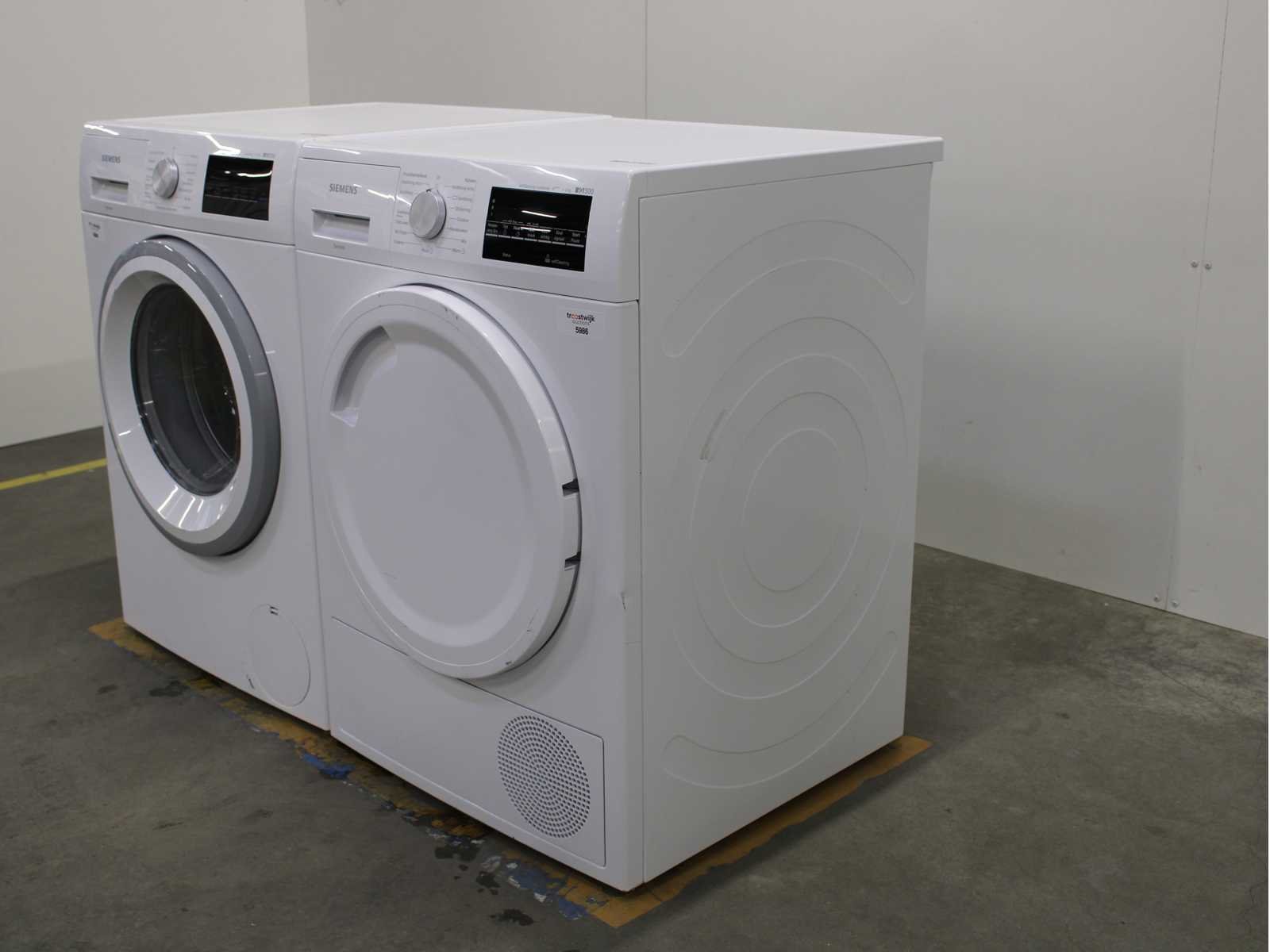 Deze wasmachine en wasdroger komen uit een partij jong gebruikt A-Merk witgoed. De machines zijn volledig getest, gereinigd en indien nodig gerepareerd. Houdt er rekening mee dat de machines lichte gebruikssporen kunnen hebben. Wasmachines en wasdrogers hebben vaak standaard afmetingen. Hoogte 85cm, Breedte 60cm en Diepte 60 tot 70cm, incl. uitstekende slangen e.d. aan de achterzijde. Als de machine vrij komt te staan is de afmeting minder relevant. Wil je de machine in een nis plaatsen of inbouwen? Controleer dan de exacte afmetingen op basis van het aangeboden merk en model/type. Within 7 days Merk: Siemens Serienummer: WM14N276NL/48 en WT45W470NL/10