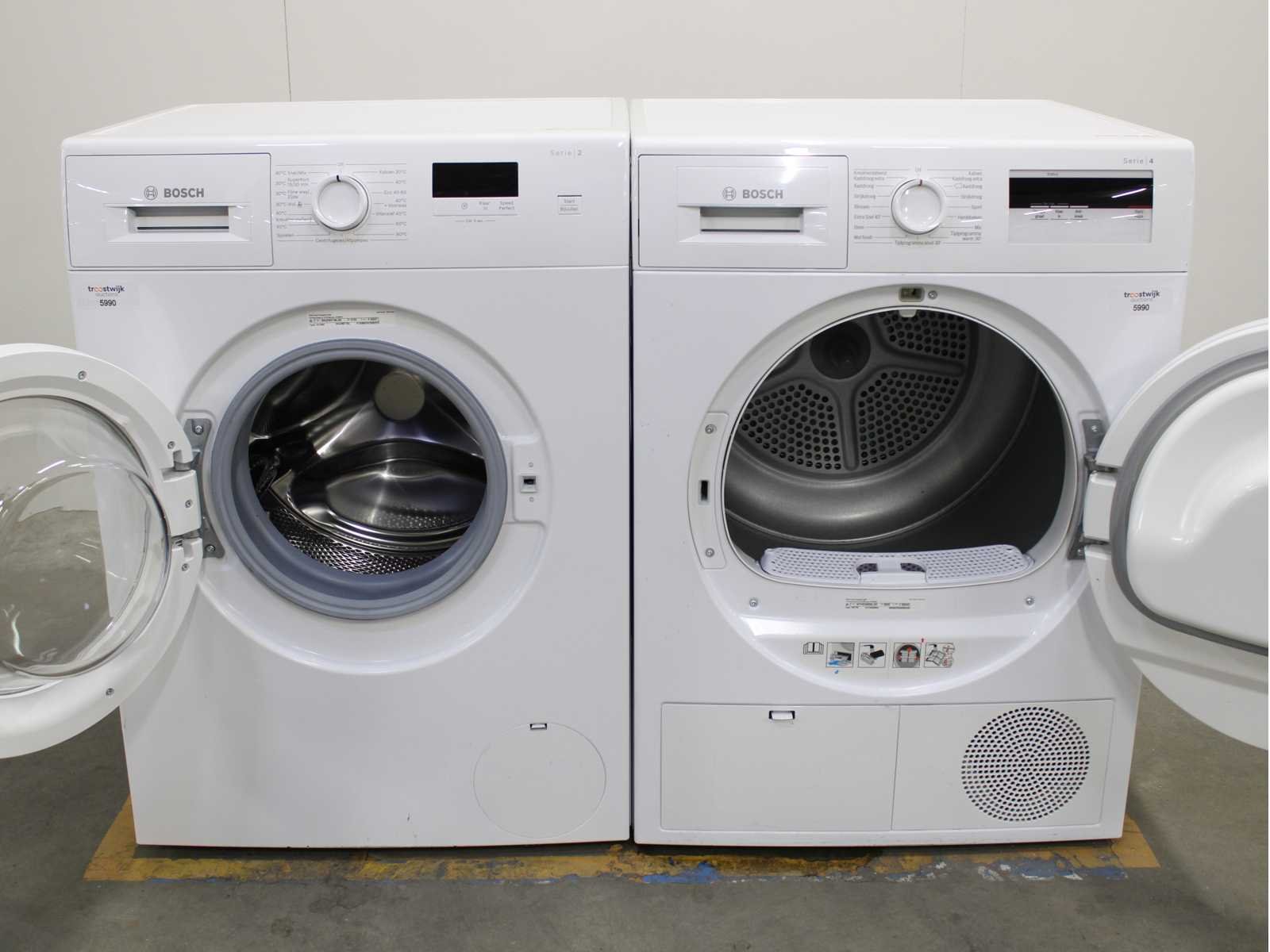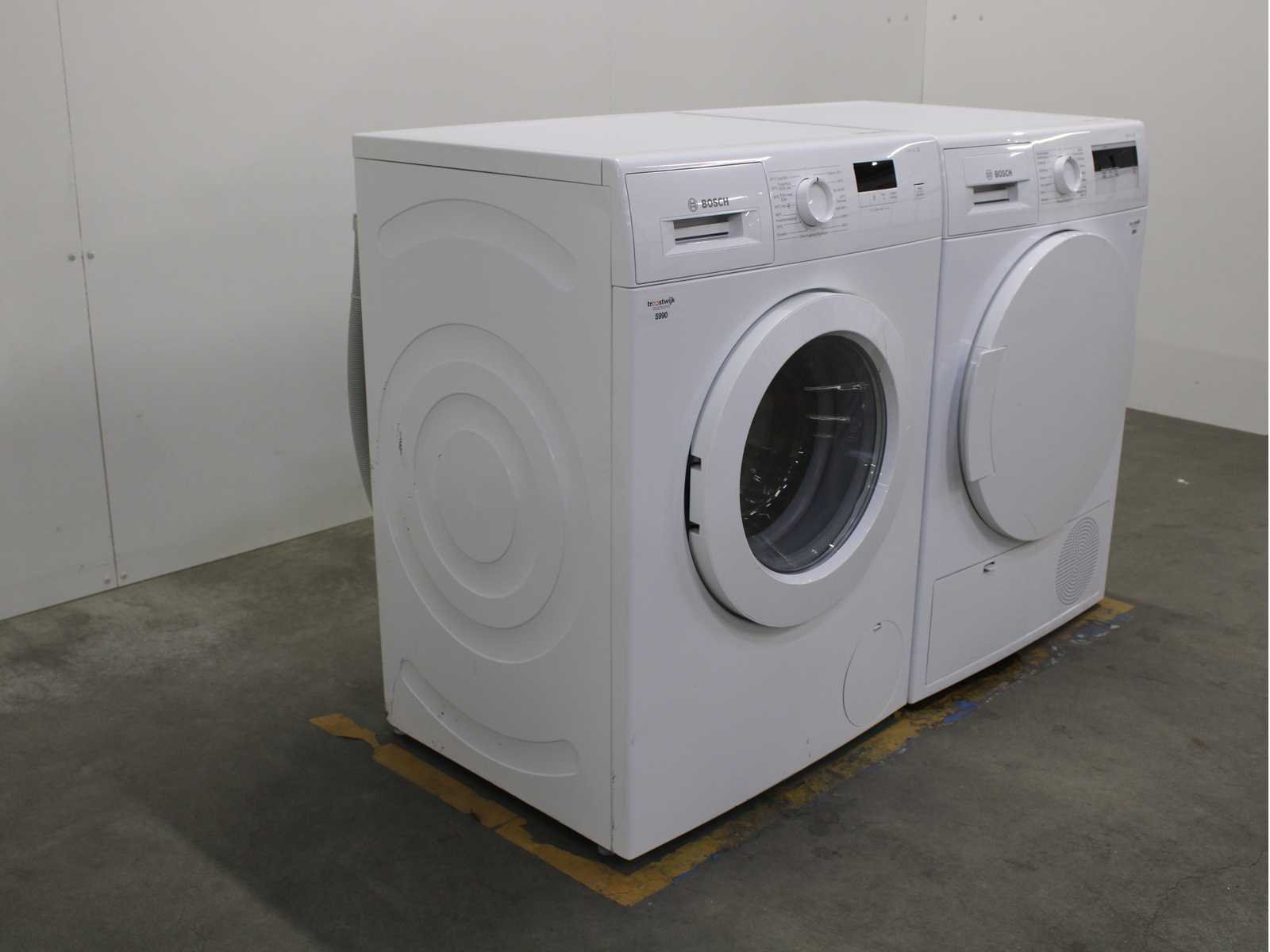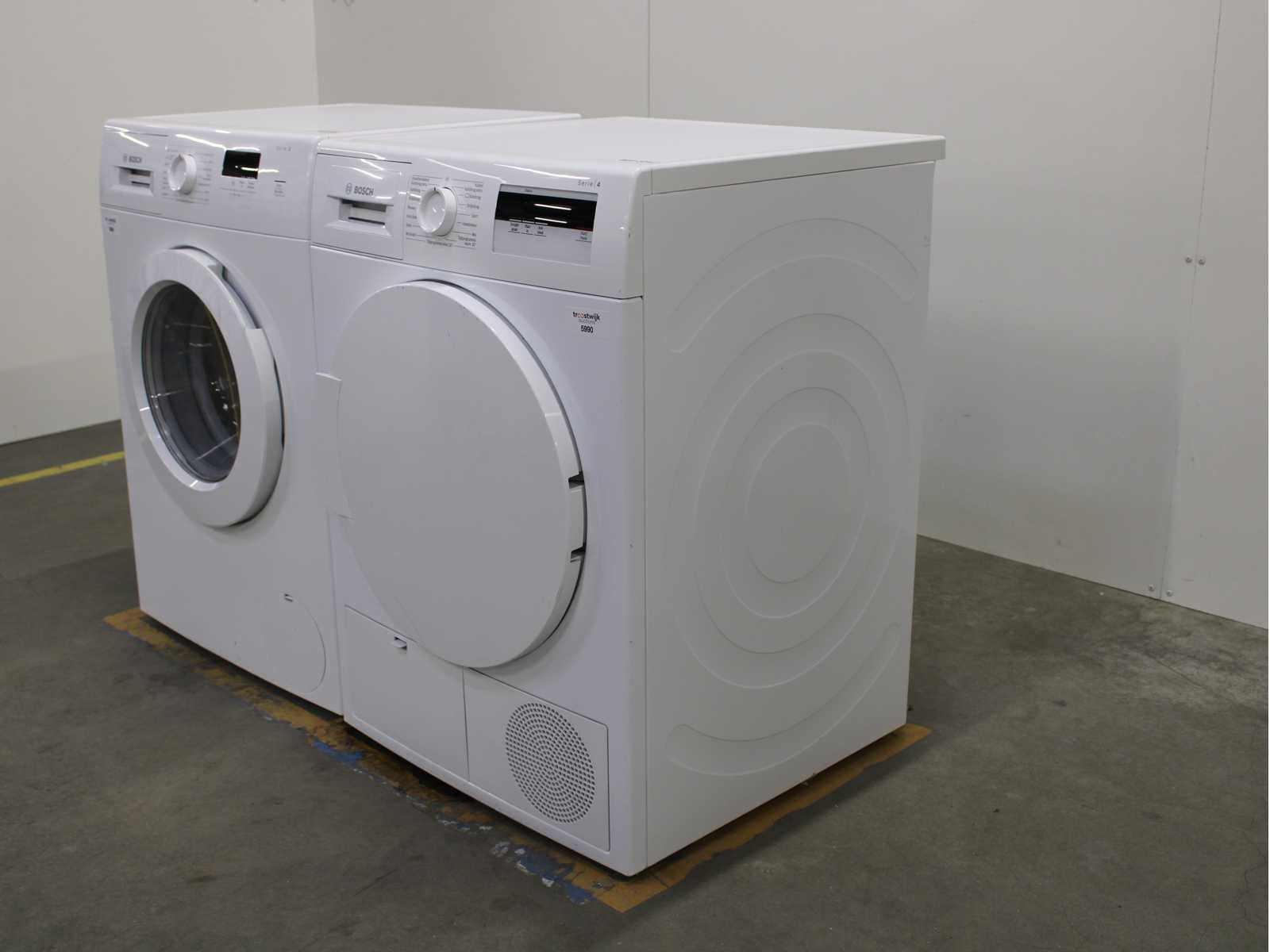 Deze wasmachine en wasdroger komen uit een partij jong gebruikt A-Merk witgoed. De machines zijn volledig getest, gereinigd en indien nodig gerepareerd. Houdt er rekening mee dat de machines lichte gebruikssporen kunnen hebben. Wasmachines en wasdrogers hebben vaak standaard afmetingen. Hoogte 85cm, Breedte 60cm en Diepte 60 tot 70cm, incl. uitstekende slangen e.d. aan de achterzijde. Als de machine vrij komt te staan is de afmeting minder relevant. Wil je de machine in een nis plaatsen of inbouwen? Controleer dan de exacte afmetingen op basis van het aangeboden merk en model/type. Within 7 days Merk: Bosch Serienummer: WAJ28071NL en WTH83000NL