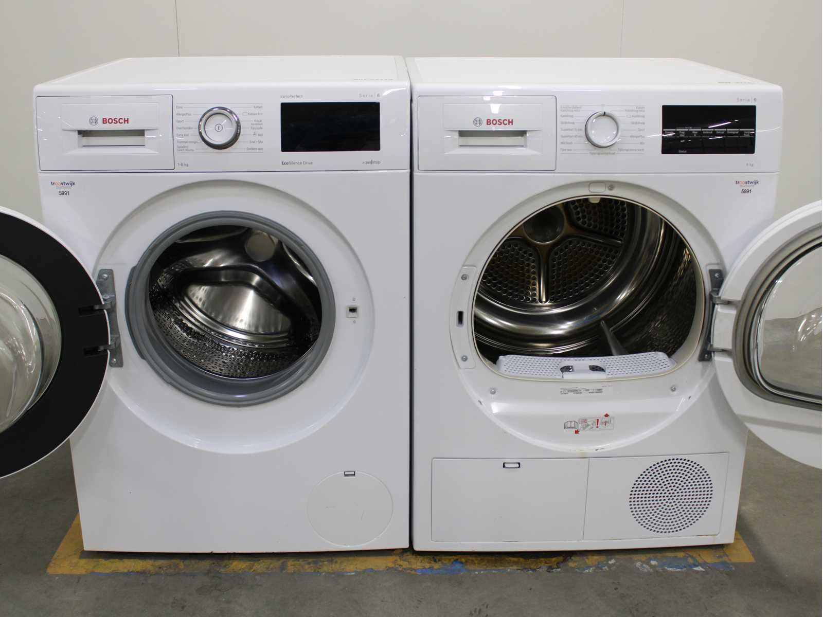 Deze wasmachine en wasdroger komen uit een partij jong gebruikt A-Merk witgoed. De machines zijn volledig getest, gereinigd en indien nodig gerepareerd. Houdt er rekening mee dat de machines lichte gebruikssporen kunnen hebben. Wasmachines en wasdrogers hebben vaak standaard afmetingen. Hoogte 85cm, Breedte 60cm en Diepte 60 tot 70cm, incl. uitstekende slangen e.d. aan de achterzijde. Als de machine vrij komt te staan is de afmeting minder relevant. Wil je de machine in een nis plaatsen of inbouwen? Controleer dan de exacte afmetingen op basis van het aangeboden merk en model/type. Within 7 days Merk: Bosch Serienummer: WAT28542NL en WTG846C0NL