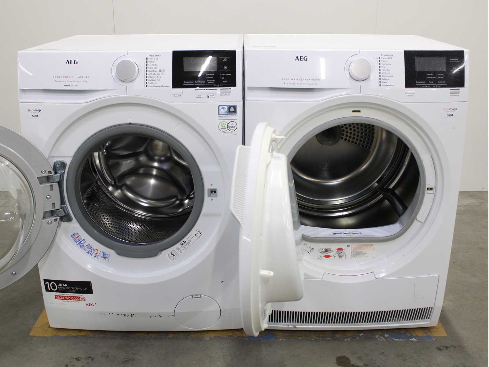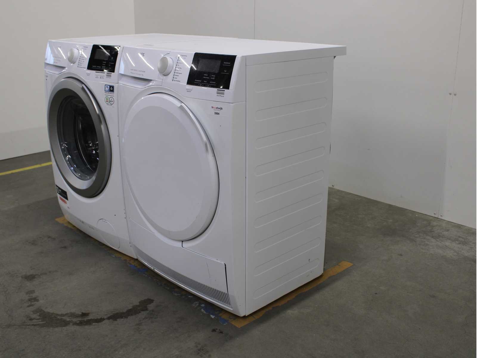 Deze wasmachine en wasdroger komen uit een partij jong gebruikt A-Merk witgoed. De machines zijn volledig getest, gereinigd en indien nodig gerepareerd. Houdt er rekening mee dat de machines lichte gebruikssporen kunnen hebben. Wasmachines en wasdrogers hebben vaak standaard afmetingen. Hoogte 85cm, Breedte 60cm en Diepte 60 tot 70cm, incl. uitstekende slangen e.d. aan de achterzijde. Als de machine vrij komt te staan is de afmeting minder relevant. Wil je de machine in een nis plaatsen of inbouwen? Controleer dan de exacte afmetingen op basis van het aangeboden merk en model/type. Within 7 days Merk: AEG Serienummer: L6FBNAUTO en T6DB72GP