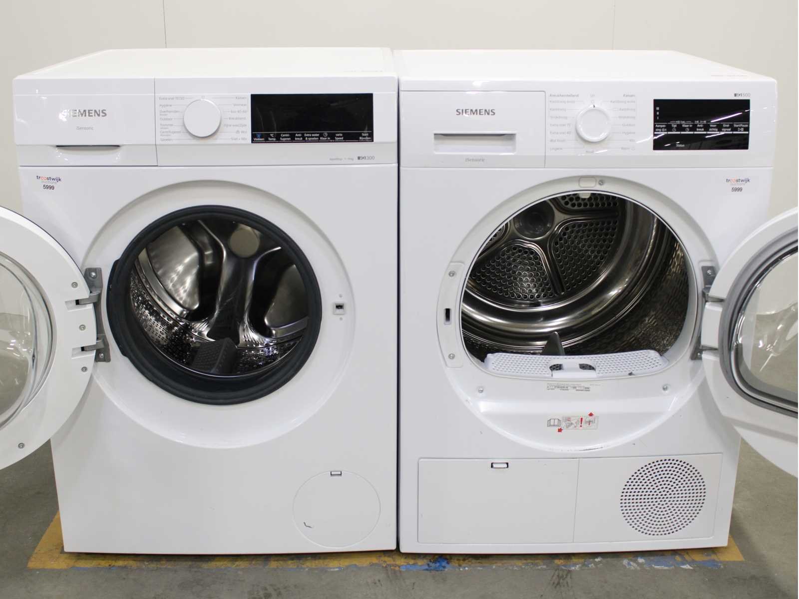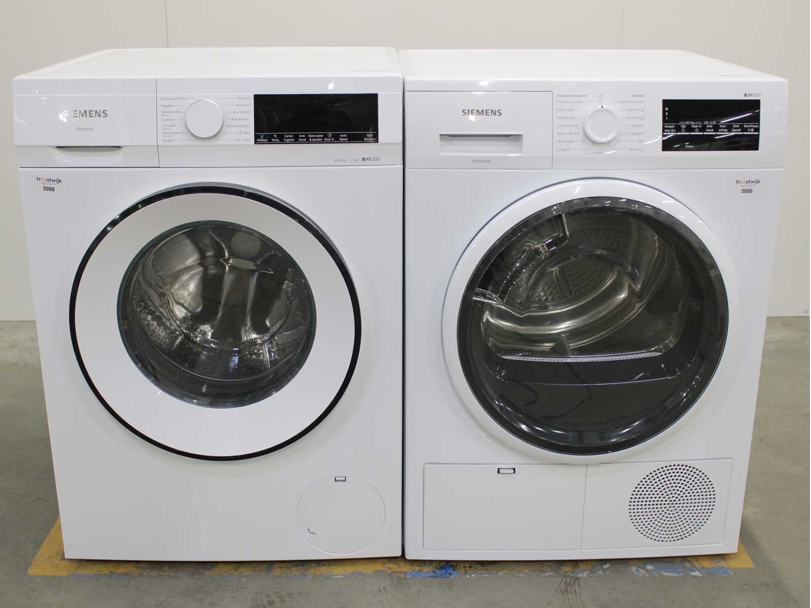 Deze wasmachine en wasdroger komen uit een partij jong gebruikt A-Merk witgoed. De machines zijn volledig getest, gereinigd en indien nodig gerepareerd. Houdt er rekening mee dat de machines lichte gebruikssporen kunnen hebben. Wasmachines en wasdrogers hebben vaak standaard afmetingen. Hoogte 85cm, Breedte 60cm en Diepte 60 tot 70cm, incl. uitstekende slangen e.d. aan de achterzijde. Als de machine vrij komt te staan is de afmeting minder relevant. Wil je de machine in een nis plaatsen of inbouwen? Controleer dan de exacte afmetingen op basis van het aangeboden merk en model/type. Within 7 days Merk: Siemens Serienummer: WG44G007NL en WT46G402NL