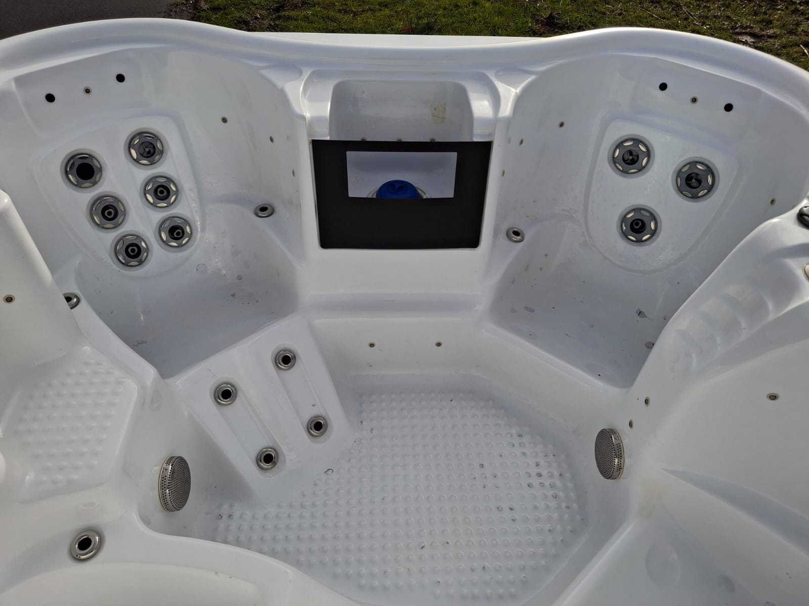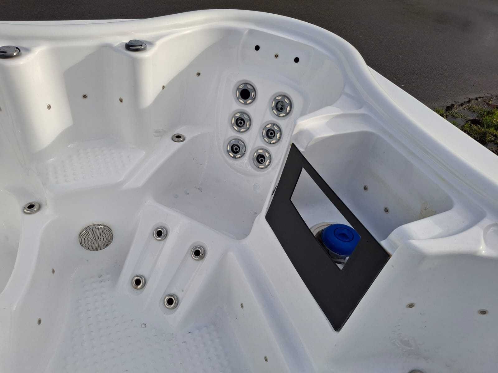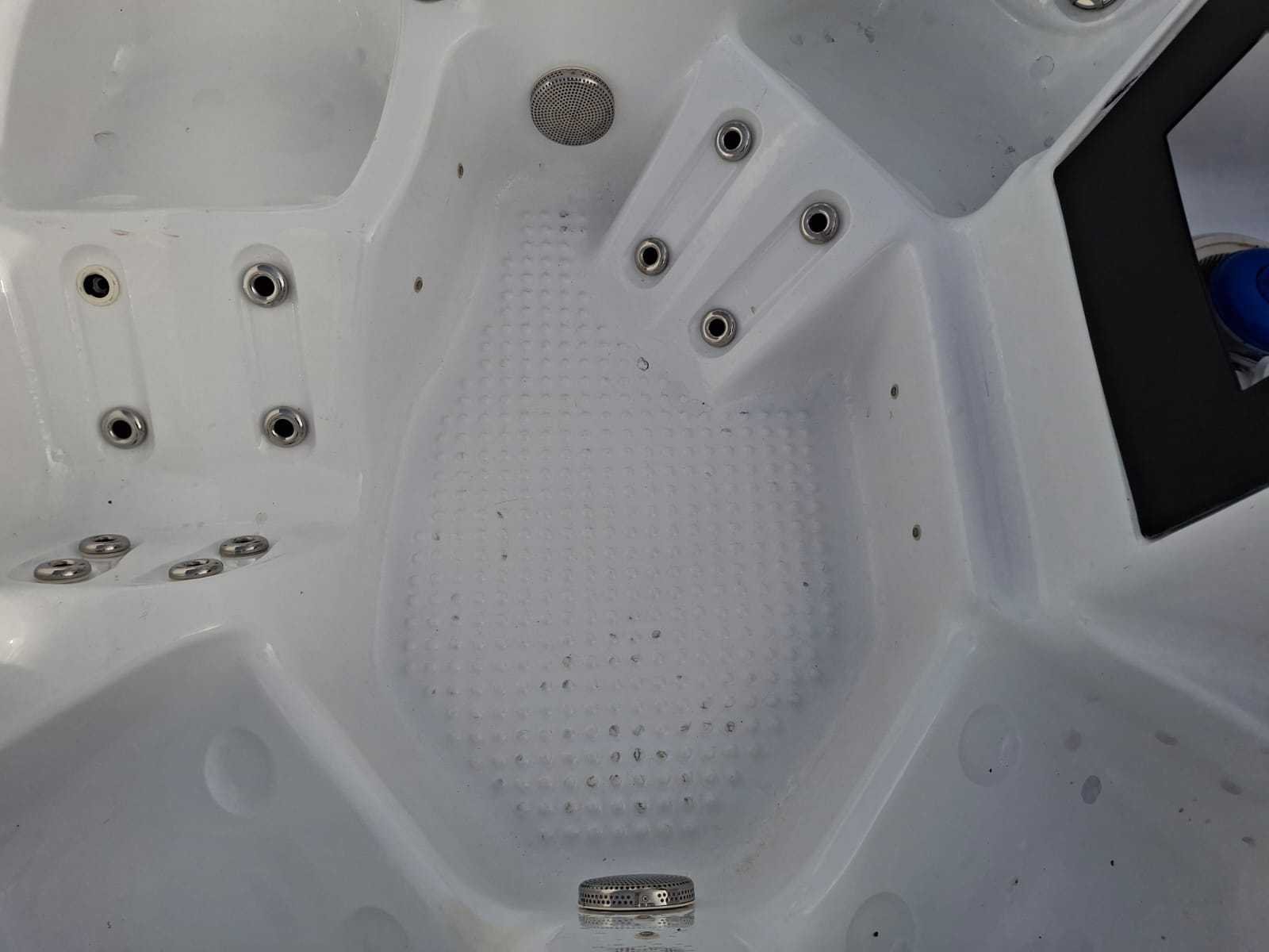Voorzien van kunststof omkasting; automatisch filtersysteem; 1 ligplaats; 3 zitplaatsen; waterval; Niet getest op functioneren (Marge, geen BTW) Model: 4 persoons Verlichting: Ja Jets: 36 Aantal personen: 4 Lengte: 210cm Breedte: 210cm Hoogte: 97cm