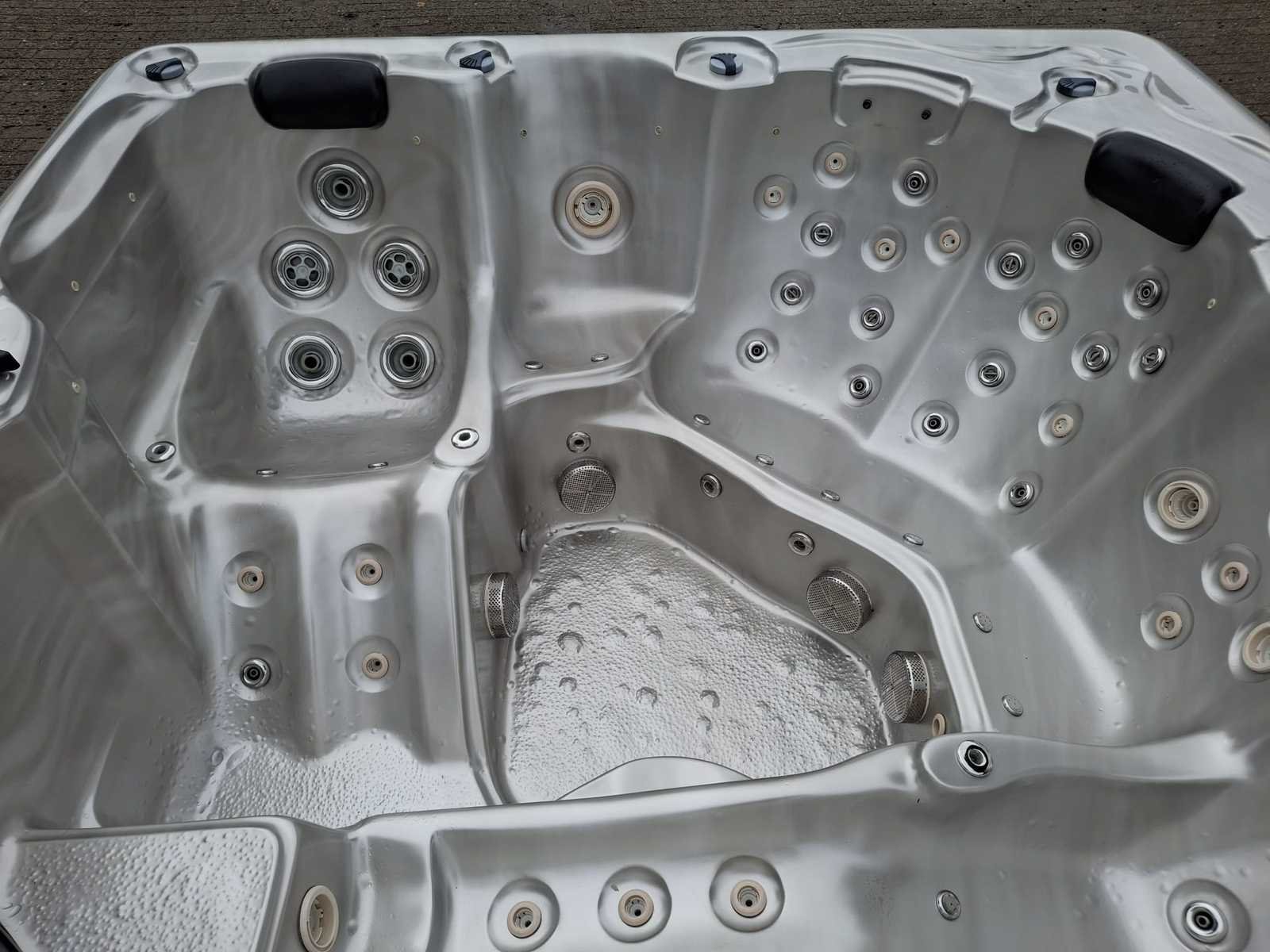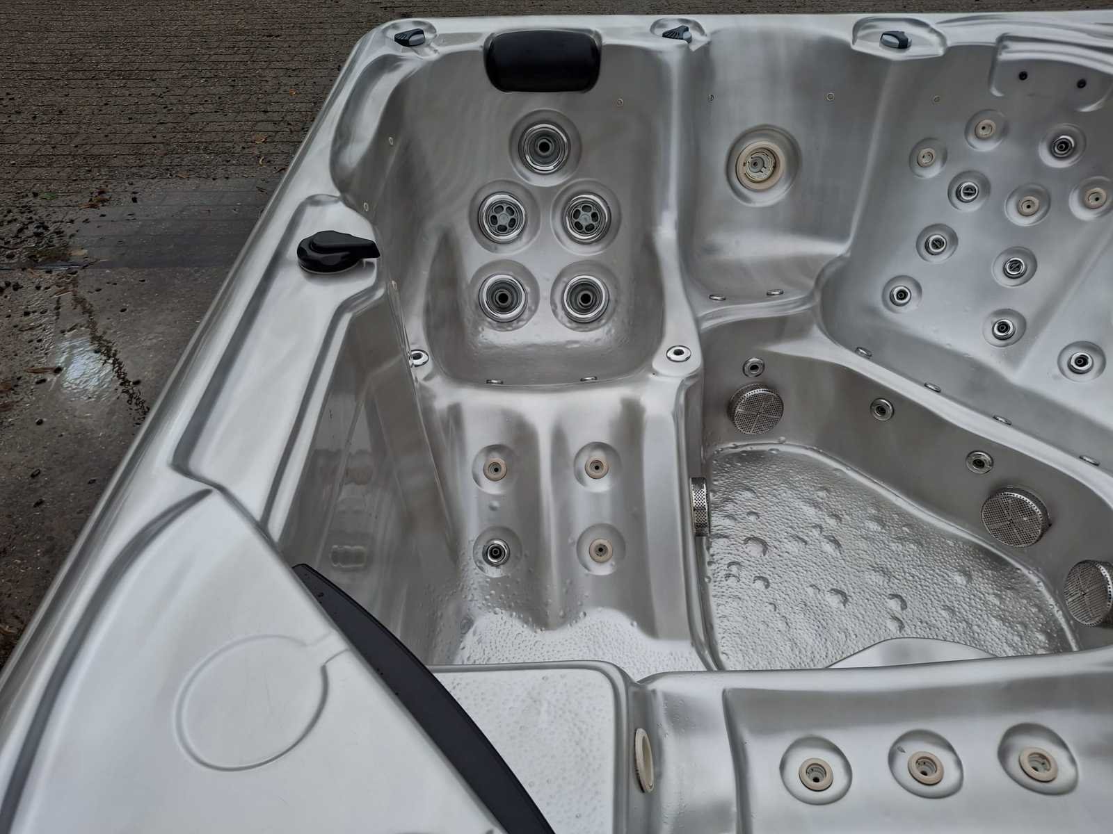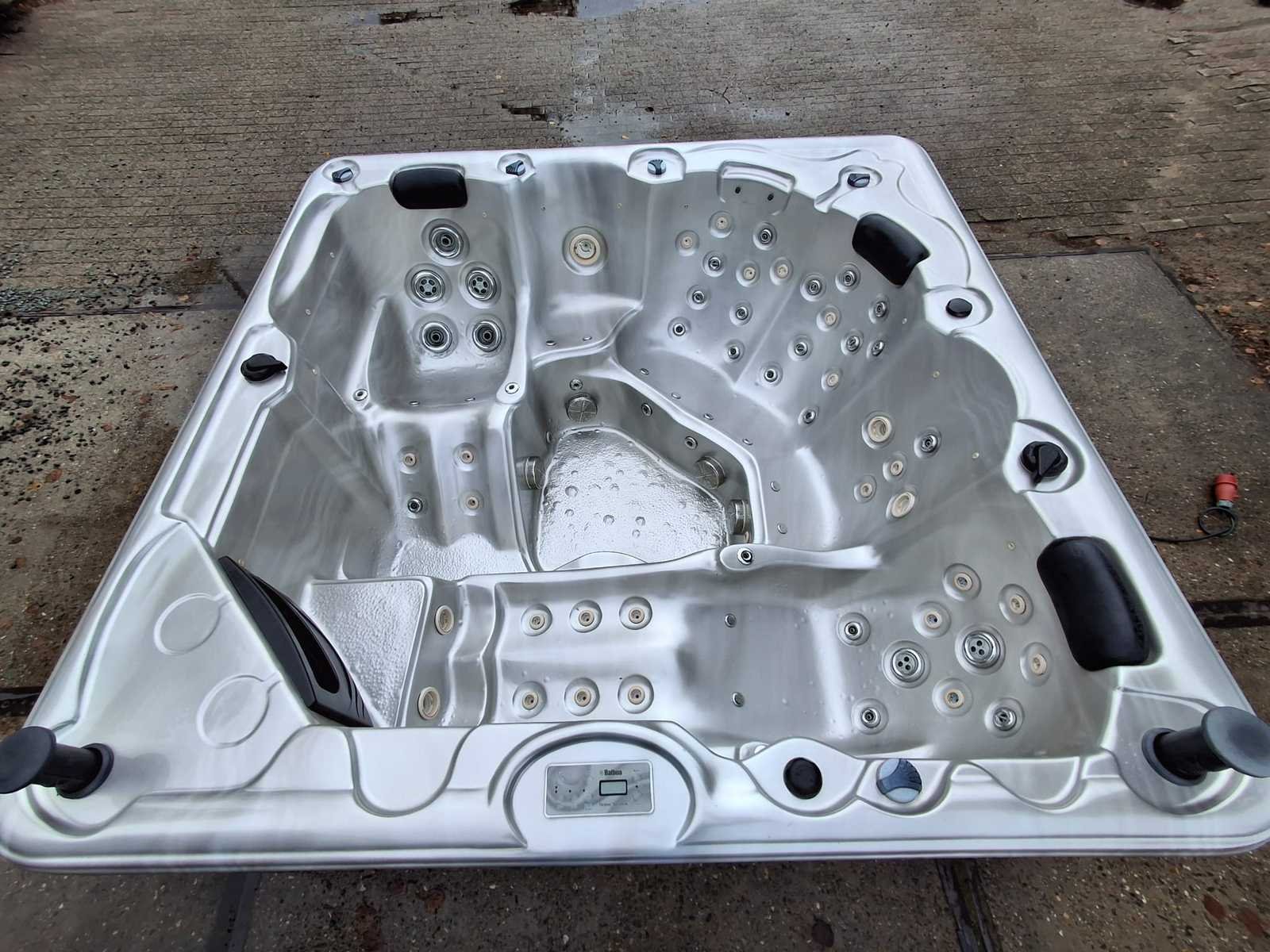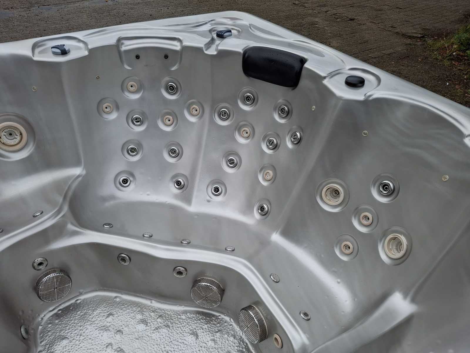 Voorzien van speakers; 4 zitplaatsen en 2 liplastsen; automatisch filtersysteem; kunststof omkasting; waterval; Niet getest op functioneren (Marge, geen BTW) Merk: Balboa Model: 6 persoons Verlichting: Ja Aantal personen: 6 Lengte: 225cm Breedte: 225cm Hoogte: 85cm