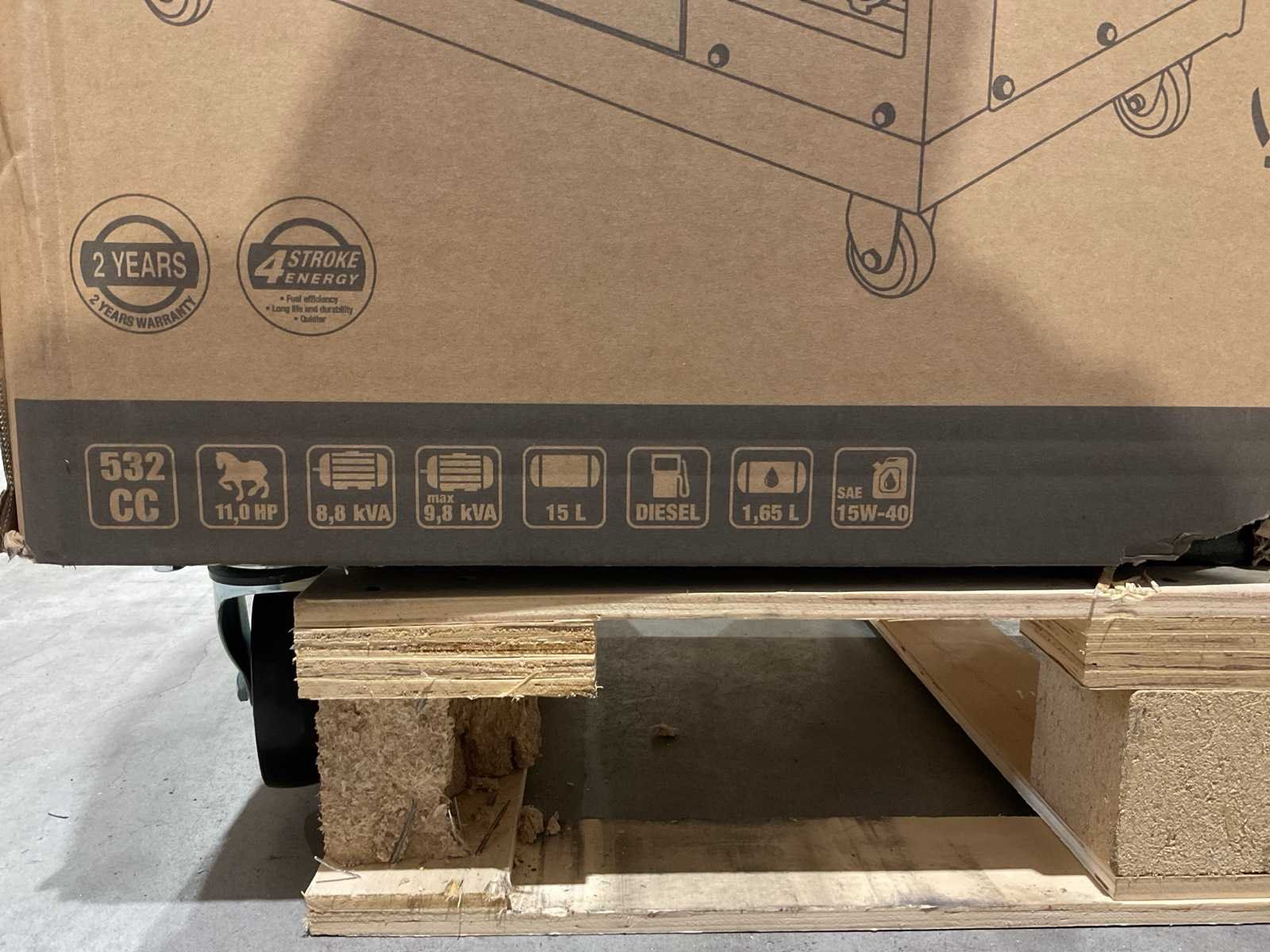 Voorzien van Dieselmotor; Cilinderinhoud: 532 CC; Motorvermogen: 11,0 HP; Uitgangsvermogen (nominaal): Enkel fase: 7,9 kVA, Drie fase: 8,8 kVA; Maximaal uitgangsvermogen: Enkel fase: 8,8 kVA, Drie fase: 9,8 kVA, Brandstoftank: 15 liter; Oliecapaciteit: 1,65 liter; Elektrisch (Electric Start); Display: LED; Geluidsniveau: 72 dB(A) @ 7 meter; Bedrijfstijd bij 75% belasting: 7,0 – 7,5 uur; AC-uitgangen: 1x 230V / 32A (3-pins), 1x 400V / 16A (5-pins); Ongebruikt (Transport afmeting; 980x56x860mm; Gewicht 182 kg) Merk: Stahlwerk Type: SW-10KW Bouwjaar: 2025 Capaciteit.: 10kVA Diesel: true Mobiel: true Handboek aanwezig: true Machinegewicht: 170kg Totale afmeting L: 960mm Totale afmeting Breedte: 820mm Totale afmeting Hoogte: 540mm