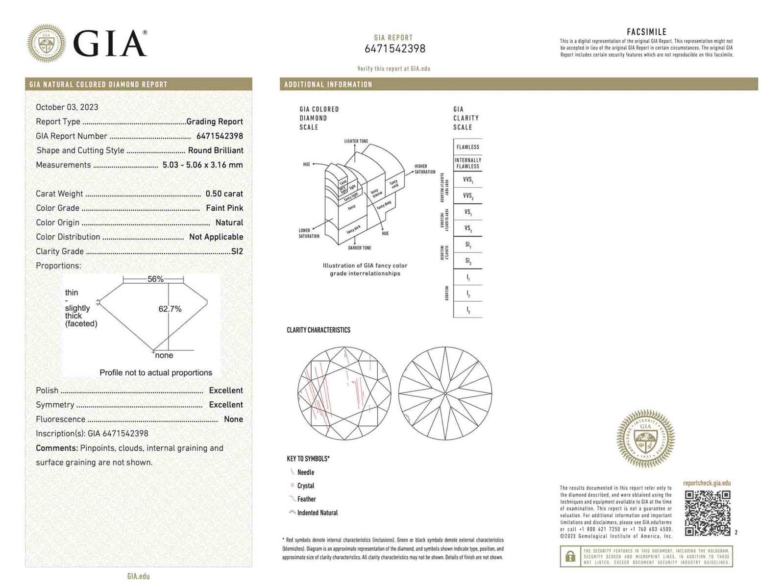 Samenvatting van gegevens Diamant - 0.50 carat echte natuurlijke fancy colour diamant Diamant: Natuurlijk; Aantal: 1 stuk; Slijpvorm: Briljant geslepen; Gewicht (carat): 0.50 carat; Kleur: Faint pink; Zuiverheid: SI2; Certificaat: GIA; Certificaat nummer: 6471542398; Conditie: Nieuw; Verpakking: Edelsteendoos; Toelichting: De kwaliteit is overgenomen van het rapport behorend bij item. De waardebepaling is een beoordeling van een gecertificeerde diamantair, gebaseerd op consumentenprijzen.; Consumentenprijs: € 8.000,- Within 14 days Voornaamste diamant: Natuurlijk Kleur diamant: Faint pink Gewicht diamant: 0.50ct Slijpvorm diamant: Briljant geslepen Zuiverheidsgraad diamant: SI2 Certificaat: GIA