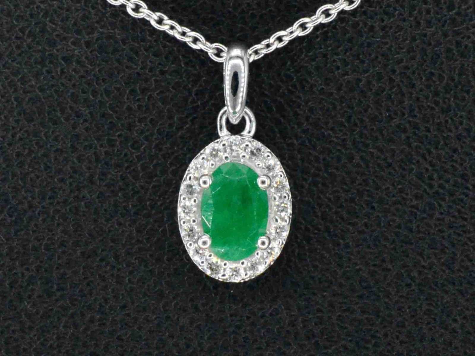 Samenvatting van gegevens Witgouden entourage hanger met diamanten en smaragd Diamant: Natuurlijk; Slijpvorm: Briljant geslepen; Gewicht (carat): 0.12 carat; Kleur: F-G; Zuiverheid: SI; Slijpkwaliteit: Zeer mooi; Edelsteen: smaragd; Slijpvorm: Ovaal; Gewicht (carat): 0.65 carat; Kleur: groen; Juweel: Hanger (excl. ketting); Gewicht: 1 gram; Materiaal: 14k goud (585); Conditie: Nieuw; Verpakking: Luxe sieradendoos; Toelichting: De kwaliteit is overgenomen van het rapport behorend bij item. De waardebepaling is een beoordeling van een gecertificeerde diamantair, gebaseerd op consumentenprijzen.; Consumentenprijs: € 770,- Within 14 days Materiaal: Goud Voornaamste diamant: Natuurlijk Kleur diamant: F-G Gewicht diamant: 0.12ct Slijpvorm diamant: Briljant geslepen Slijpkwaliteit diamant: Zeer mooi Zuiverheidsgraad diamant: SI Edelsteen: smaragd Kleur edelsteen: groen Slijpvorm edelsteen: Ovaal Totaal gewicht: 1g Keurmerk: 585