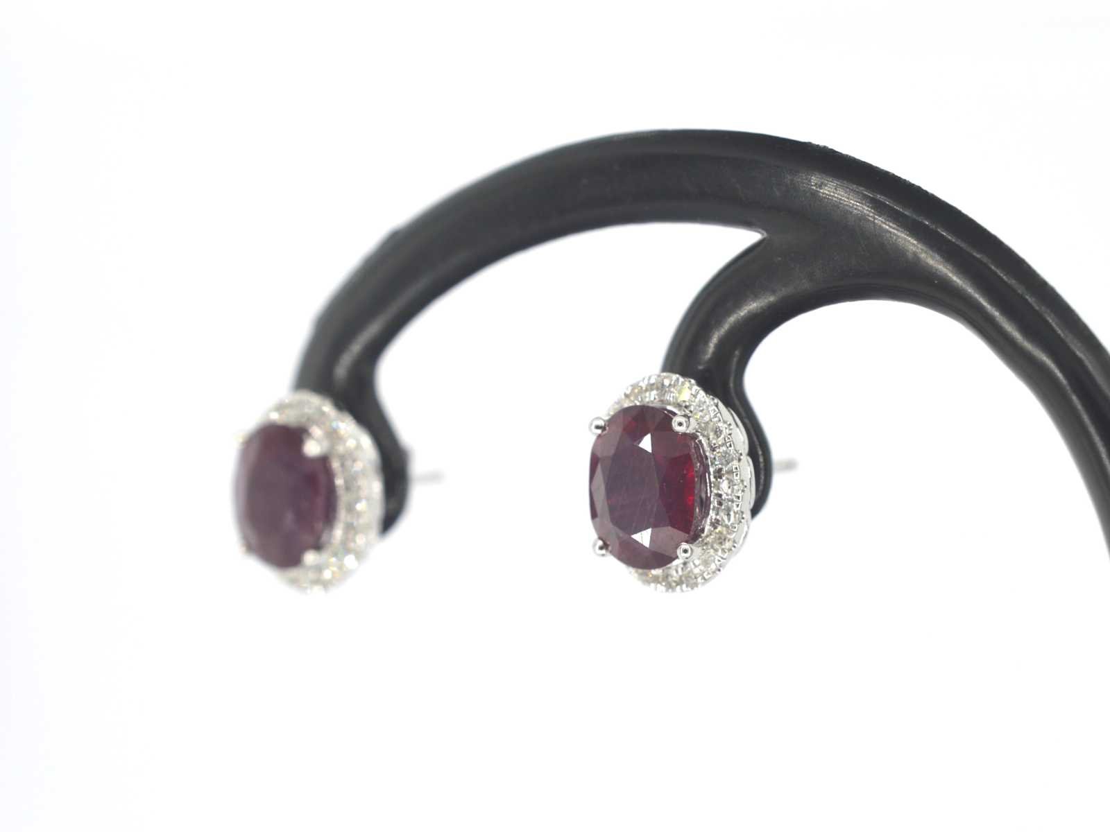Samenvatting van gegevens Witgouden entourage oorbellen met diamanten en robijn Diamant: Natuurlijk; Slijpvorm: Briljant geslepen; Gewicht (carat): 0.40 carat; Kleur: F-G; Zuiverheid: VS; Slijpkwaliteit: Zeer mooi; Edelsteen: Robijn; Aantal: 2 stuks; Slijpvorm: Ovaal; Gewicht (carat): 6.00 carat; Kleur: Intens rood (enhanced); Zuiverheid: Met natuurlijke insluitsels (enhanced); Juweel: Oorbellen; Gewicht: 4 gram; Materiaal: 14 karaat (585); Conditie: Nieuw; Verpakking: Luxe sieradendoos; Toelichting: De kwaliteit is overgenomen van het rapport behorend bij item. De waardebepaling is een beoordeling van een gecertificeerde diamantair, gebaseerd op consumentenprijzen.; Consumentenprijs: € 3.520,- Within 14 days Voornaamste diamant: Natuurlijk Kleur diamant: F-G Gewicht diamant: 0.40ct Slijpvorm diamant: Briljant geslepen Slijpkwaliteit diamant: Zeer mooi Zuiverheidsgraad diamant: VS Edelsteen: Robijn Kleur edelsteen: Intens rood (enhanced) Slijpvorm edelsteen: Ovaal Zuiverheidsgraad edelsteen: Met natuurlijke insluitsels (enhanced) Totaal gewicht: 4g Keurmerk: 585
