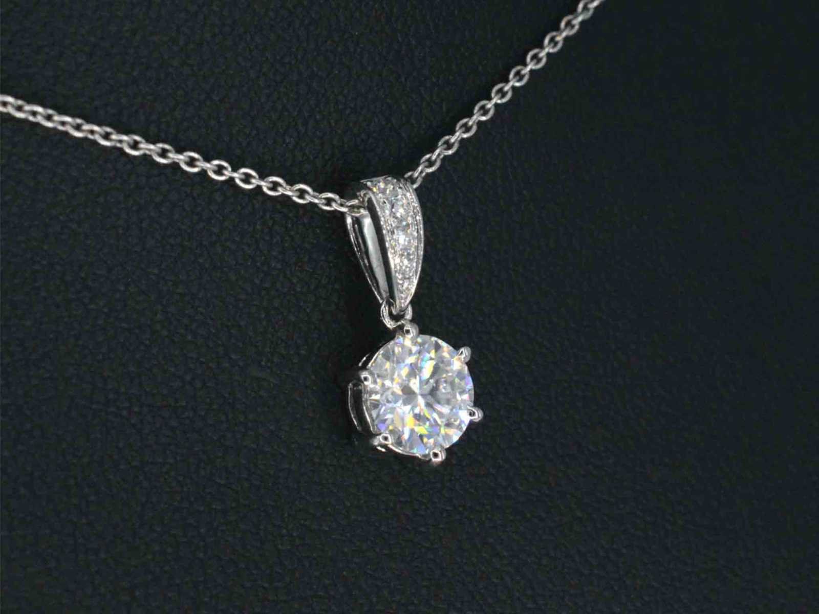 Samenvatting van gegevens Witgouden solitair hanger met een diamant van 1.00 carat Diamant: Natuurlijk; Aantal: 1 stuk; Slijpvorm: Briljant geslepen; Gewicht (carat): 1.00 carat; Kleur: F-G; Zuiverheid: SI; Slijpkwaliteit: Zeer mooi; Diamant (secundair): Kleine diamanten: Natuurlijk; Slijpvorm: Briljant geslepen; Gewicht (carat): 0.10 carat; Kleur: F-G; Zuiverheid: VS; Juweel: Hanger (excl. ketting); Gewicht: 1 gram; Materiaal: 18k goud (750); Conditie: Nieuw; Verpakking: Luxe sieradendoos; Toelichting: De kwaliteit is overgenomen van het rapport behorend bij item. De waardebepaling is een beoordeling van een gecertificeerde diamantair, gebaseerd op consumentenprijzen.; Consumentenprijs: € 12.800,- Within 14 days Materiaal: Goud Voornaamste diamant: Natuurlijk Kleur diamant: F-G Gewicht diamant: 1.00ct Slijpvorm diamant: Briljant geslepen Slijpkwaliteit diamant: Zeer mooi Zuiverheidsgraad diamant: SI Totaal gewicht: 1g Keurmerk: 750