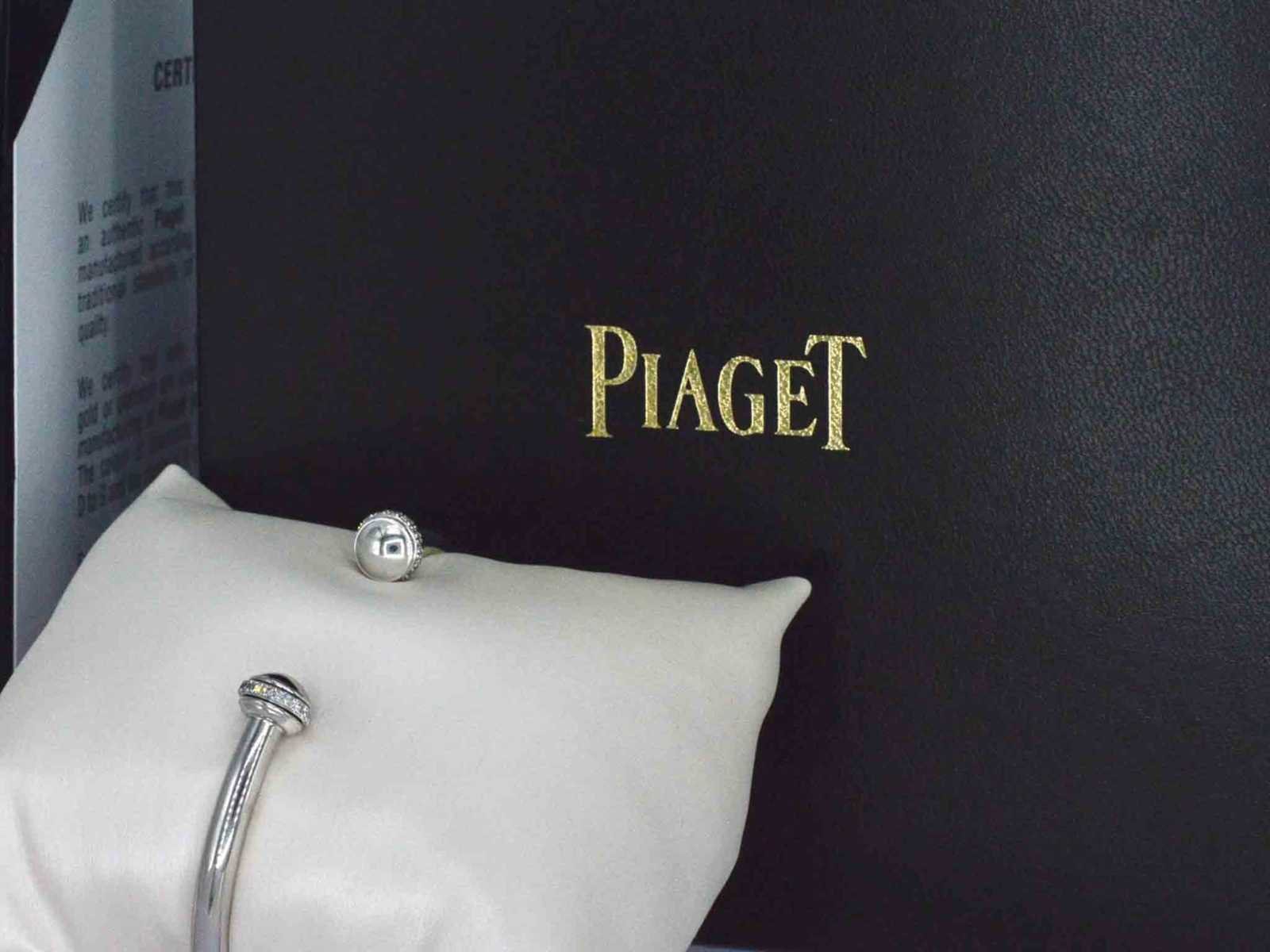 Samenvatting van gegevens Piaget - Possession model open bangle armband met hoge kwaliteit diamanten Diamant: Natuurlijk; Aantal: 30 stuks; Slijpvorm: Briljant geslepen; Gewicht (carat): 0.38 carat; Extra informatie: Originele Piaget diamanten van hoge kwaliteit; Juweel: Armband; Merk: Piaget; Model: Posession; Serienummer: H21XXX; Jaar: 2021; Gewicht: 13.6 gram; Afmetingen/lengte: Maat: 17; Materiaal: 18k goud (750); Conditie: Zo goed als nieuw; Verpakking: Origineel sieradendoos; Toelichting: De kwaliteit is overgenomen van het rapport behorend bij item. De waardebepaling is een beoordeling van een gecertificeerde diamantair, gebaseerd op consumentenprijzen.; Extra informatie: Komt met originele doos en papieren.; Consumentenprijs: € 8.250,- Within 14 days Materiaal: Goud Voornaamste diamant: Natuurlijk Gewicht diamant: 0.38ct Slijpvorm diamant: Briljant geslepen Totaal gewicht: 13.6g Keurmerk: 750