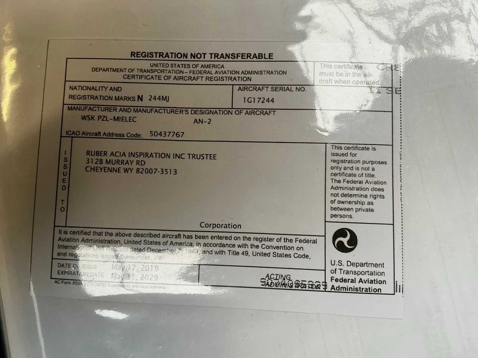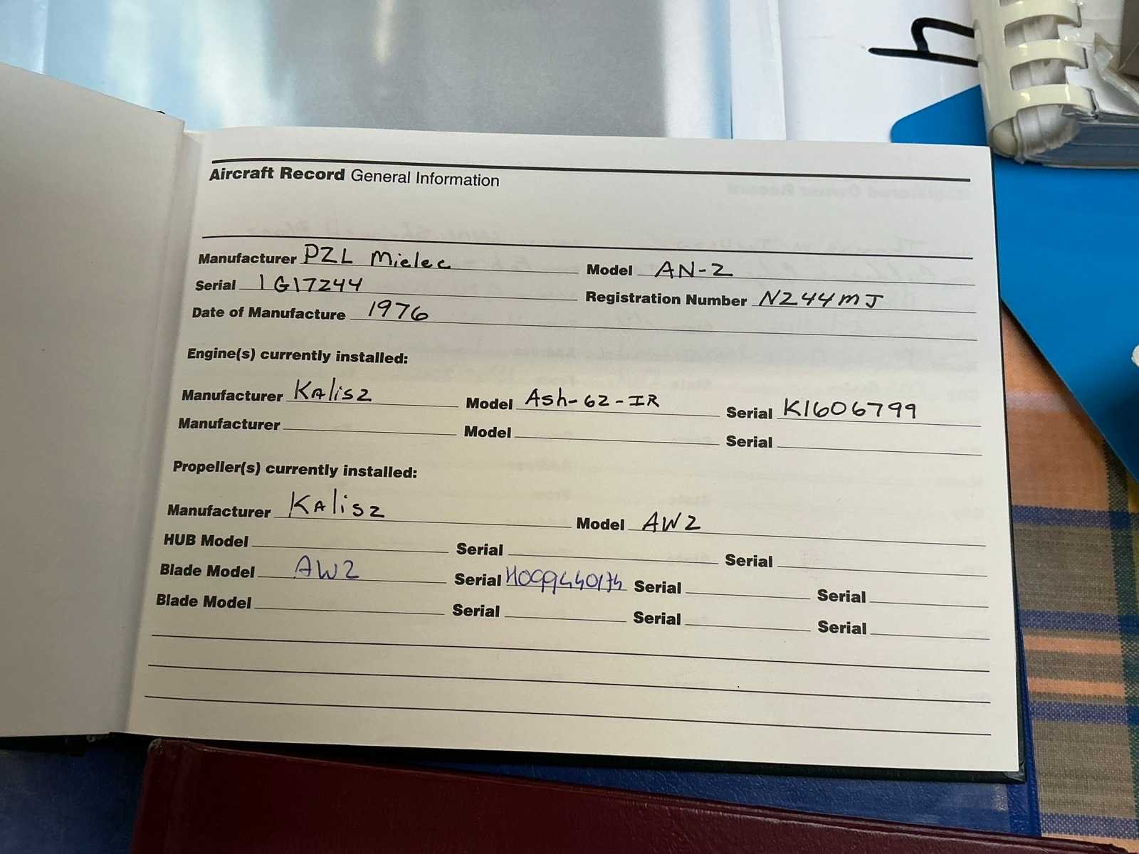 Voorzien van 8 VIP zitplaatsen, uitgerust voor IFR operaties met dubbel uitgevoerde Garmin 430 navigatie apparatuur, NDB, VOR en ILS, GPS nav, , Dit kavel wordt geleverd inclusief diverse toebehoren zoals 1x oliepomp, remschoenen, wielkeggen, externe stroomaansluiting, hoogtesensor, bougies, verlichtingsdelen, olieopvangbakken, etcetera, motor draaiurenstand 153,49 uur, propellor uren 147,44 uur, diverse documentatie ter inzage op de bezichtigingsmogelijkheid, vliegtuig heeft inspectie en onderhoud nodig, certificering is vervallen, hangar huur ter overname is mogelijk Merk: WSK PZL-Mielec Antonov Afgelezen urenstand: 8129hr Aantal passagiers: 8 Aantal zitplaatsen (bemanning): 2 Type motor: Kalisz ASH-62-IR, 9 cilinder radiaalmotor 1000pk Registratie nummer: N244MJ Serienummer: 1G172-44 Bouwjaar: 1976 Type: AN2R