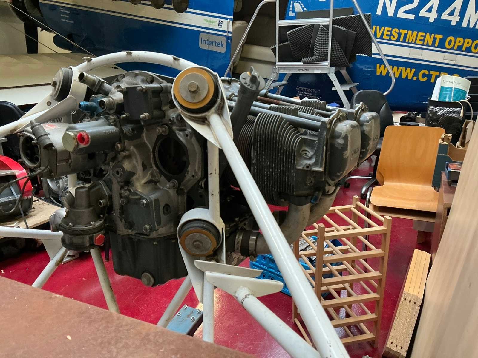 4 cilinder boxermotor, schoolmotor, op en inclusief mobiele bok, afmeting totaal circa 2200x1000x1500mm. Merk: Lycoming