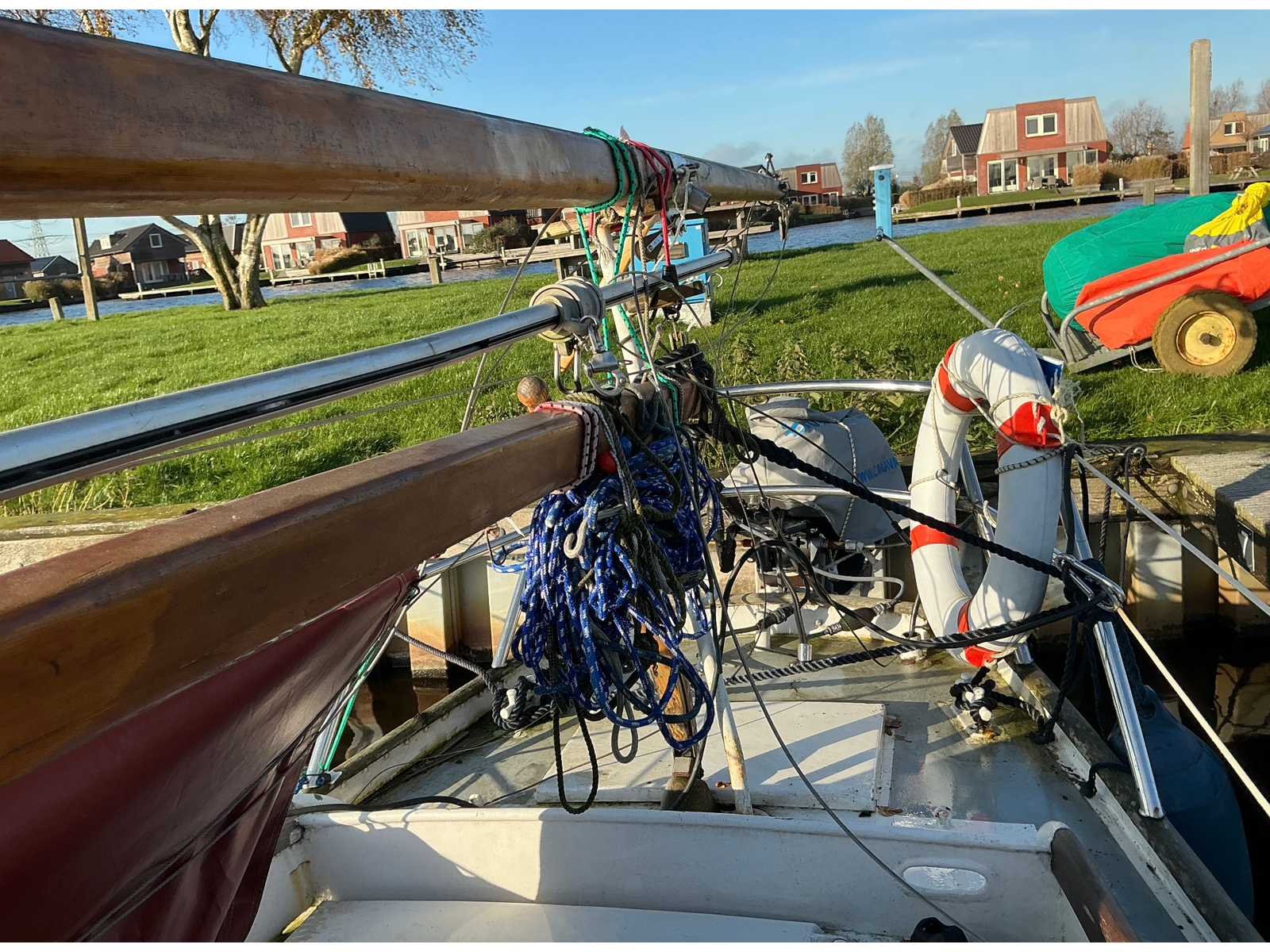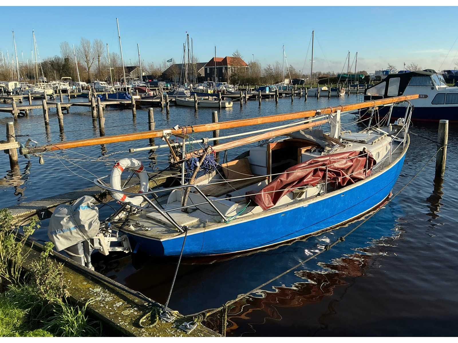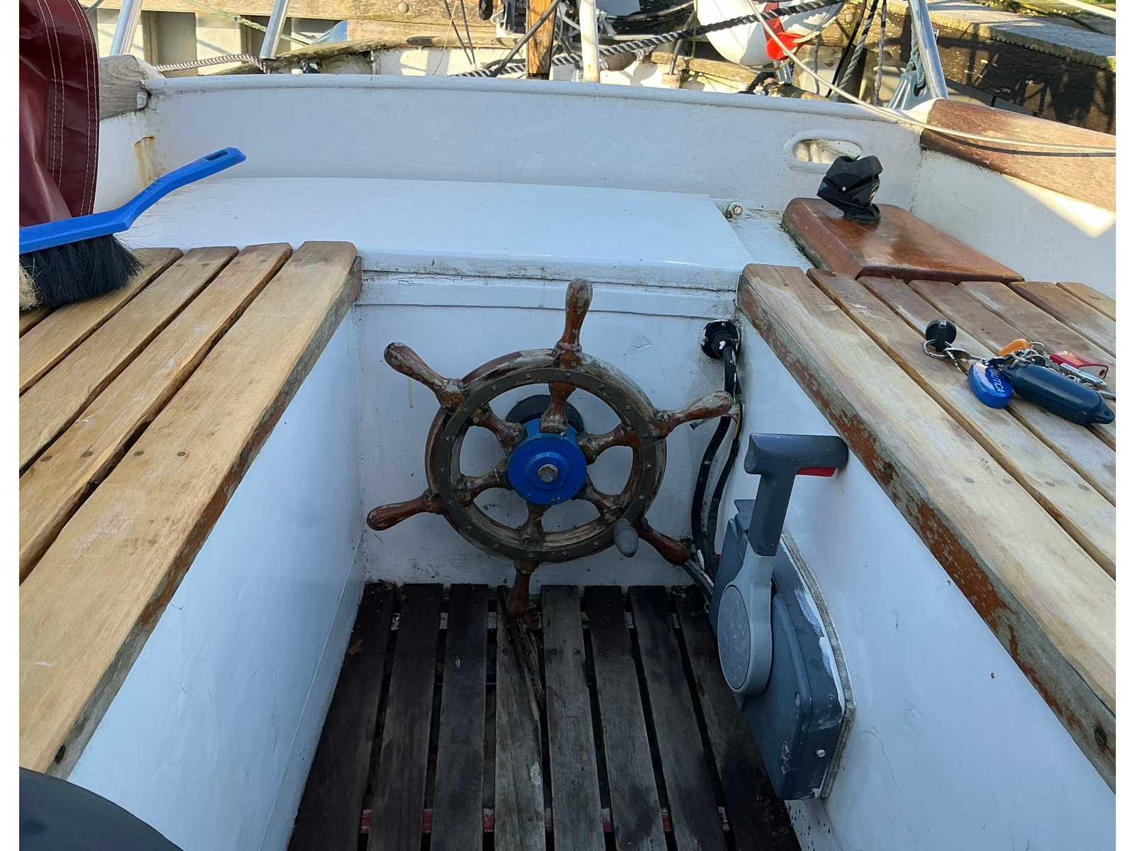 Klassiek zeiljacht BJ 1957, L 7,80m B 1.40 m diepgang 80 cm, masthoogte 12,15 m, 8 pk 4 takt elektrisch startend Yamaha BB motor , op afstand bestuurbaar gemaakt vanuit de kuip met houten stuurwiel en startunit met bediening vooruit/achteruit en gashandel. De Schavuit heeft roodbruine buiskap, huik en klassieke roodbruine zeilen met grootzeil, Genua, stormfok en extra rolmechanisme fok. Alle zeilen en tuigage vanuit de kuip te bedienen. Zonnecel recent op de kajuit geplaatst voor het kunnen opladen van de twee batterijen. 220 volt wal aansluiting met actieve zekering box en druppellader voor de batterijen. Nieuwe waterpomp geplaatst voor pantry. 2 pits cardanisch opgehangen gasstel. Chemisch toilet. Zwemtrap. Bedrading voorbewerkt voor plaatsen navigatie nachtverlichting. Dieptelog en snelheidslog in onderwaterschip geïnstalleerd. Nieuwe extra dikke slaap matrassen voor vier slaapplaatsen. Tevens is er een vaste ligplaats in Akkrum provincie Friesland a 750 euro voor seizoen 2026 ter overname beschikbaar en is tevens jaarlijks winterstalling mogelijk. Type: “Schavuit” Werf: Tusken de Marren Breedte: 140cm Diepgang: 0.8m Doorvaarthoogte: 12.15m Bouwjaar: 1957 Rompmateriaal: Staal Aantal hutten: 1 Aantal slaapplaatsen: 4 Aantal motoren: 1 Type motor: Yamaha BB 4takt Vermogen (pk): 8 Brandstof: Benzine Ligplaats lokatie: Akrum Ligplaats inclusief: true Lengte: 780cm