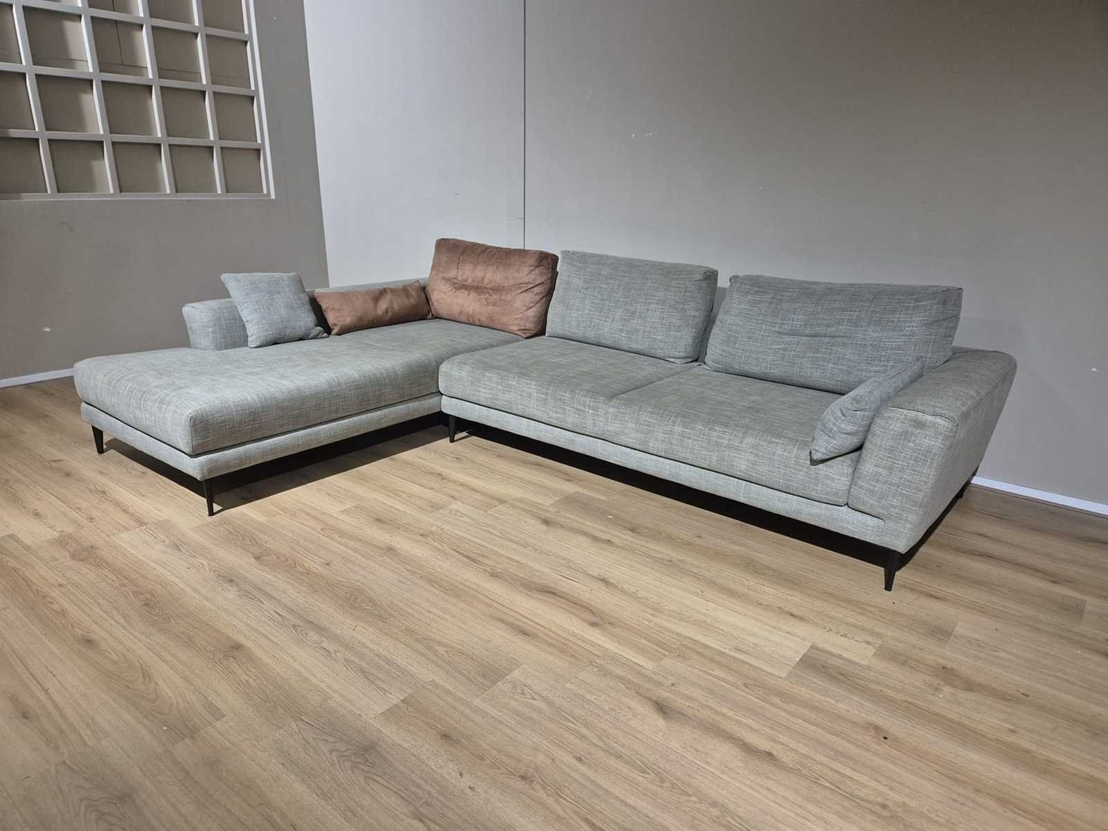 Merk: Montel Model: Hampton Product type: Hoekbank Kleur: Grijs Gewicht: 40kg Lengte: 315cm Breedte: 215cm Hoogte: 80cm Zithoogte: 40cm Diepte: 58cm Materiaal: Stof