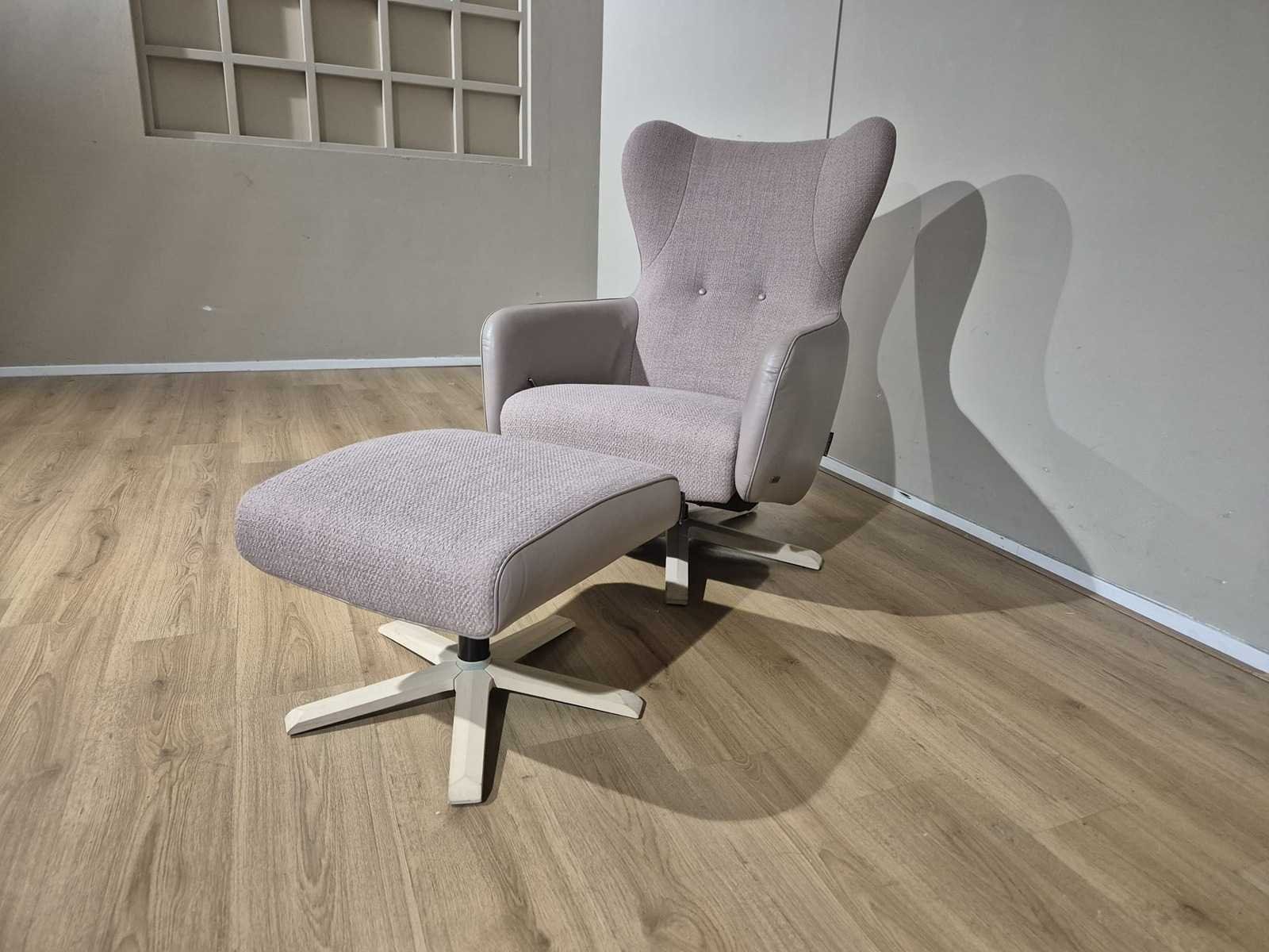 Inclusief Hocker Merk: Prominent Model: Ashley Product type: Verstelbare Relaxfauteuil Kleur: Roze - Taupe Gewicht: 50kg Lengte: 73cm Breedte: 90cm Hoogte: 96cm Zithoogte: 41cm Materiaal: Stof - Leer
