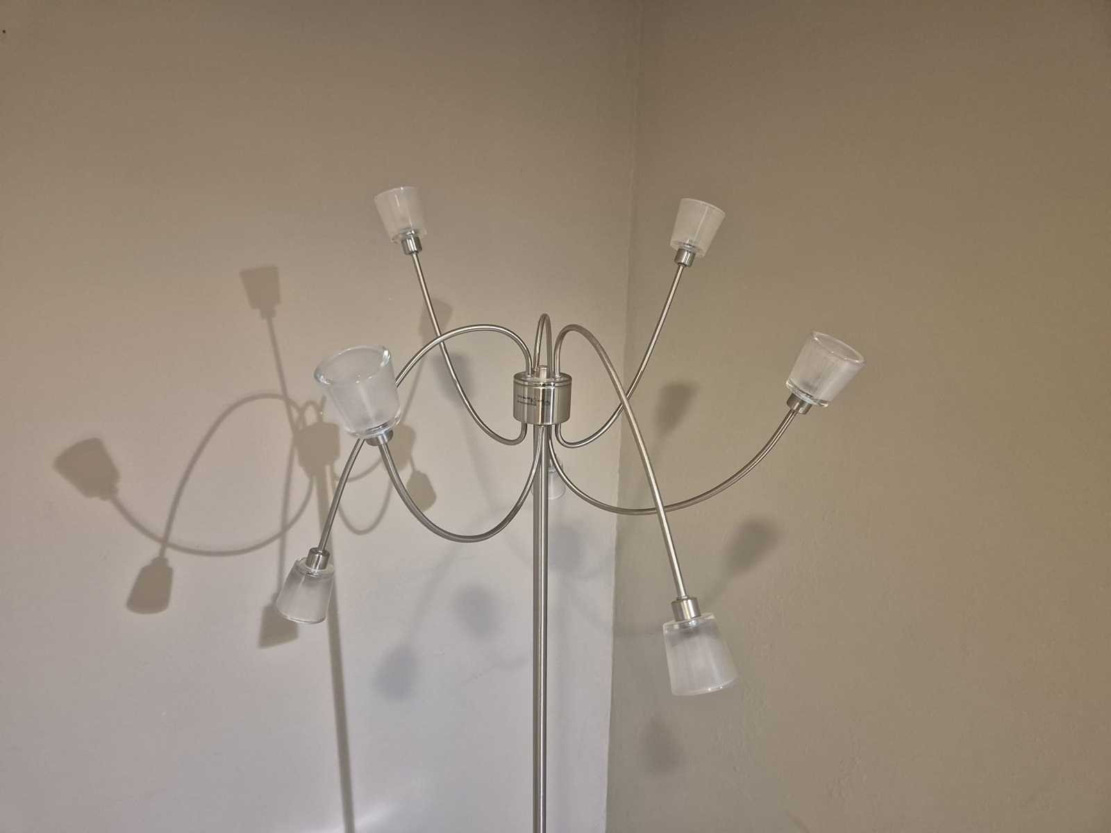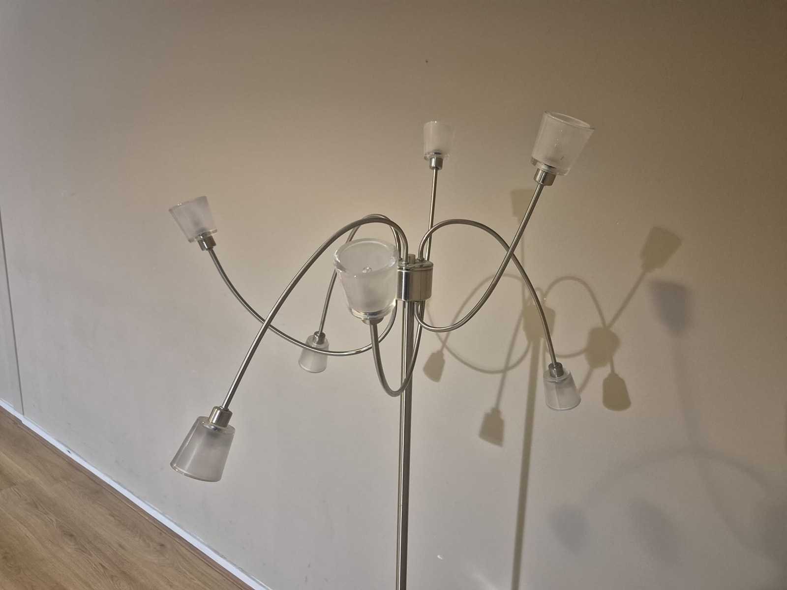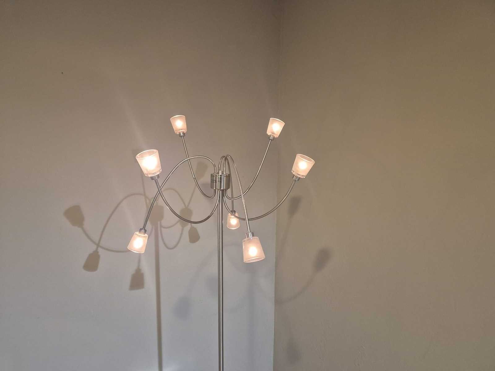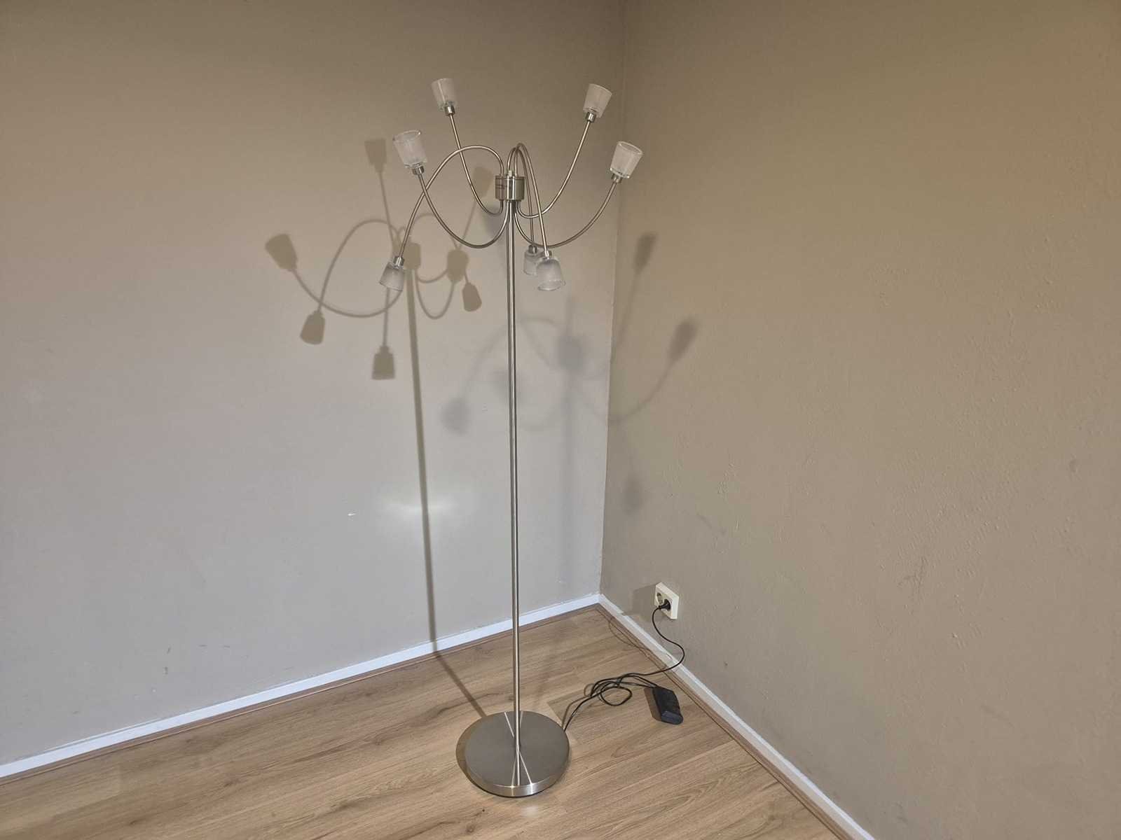 Merk: Moderne Model: Design Product type: Vloerlamp Met lichtbron: true Dimbaar: true Kleur: Zilver Gewicht: 10kg Lengte: 55cm Breedte: 55cm Hoogte: 165cm Materiaal: Metaal