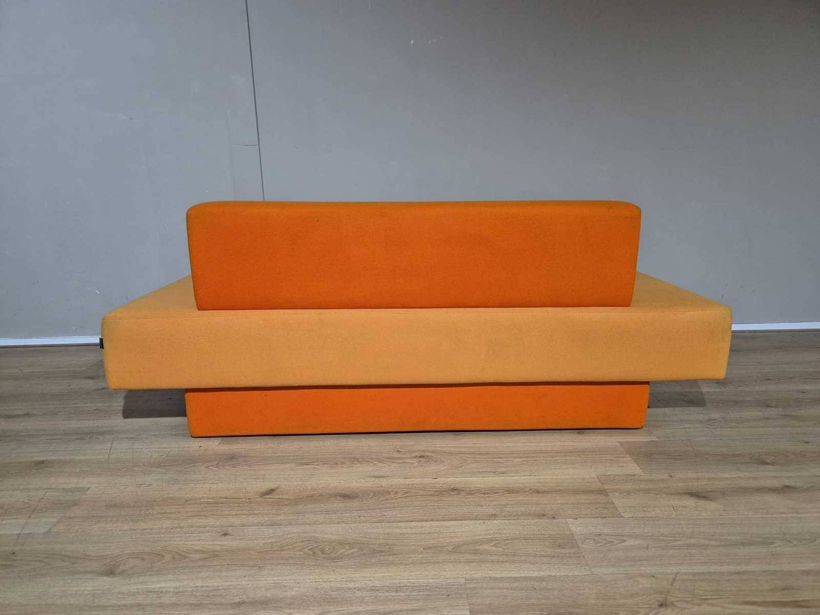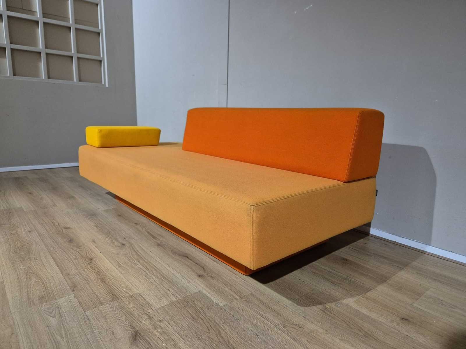 Merk: Lensvelt Model: Glyder Product type: Atelier van Lieshout Bank Kleur: Oranje - Geel Gewicht: 100kg Lengte: 190cm Breedte: 90cm Hoogte: 73cm Zithoogte: 42cm Diepte: 54cm Materiaal: Stof