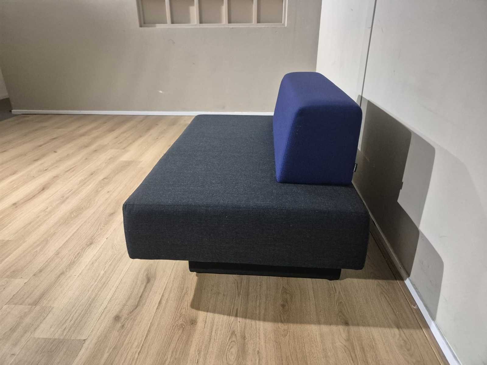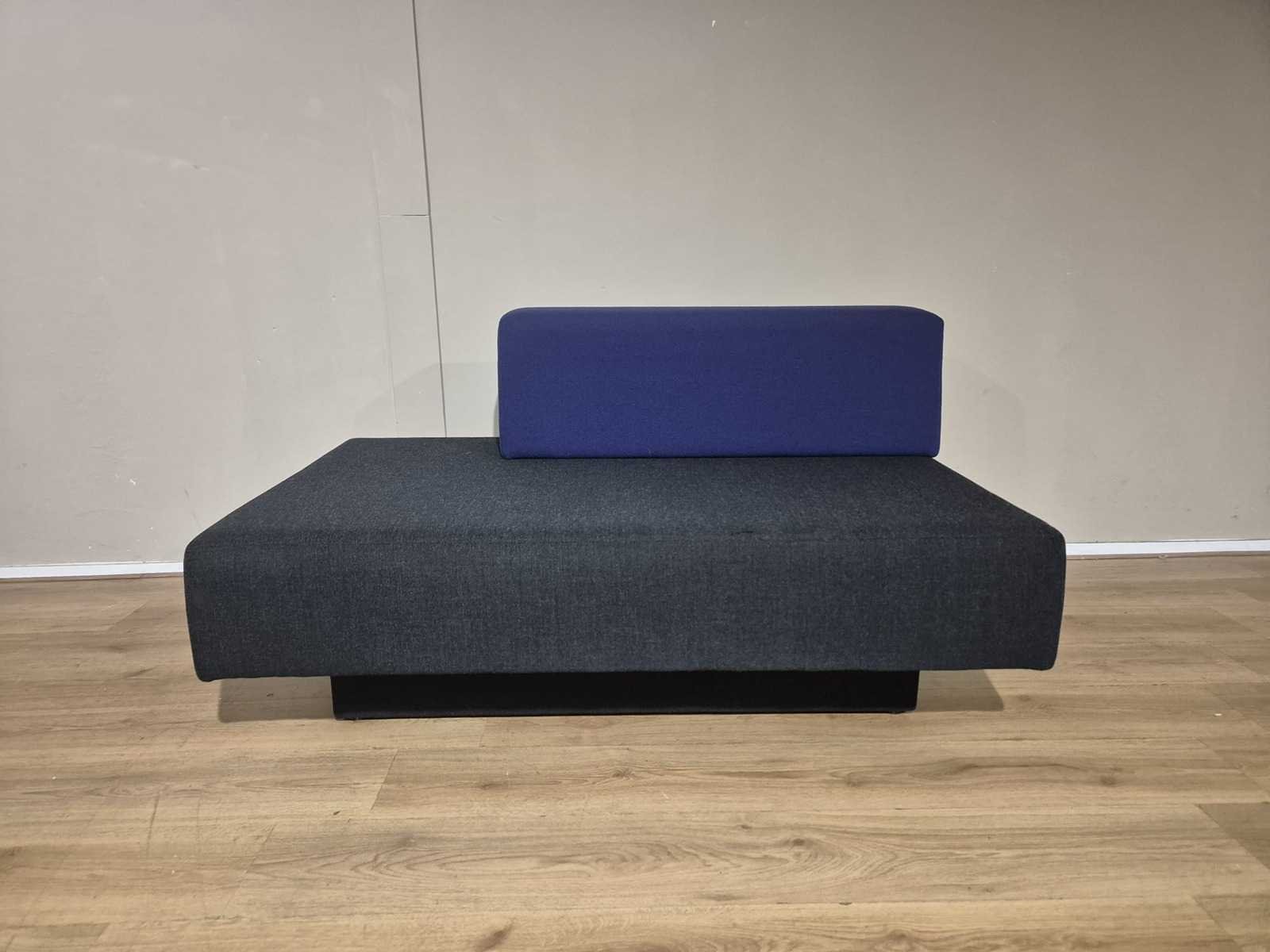 Merk: Lensvelt Model: Glyder Product type: Atelier van Lieshout Bank Kleur: Blauw Gewicht: 100kg Lengte: 135cm Breedte: 90cm Hoogte: 73cm Zithoogte: 42cm Diepte: 54cm Materiaal: Stof