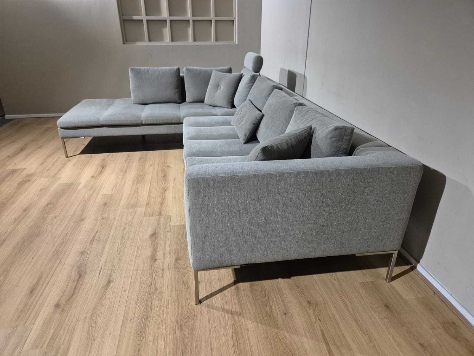 Merk: Montel Model: Tristan Product type: Hoekbank Kleur: Grijs Gewicht: 40kg Lengte: 320cm Breedte: 230cm Hoogte: 75cm Zithoogte: 40cm Diepte: 58cm Materiaal: Stof