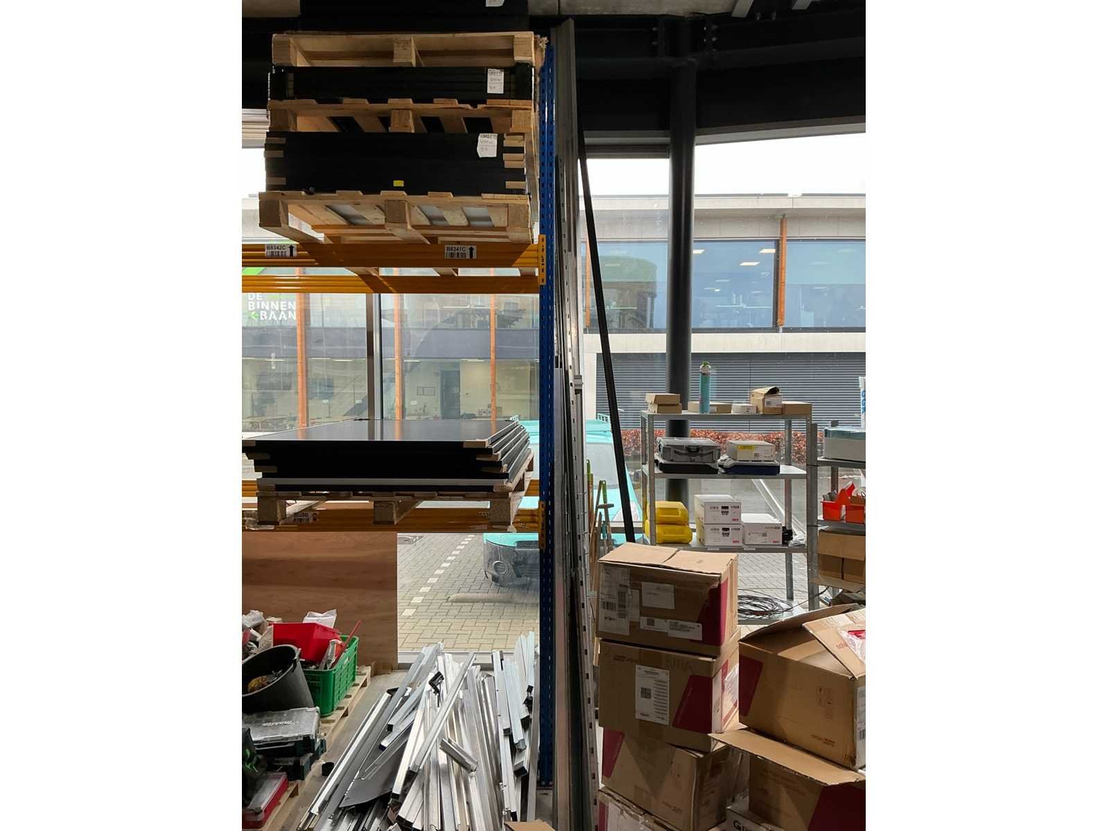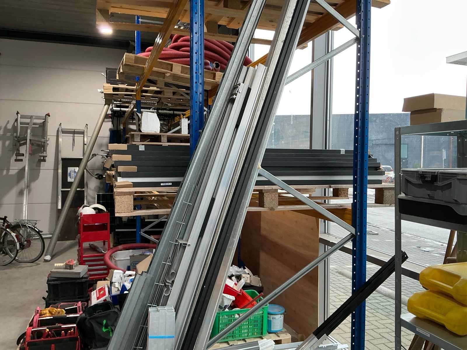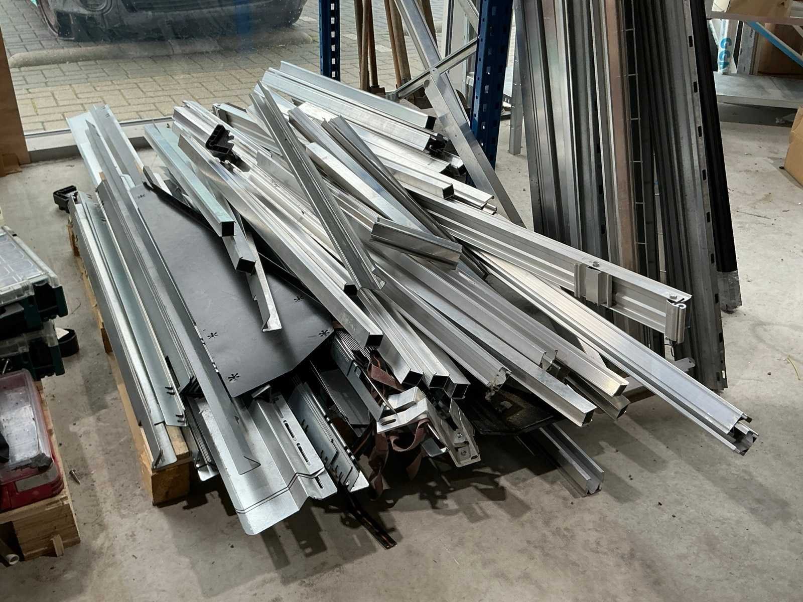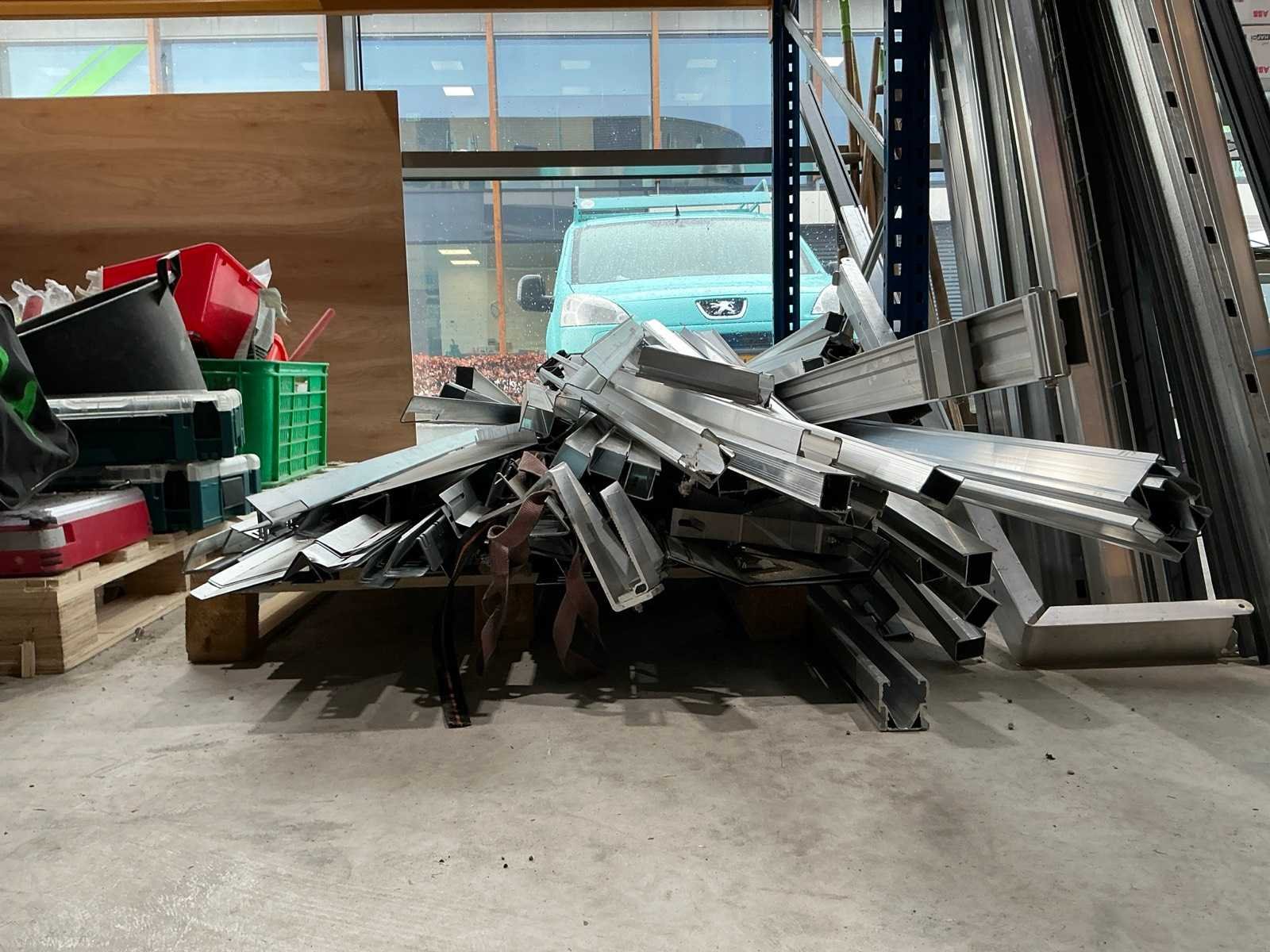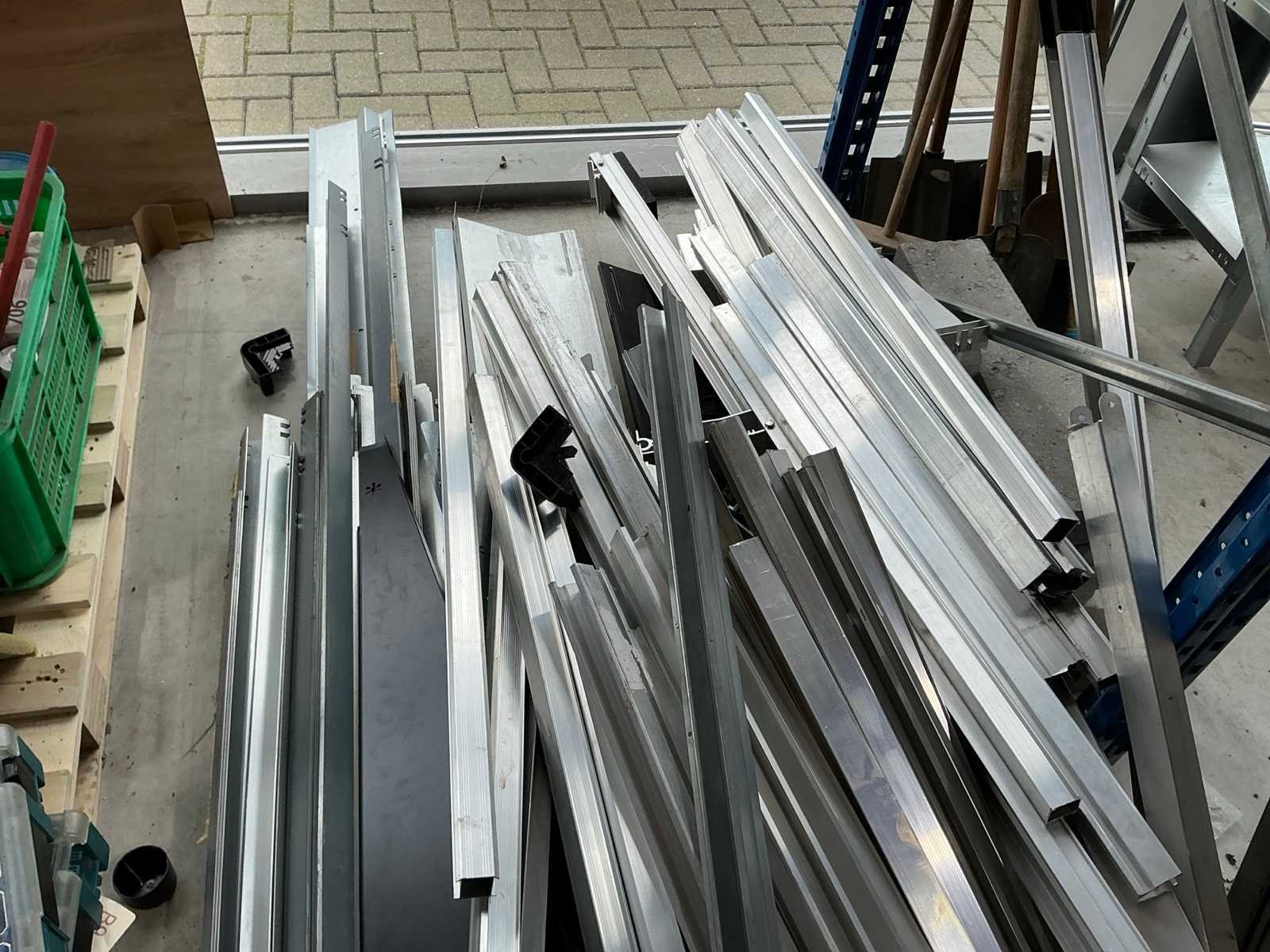 Bestaande uit verschillende profielen met diverse maten tot 5,5m lang. Er is geen heftruck aanwezig.