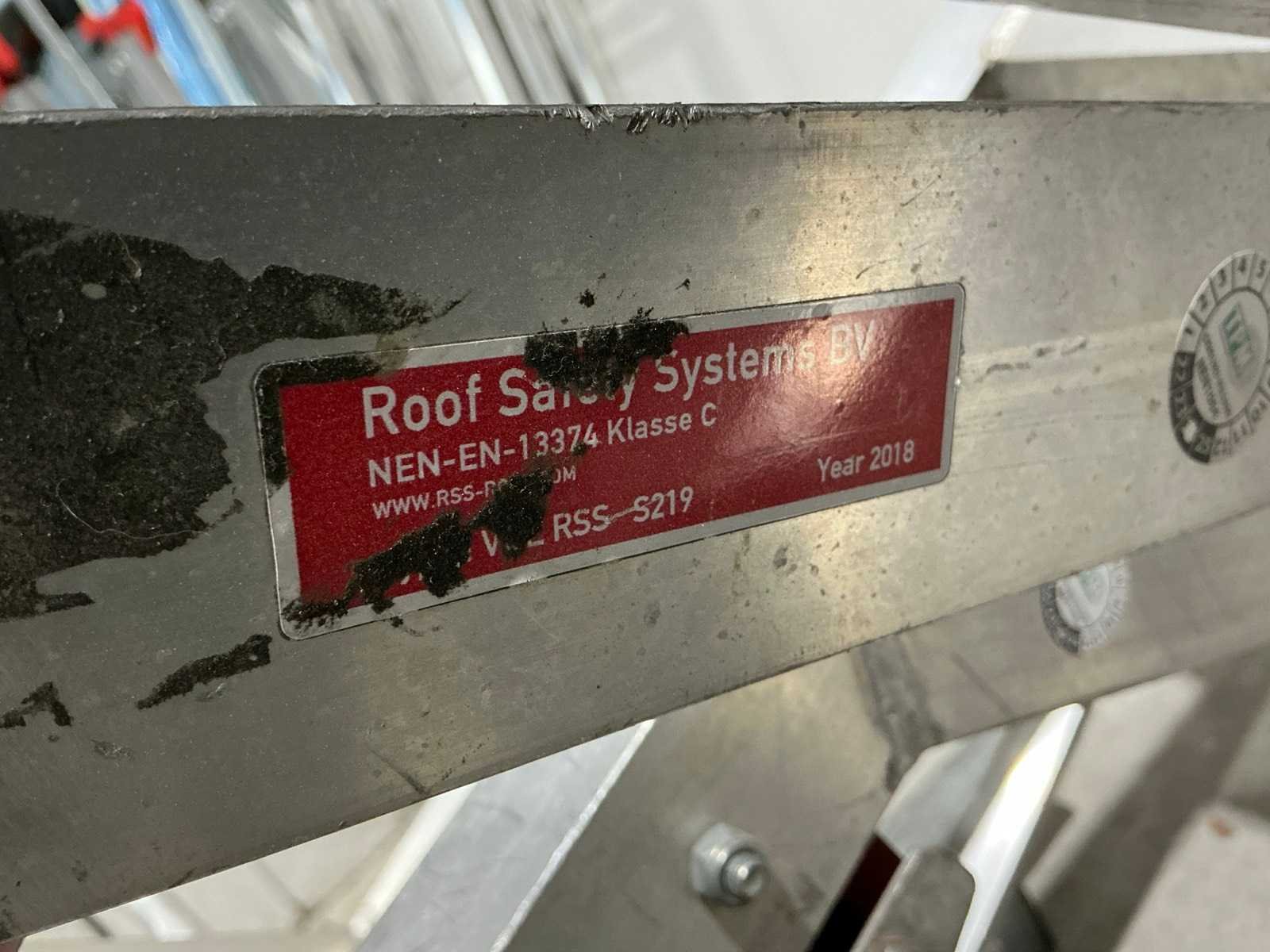 Bestaande uit 2 leuningen / hekken van 190cm, 2 Pelgrim AT 060 anchor beams en 3 RSS VDL RSS staanders. Er is geen heftruck aanwezig.