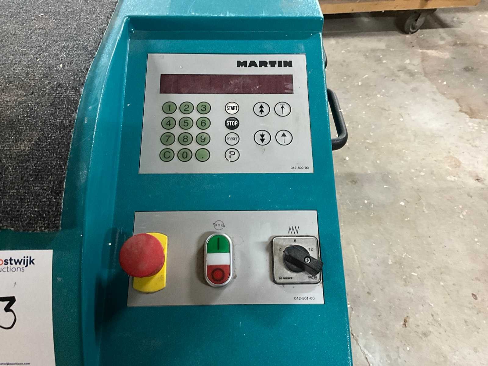 Voorzien van 2 snelheden Merk: Martin Type: T45 Bouwjaar: 2016 Serienummer: 543088 Werkbreedte: 630mm Digitale uitlezing: true Aansluiting: 400V Afmeting l: 1280mm Afmeting b: 1250mm Afmeting h: 1230mm