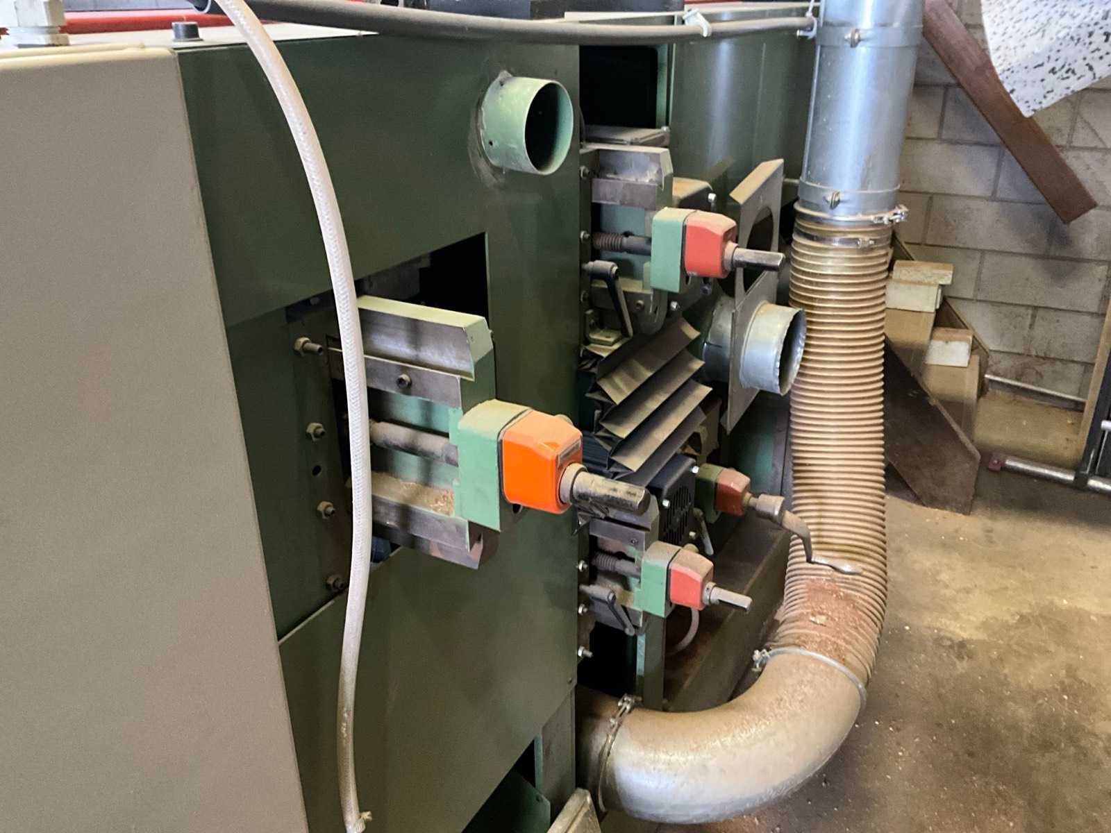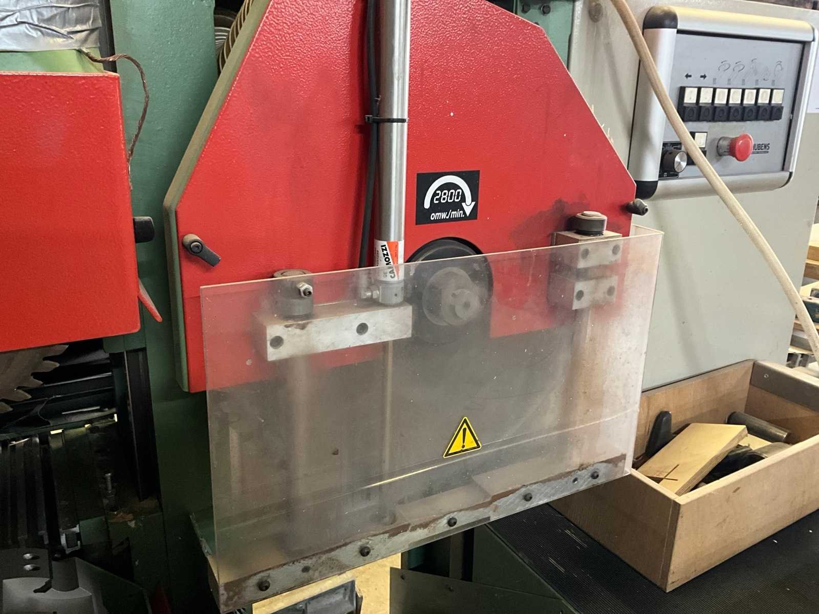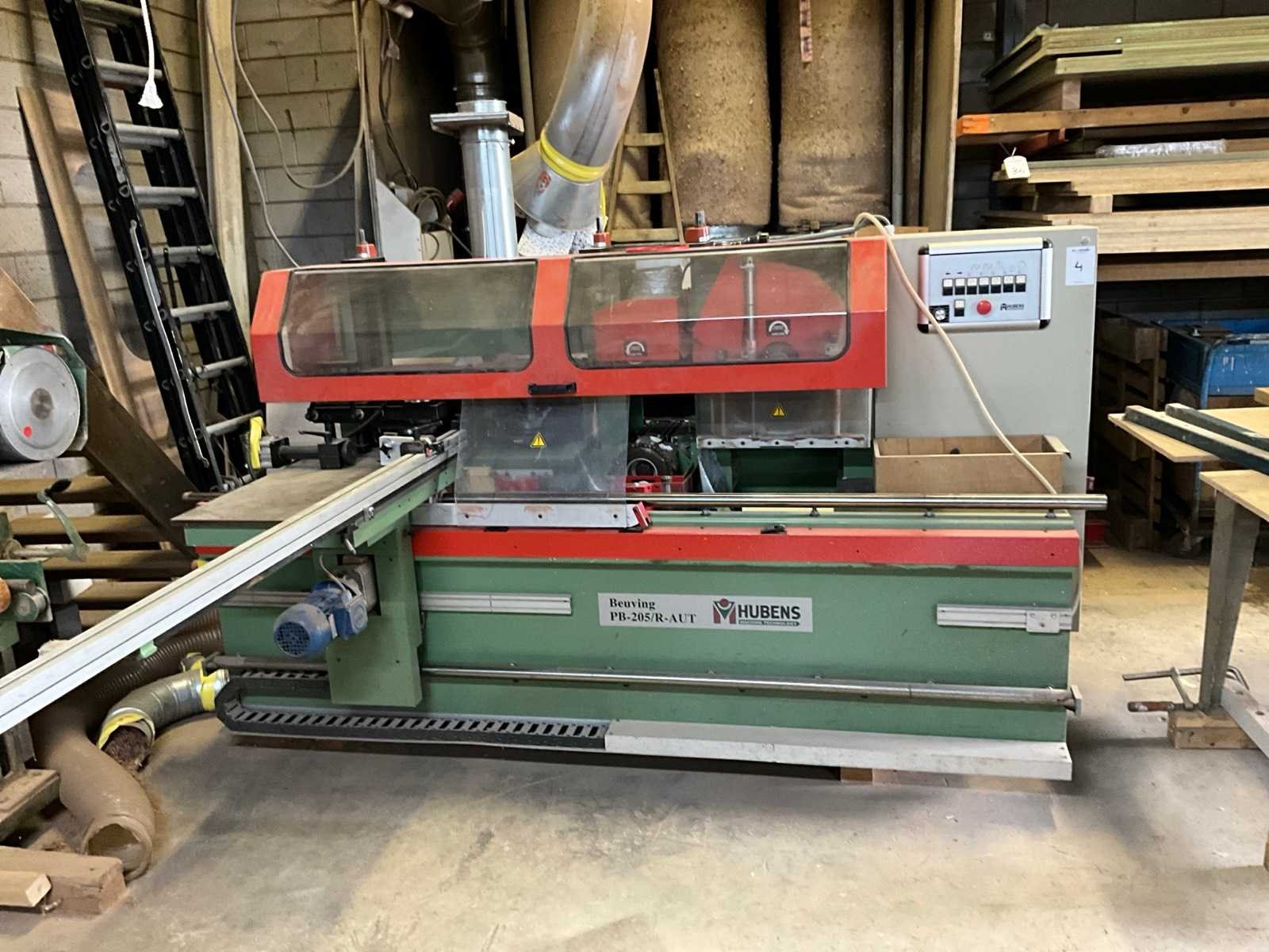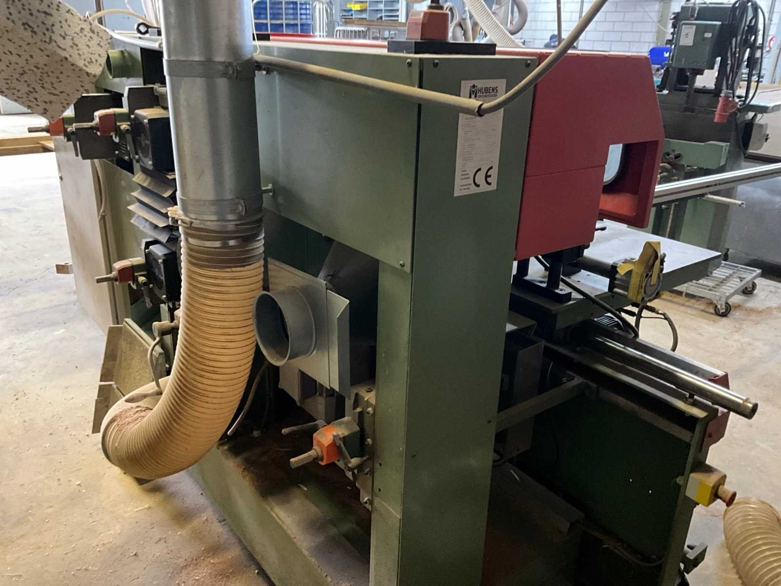 Voorzien van 2 pennenkoppen Ø 200 mm, as Ø 40 mm; 2 verticale frezen Ø 300 mm; 1 zaagblad Ø 460 mm, max zaaghoogte 160 mm; opspantafel 50x80 cm; zonder afzuiging Merk: Hubens Type: PB-205/R-AUT Bouwjaar: 2001 Serienummer: 0680092001 Aantal assen: 5 Aantal freesassen: 2 Freesas Ø: 40mm Aantal zaagassen: 1 Zaagblad Ø: 450mm Materiaalklemmen: true Aansluiting: 400V Afmeting l: 3200mm Afmeting b: 1500mm Afmeting h: 1650mm