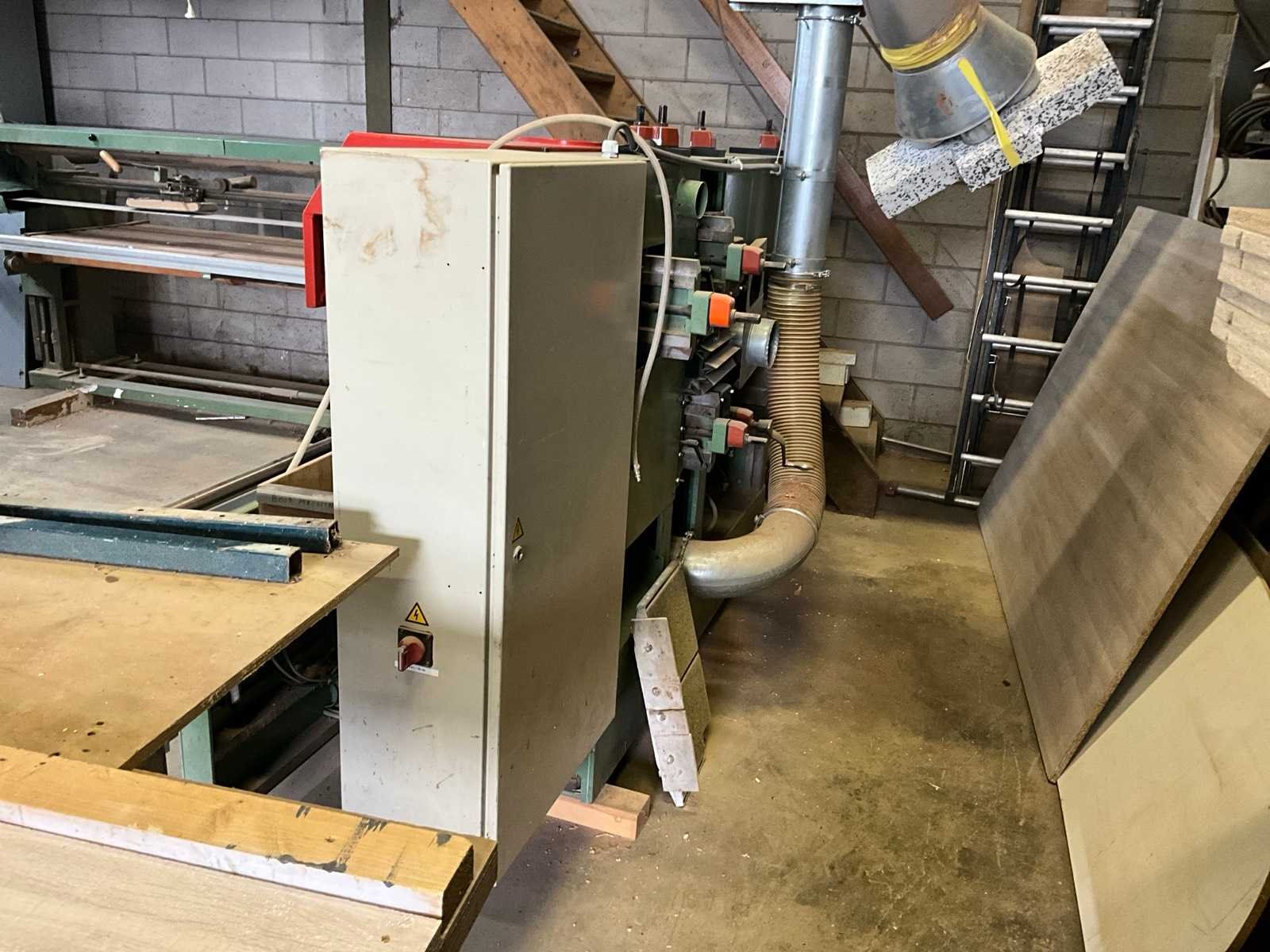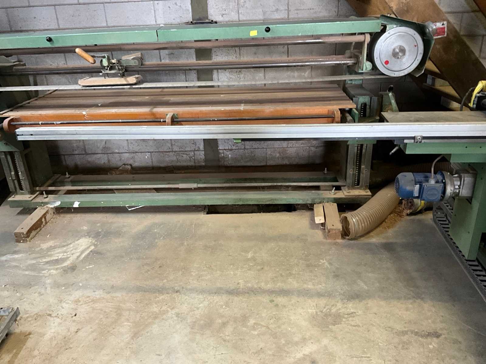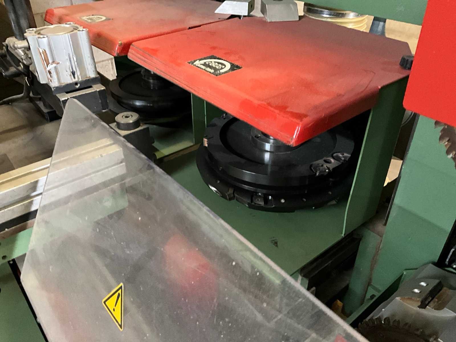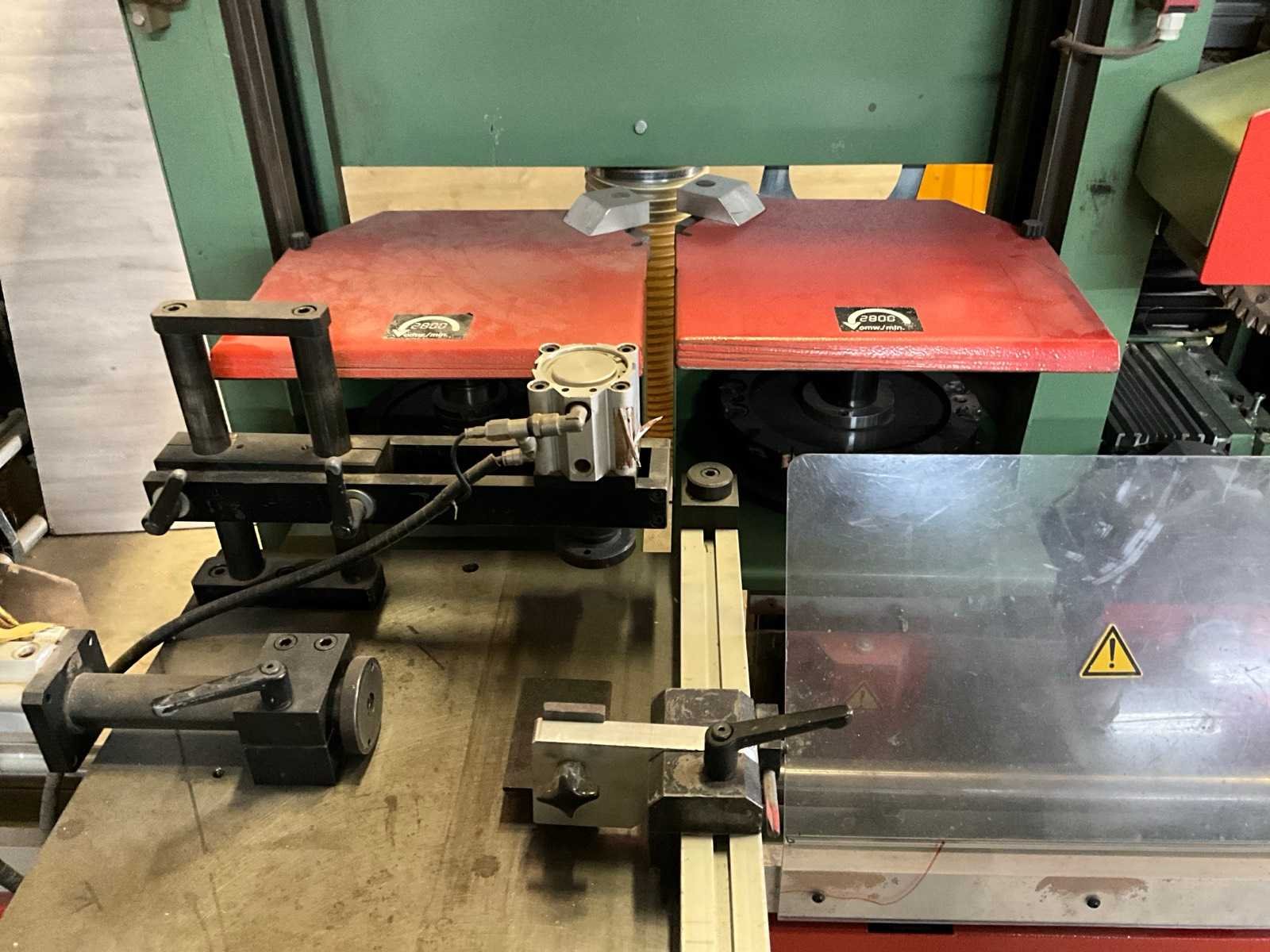 Voorzien van 2 pennenkoppen Ø 200 mm, as Ø 40 mm; 2 verticale frezen Ø 300 mm; 1 zaagblad Ø 460 mm, max zaaghoogte 160 mm; opspantafel 50x80 cm; zonder afzuiging Merk: Hubens Type: PB-205/R-AUT Bouwjaar: 2001 Serienummer: 0680092001 Aantal assen: 5 Aantal freesassen: 2 Freesas Ø: 40mm Aantal zaagassen: 1 Zaagblad Ø: 450mm Materiaalklemmen: true Aansluiting: 400V Afmeting l: 3200mm Afmeting b: 1500mm Afmeting h: 1650mm