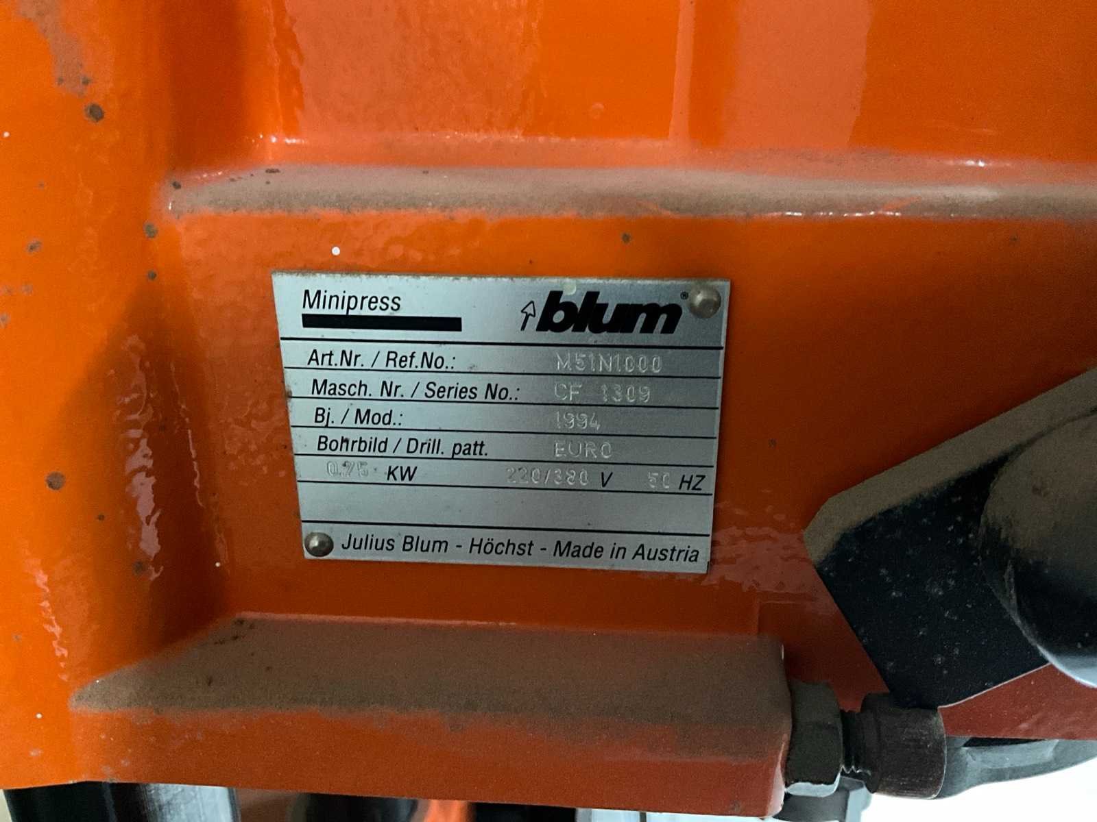Merk: Blum Type: MINIPRESS MSP Bouwjaar: 1994 Uitlading: 100mm Boordiepte: 120mm Aansluiting: 230V Afmeting l: 450mm Afmeting b: 600mm Afmeting h: 650mm