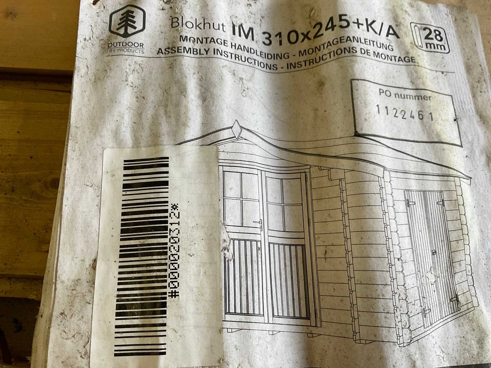 Verkleurt zie foto van handleiding voor het juiste model deze heeft een zij aanbouw met dubbeldeur. Model: Irvin Product type: Tuinhuis Gewicht: 1000kg Lengte: 310cm Breedte: 245cm Hoogte: 240cm Materiaal: VUREN 28MM