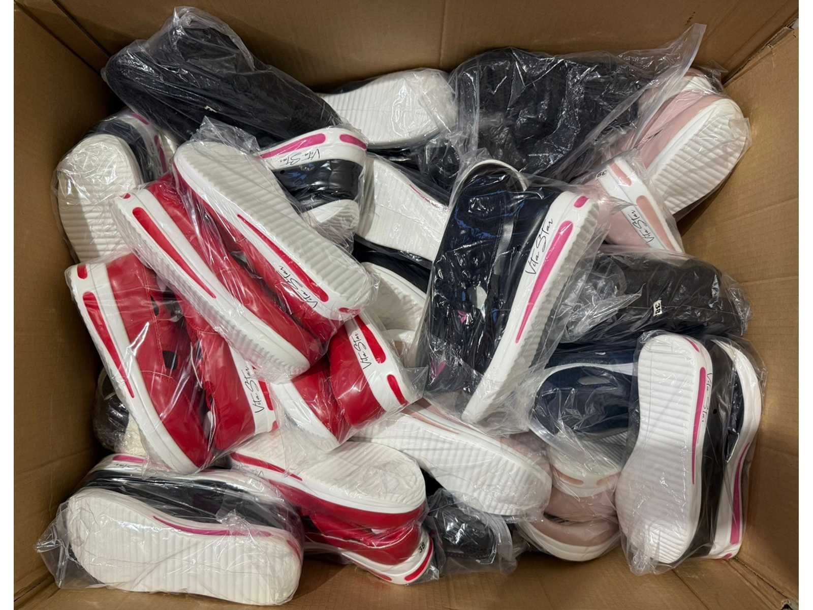 Dut betreft een partij nieuwe schoenen in diverse maten en soorten. Schoenen zijn nieuw. Bezorgtermijn 14 dagen