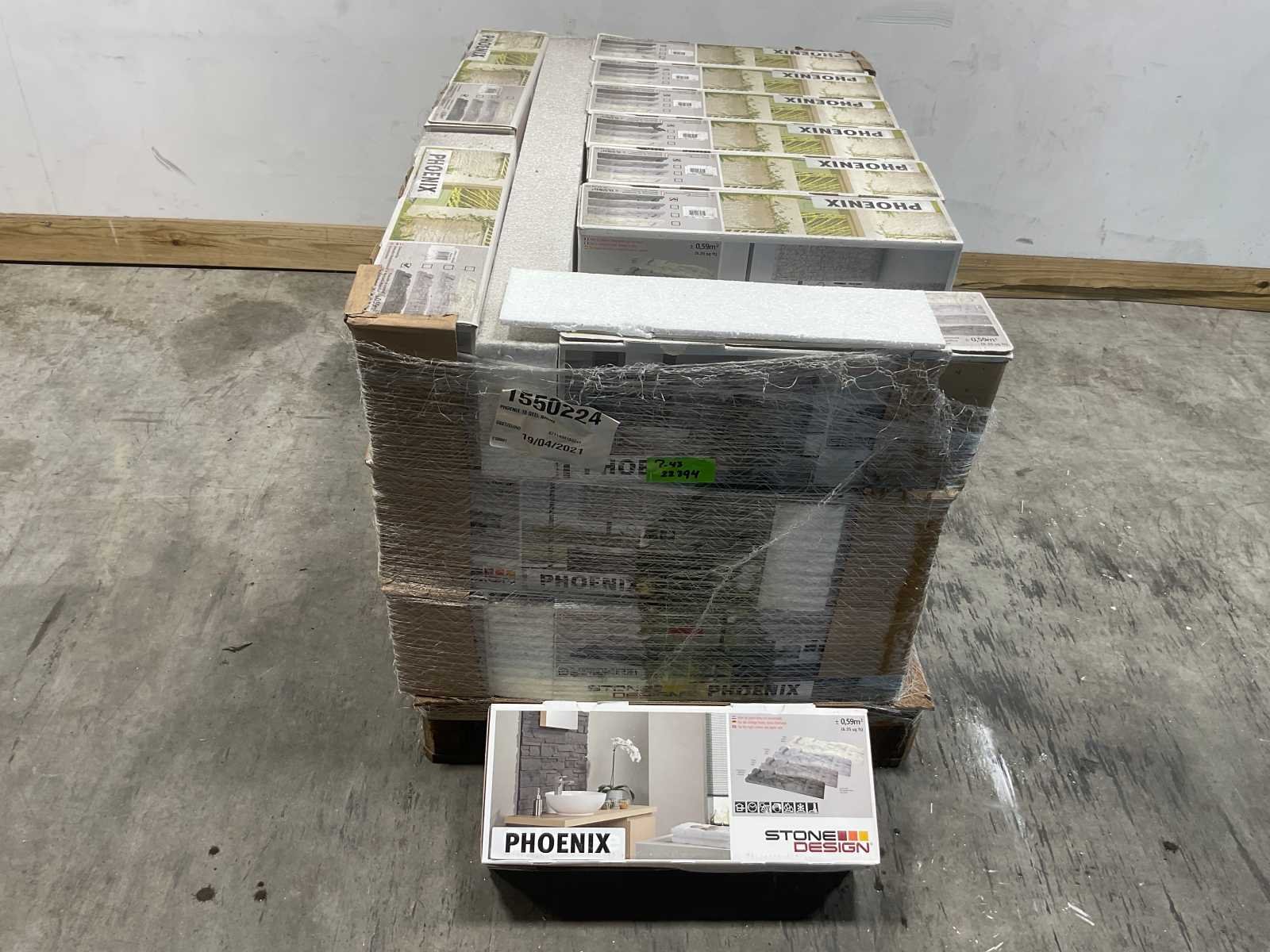 Pallet StoneDesign Phoenix No.10 steenstrip geel/brons van totaal 17,7m² (30 dozen à 0,59m²). Merk: Stone Design Kleur: geel brons Lengte: 42,7cm Breedte: 28cm Dikte: 3mm Materiaal: beton Type: Phoenix No.10 Model: steenstrip Aantal m² per verpakking: 0,59m² Aantal pakken: 30 Totaal oppervlakte: 17,7m²