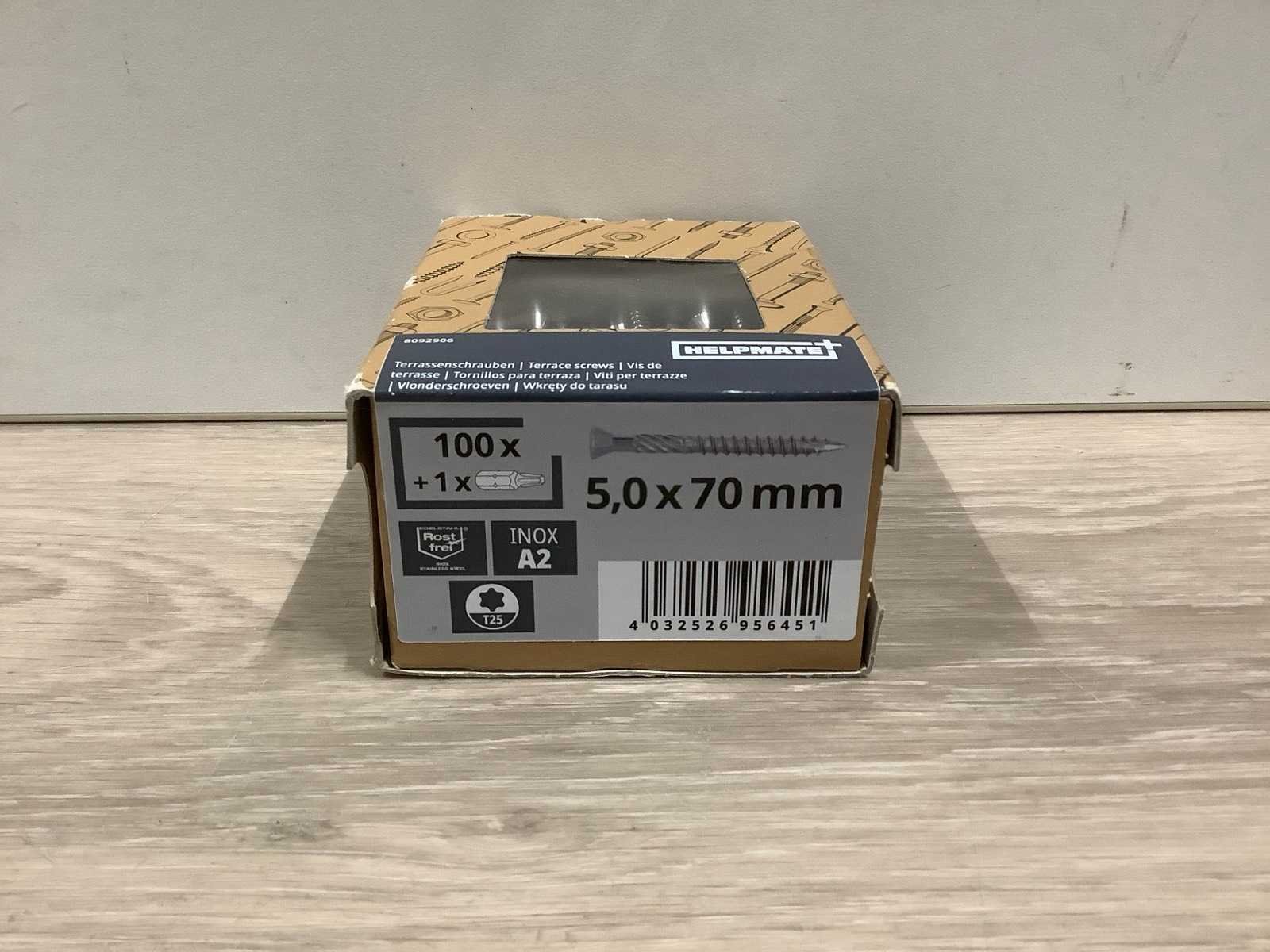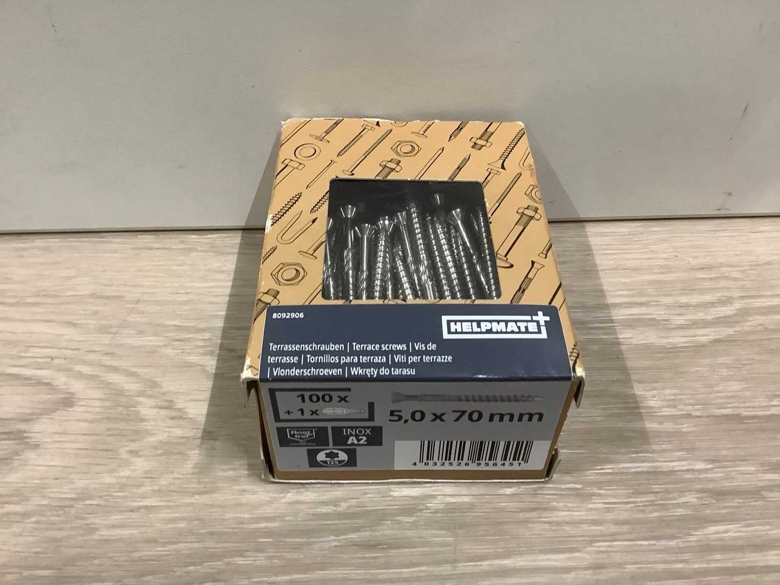 Let op: Dit betreft een nieuw artikel in verpakking. Merk: Helpmate Type: Terrasschroeven 5,0x70mm Lengte: 7cm Breedte: 0.5cm