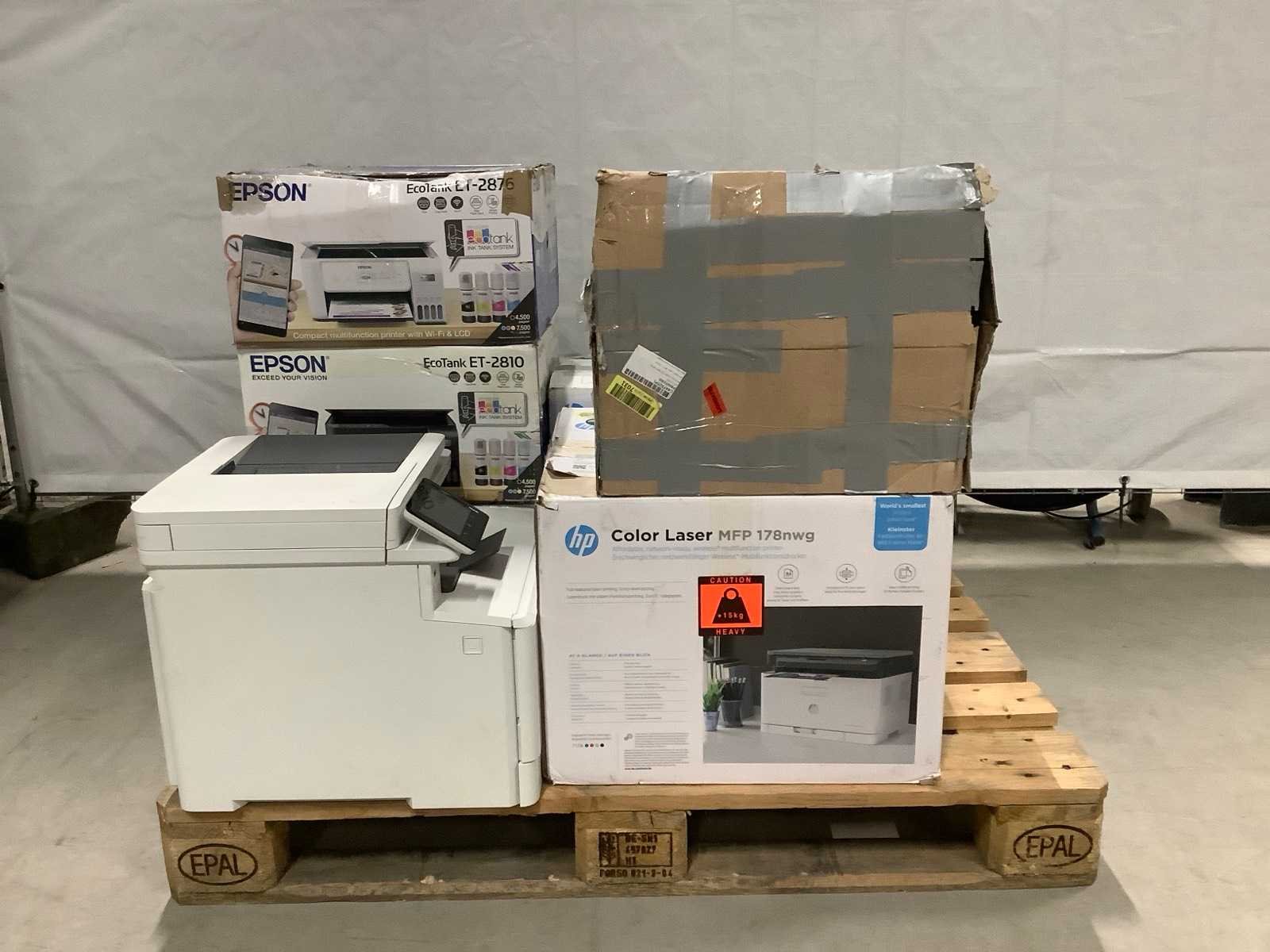 Dit betreft een partij retourgoederen van een grote online retailer. De goederen bestaan uit diverse printers. Ongecontroleerd: werking onbekend (mix van werkend, incompleet, beschadigd, te gebruiken voor onderdelen). Kom op de kijkdag om te om zo een goed beeld te krijgen van de reden van retour. Merk: Pallet