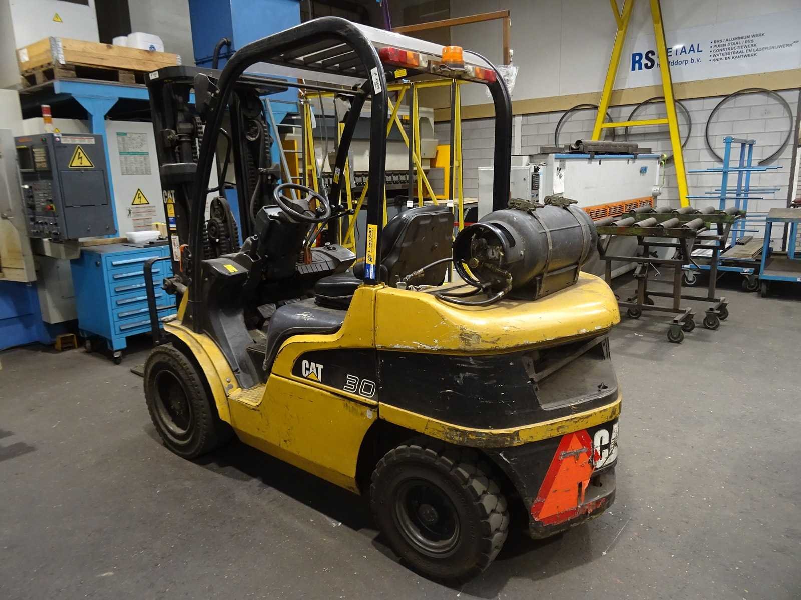 Heftruck nog in gebruik, urenstand kan oplopen. LET OP: ophalen einde ophaaldag Merk: Caterpillar Type: GP30N Bouwjaar: 2005 Serienummer: ET-13FL-00235 Afgelezen urenstand: 11652 Free-lift: true Side-shift: true Triple mast: true Eigen gewicht: 4500kg Hefvermogen: 3000kg Lepellengte: 1150mm Max. hefhoogte: 4700mm Vol rubber banden: true Minimale doorrijhoogte: 2160mm Totale afmeting L: 3900mm Totale afmeting Breedte: 1300mm Totale afmeting Hoogte: 2160mm LPG: true